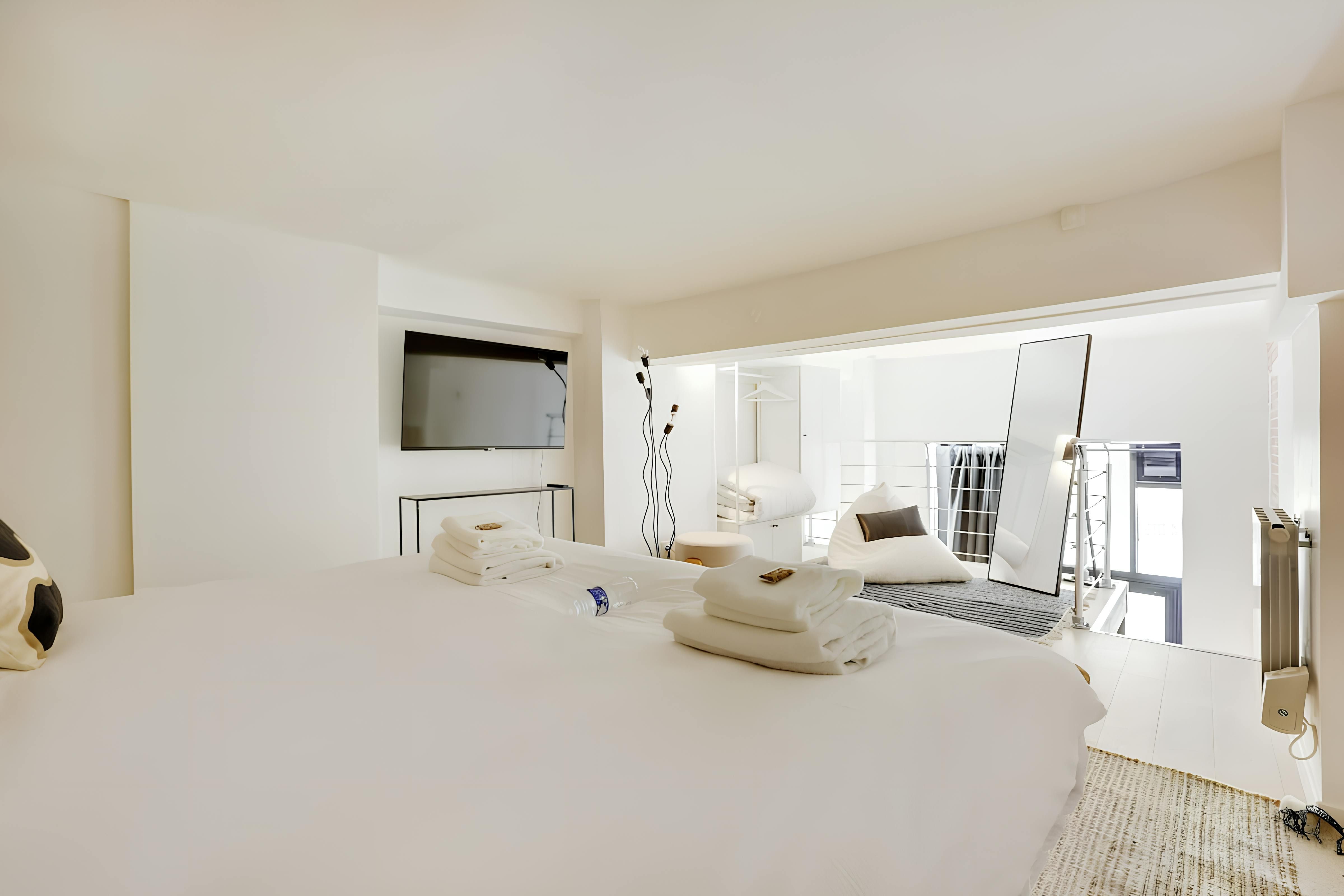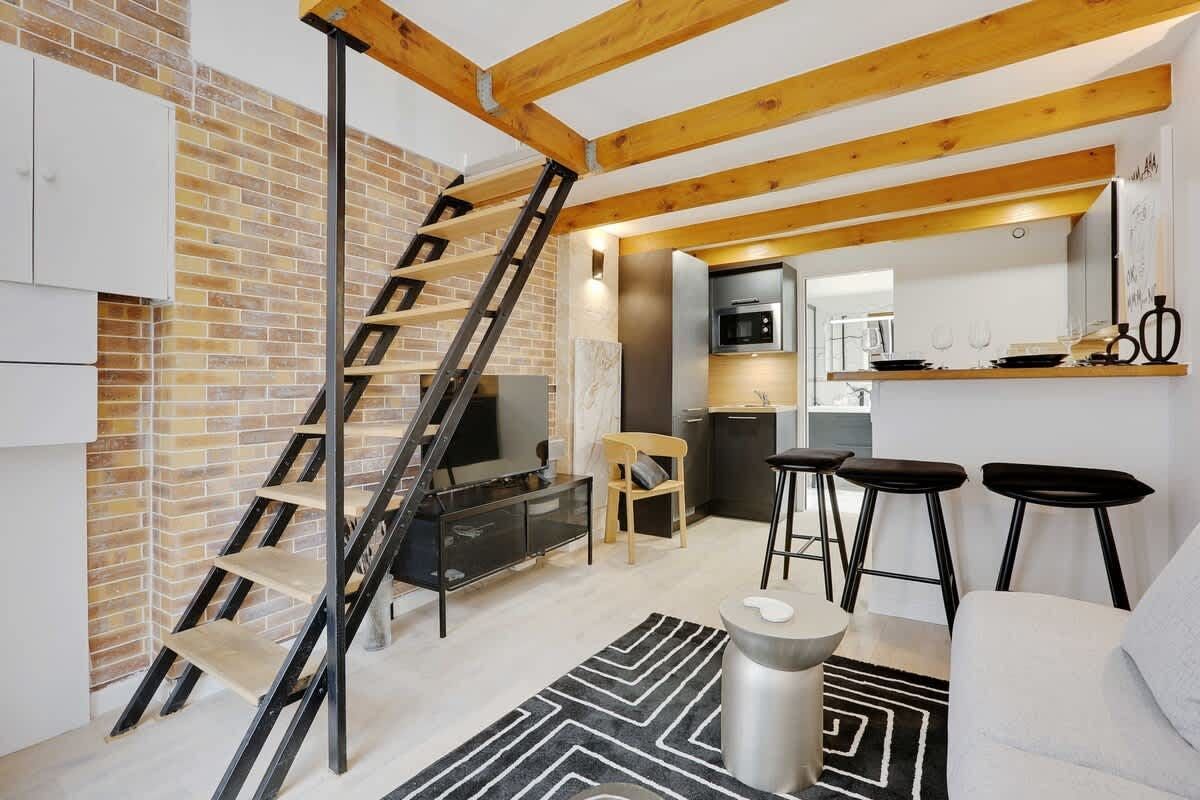Just ten minutes from Gare du Nord, this apartment makes the perfect base for a Parisian city break. Inside, the space is elegant and contemporary, with a bedroom on the mezzanine level and a handy sofa bed for extra guests. The kitchen is on the smaller side and doesn’t have a hob or oven, but with a location this central, you might find yourself dining out more than in. Stroll to the boutiques and galleries of Le Marais in twenty minutes, or hop on a train to Versailles for a quick day trip.