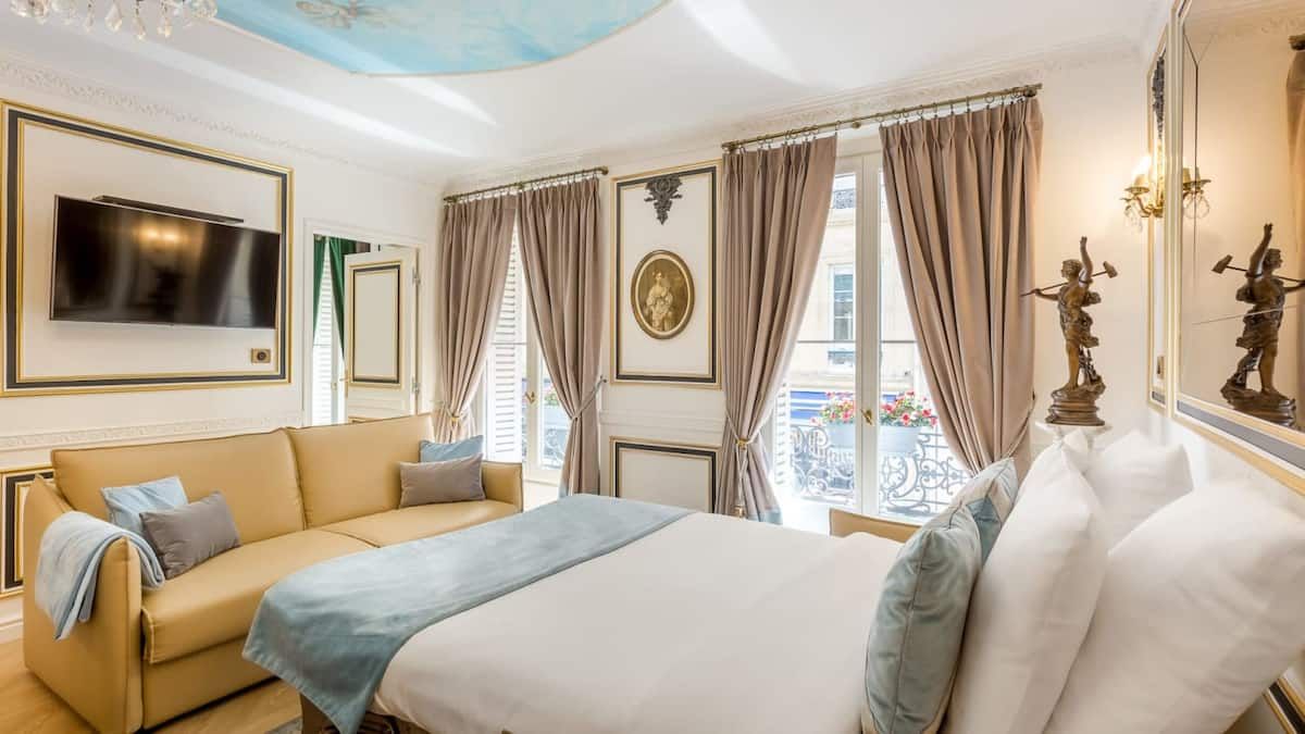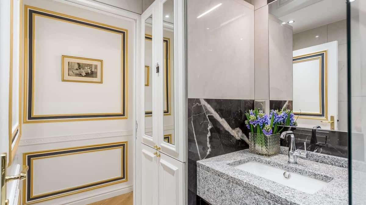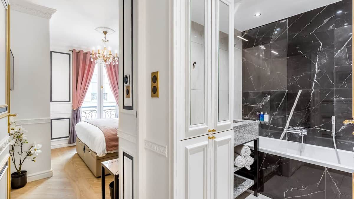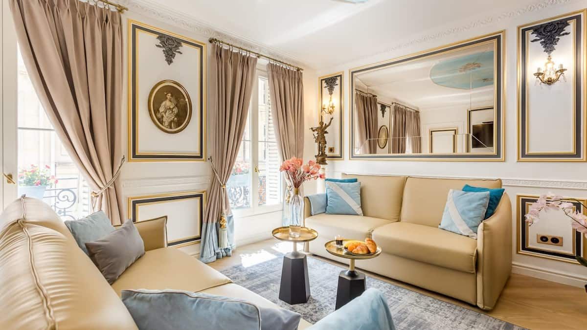 Positioned just 50 metres away from the Champs Élysées, one of the world's most iconic shopping streets, expect a luxurious experience from start to finish while staying in this neck of the woods. Built in 1784, under the reign of King Louis XVI, the apartment was fully renovated by a famous Parisian architect in keeping with contemporary living. High-end furniture and sumptuous finishings adorn every room with endless class and elegance. Magnificent marble finishings adorn the kitchen and bathrooms and will make you keen to refurbish your own home in this way after a stay here. Meanwhile, soft throws, cushions and curtain bring a homely aesthetic to an otherwise rather regal residence. When you can convince yourself to leave this palace of splendour, stroll just three minutes and you'll find a wealth of shops to explore. Head fifteen minutes down the Champs Élysées to soak up some of the best views in Paris from the top of the Arc de Triomphe. And if fine dining is your thing – who doesn't love quality food? Then look no further, as some of the city's most exclusive bars and restaurants reside in this district.