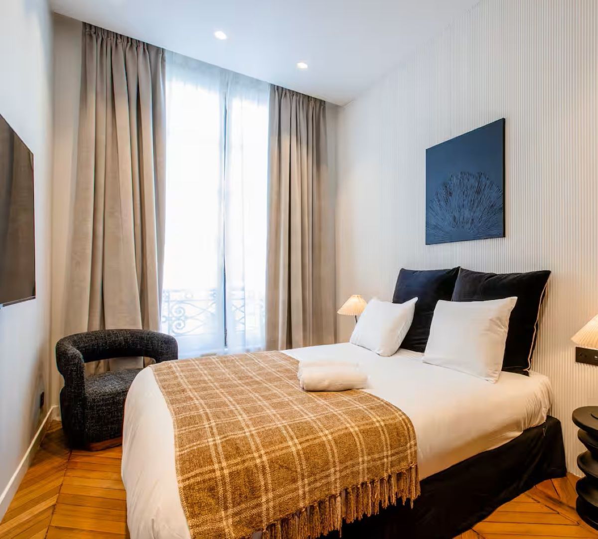 Just a short stroll from the Champs-Élysées, this home’s location is fantastic. Other attractions within walking distance include the Grand Palais and the Place de la Concorde. This stunning apartment is perfect for families or friends. Take in the views over this typically Parisian street from the small balcony or relax in the elegant living space. The living room also sleeps two guests on a comfy sofa bed at full occupancy. Or you can request two extra single beds, so the accommodation is really flexible here. And if you want to keep up your fitness regime while away, there’s a communal gym. If you’re looking for a memorable stay in the City of Light, we'd recommend considering this luxury apartment.
