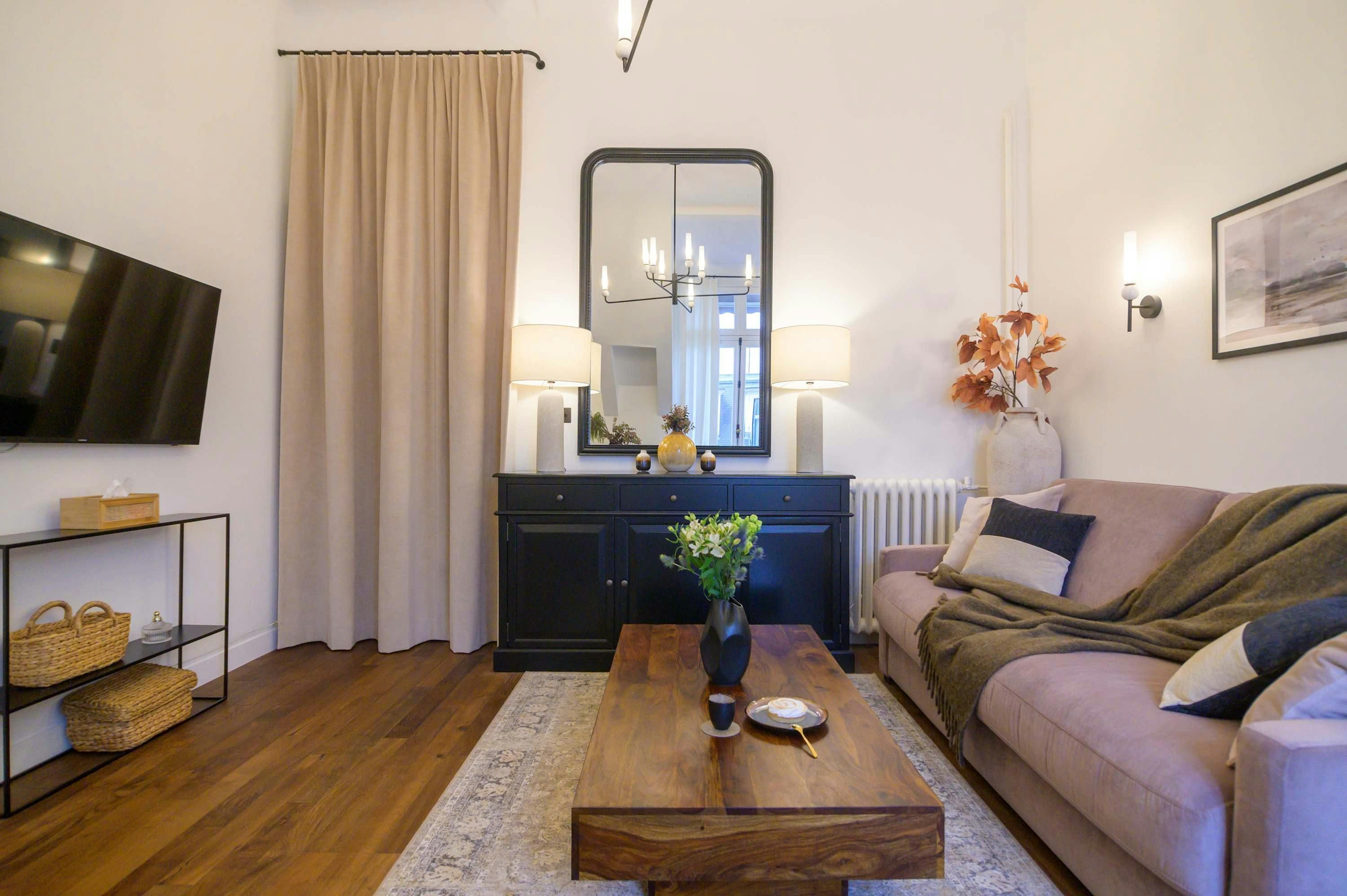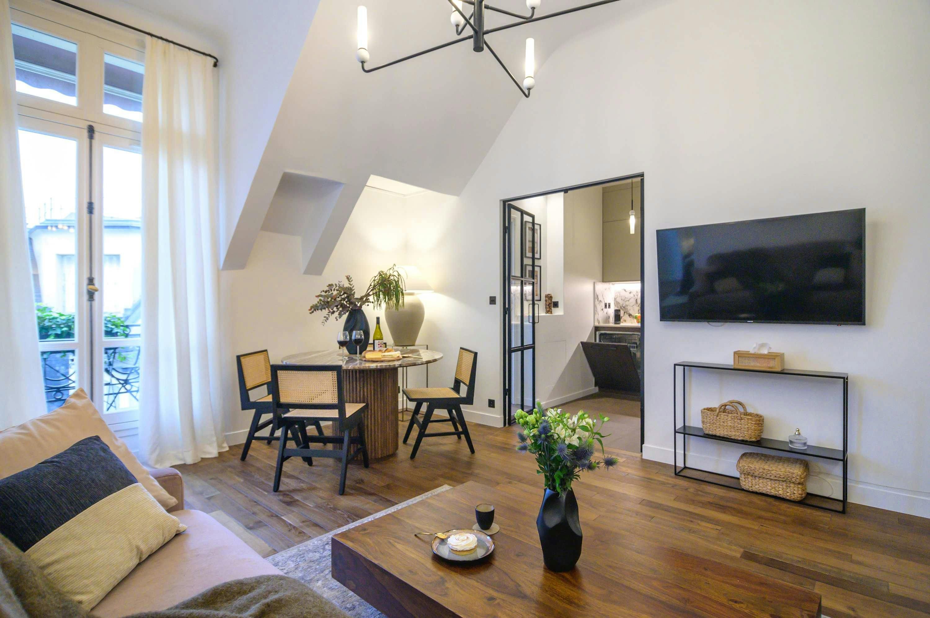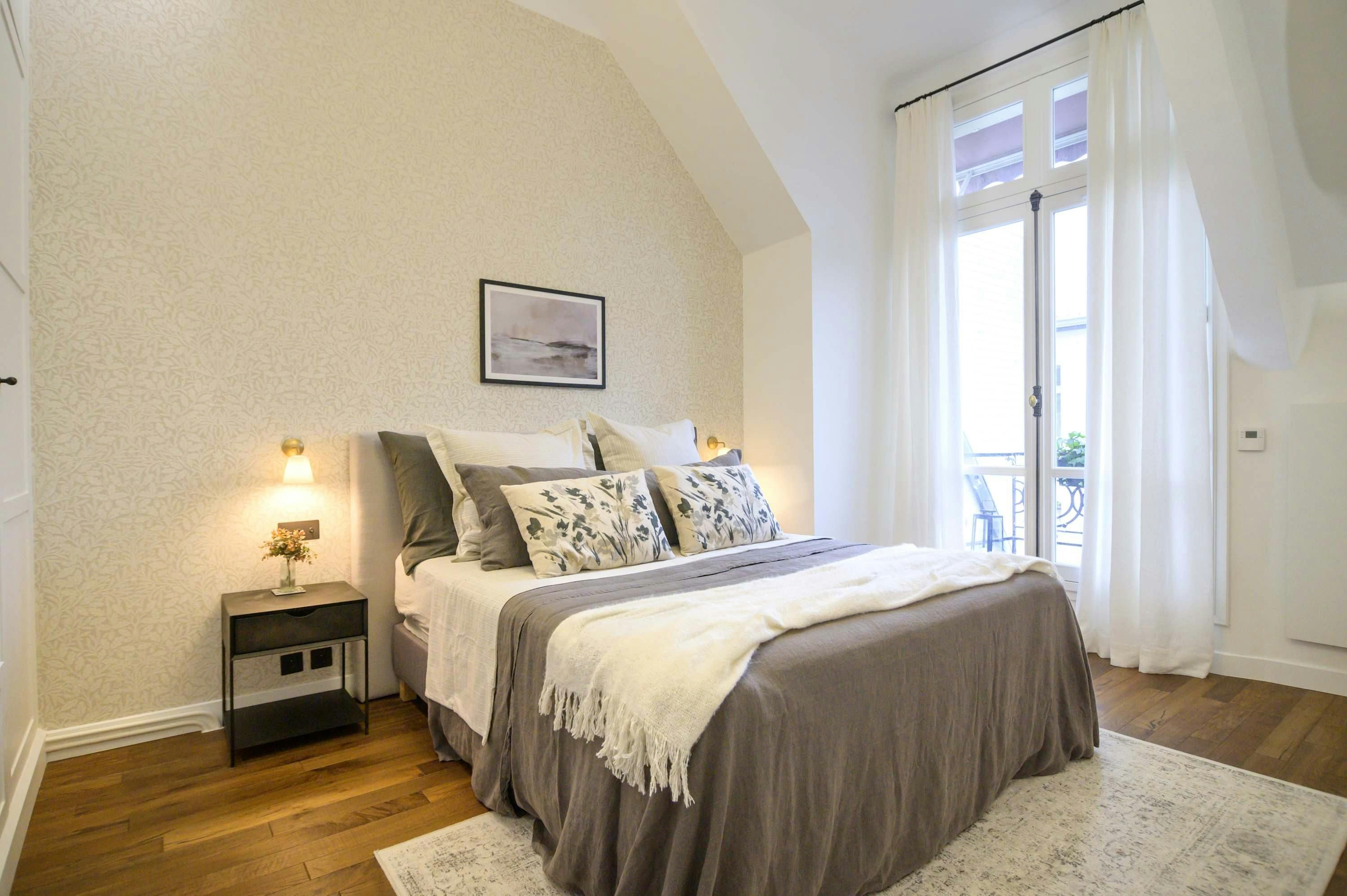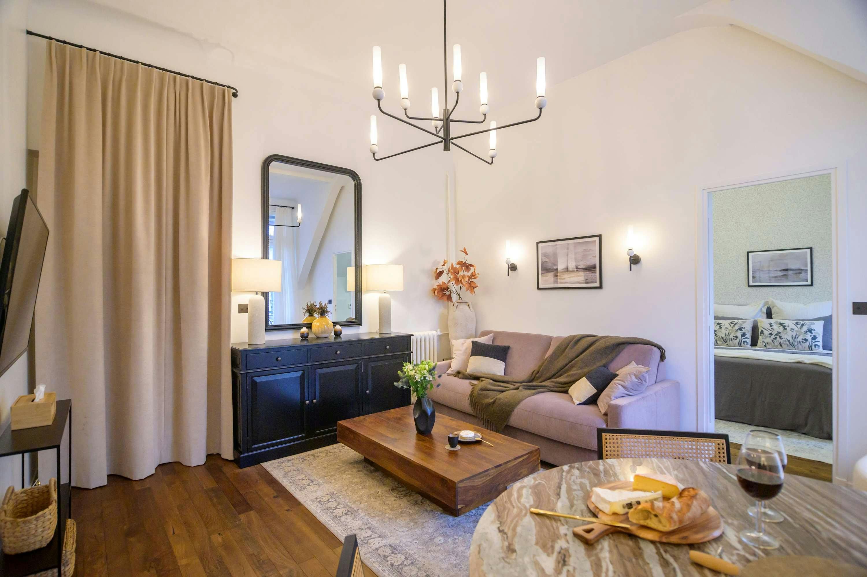 Situated on Paris’s famous avenue, the Champs-Elysées, this apartment has an exclusive address for sure. You’ll be just steps away from an array of luxury boutiques shops and fine restaurants, as well as a short stroll from the iconic Arc de Triomphe. After a busy day in the City of Light, there’s a balcony at this home to relax on. The living room sleeps guests three and four on a sofa bed and the separate kitchen has everything you need for cooking some Parisian cuisine. Another feature we like is there’s a telephone here with free long-distance calls to over seventy countries, so you can catch up with family and friends easily.