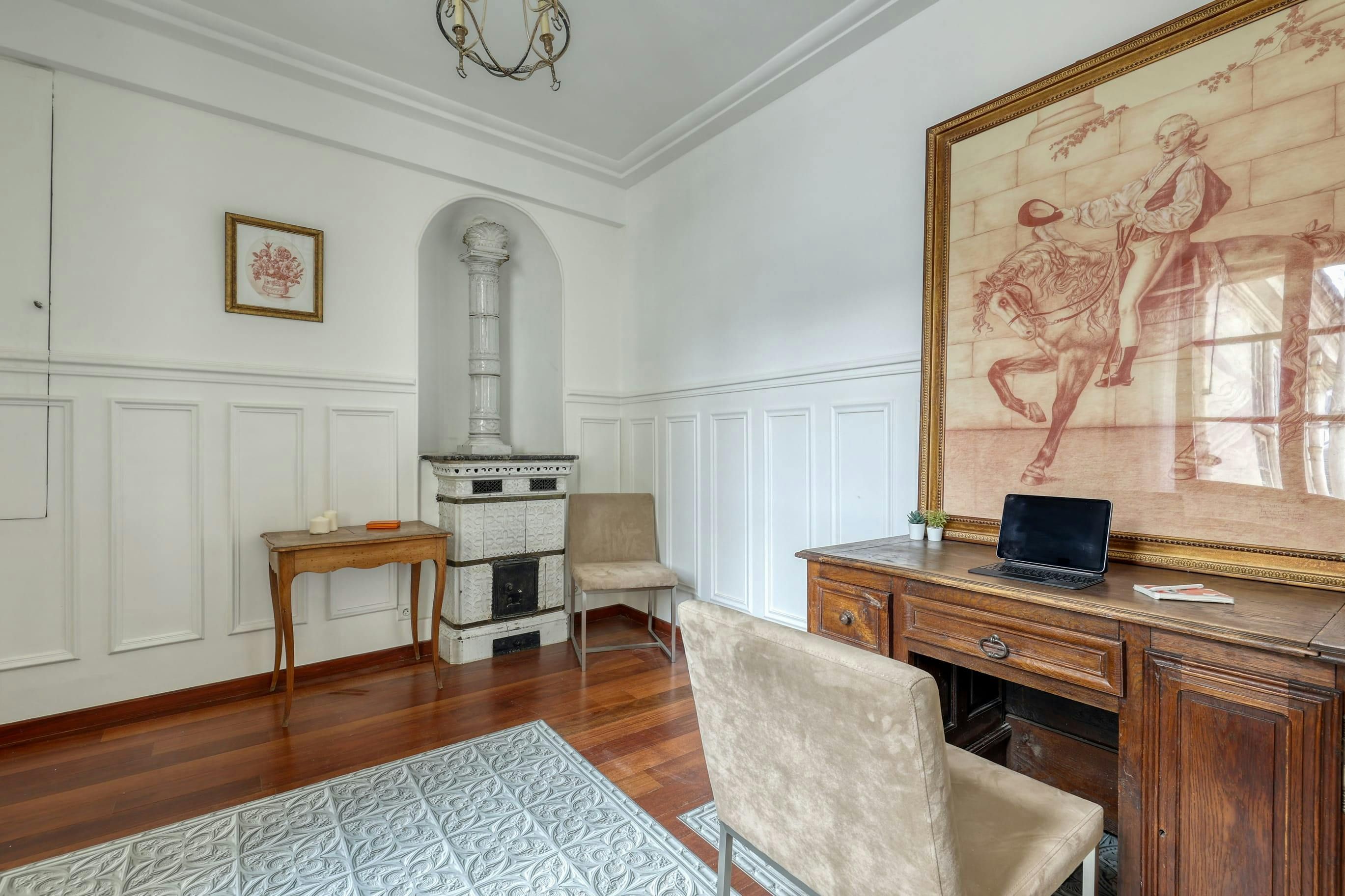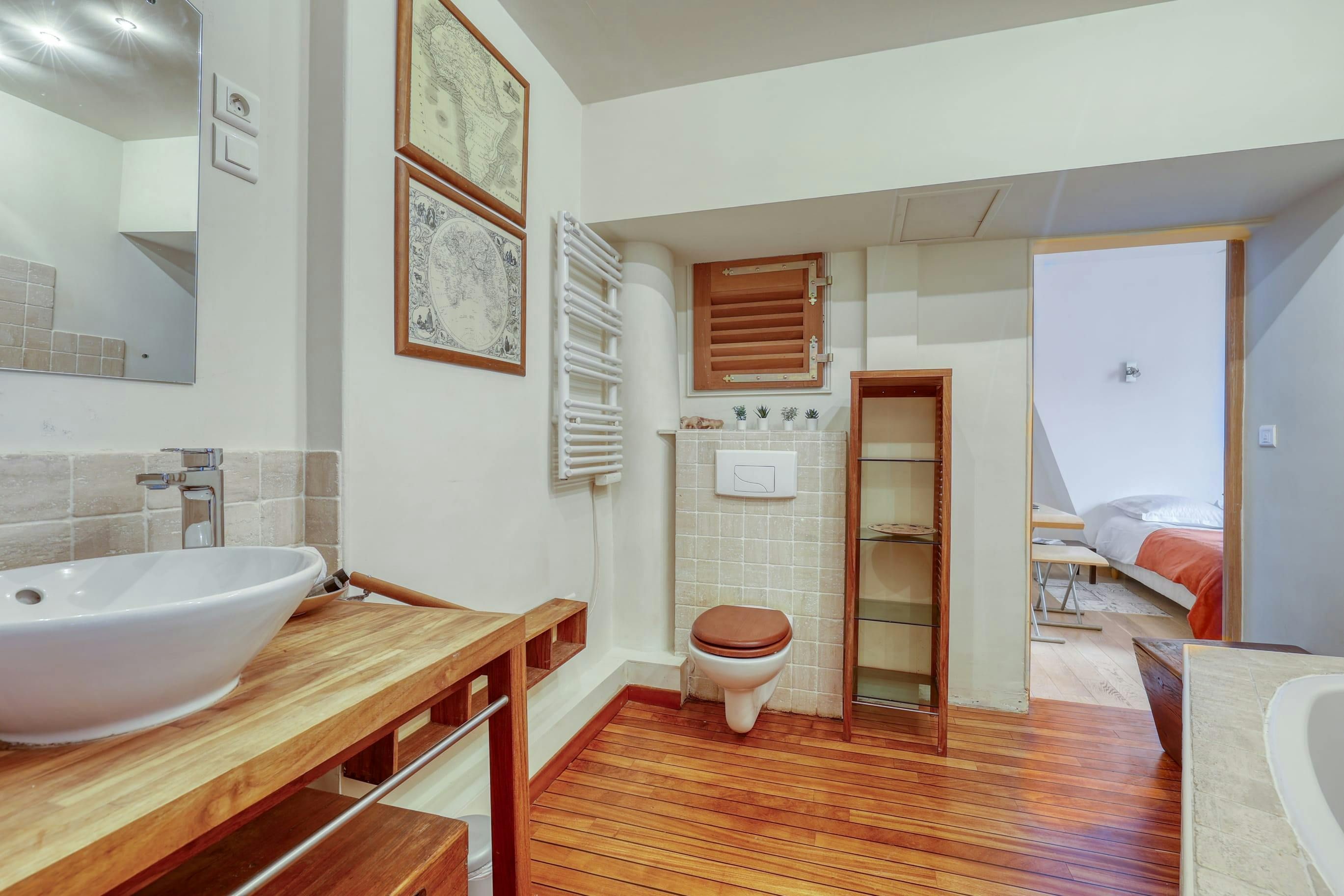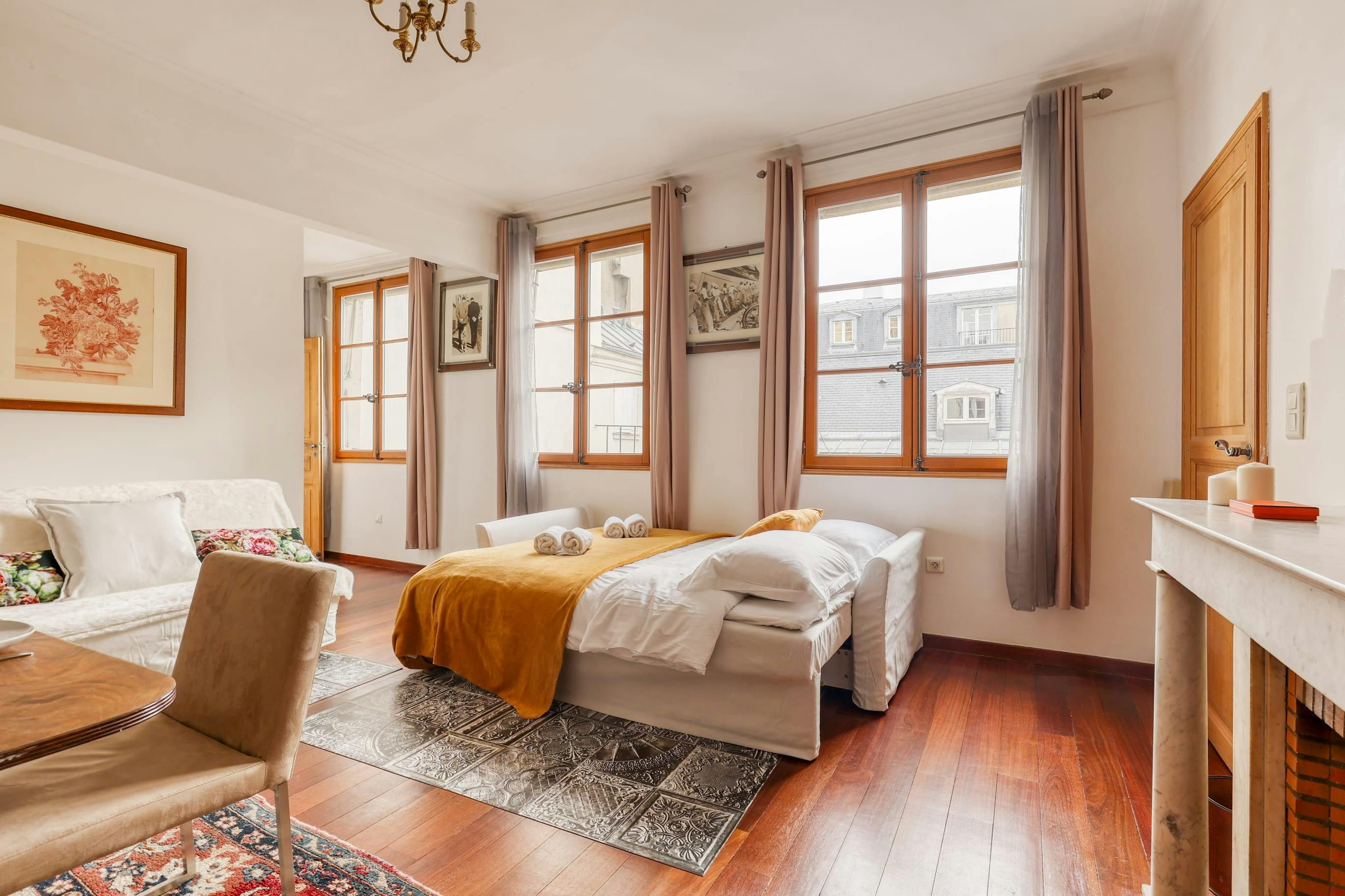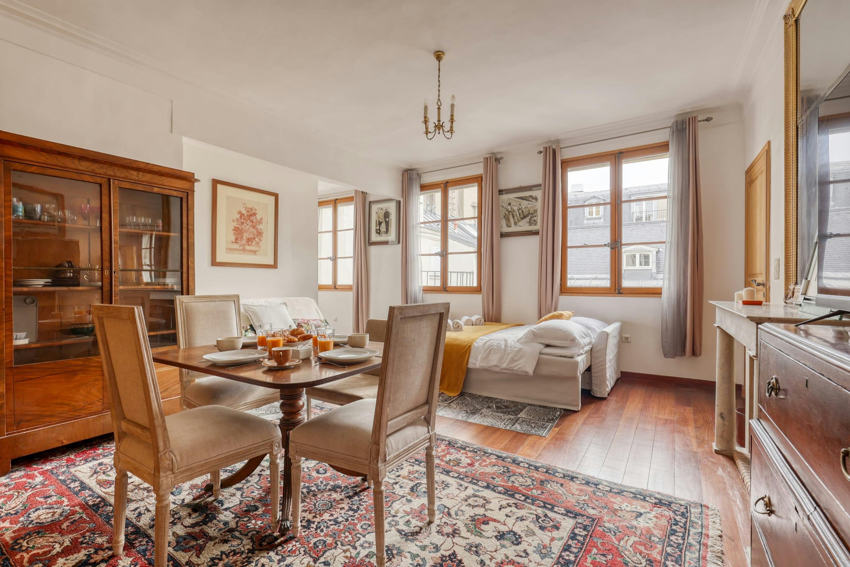 With Boulevard Saint-Germain on your doorstep, this home is an ideal base for a stay in Paris. Nestled in a character building, you’ll need to climb the stairs to the third floor to reach this home, but step inside and you’ll find a comfortable space for four people. Two guests will be sleeping on the sofa bed here, but it doesn’t have too much of an impact on the living area. And while keen cooks will notice that there’s no oven in this home, with eateries aplenty in the area, dining out is an easy option.