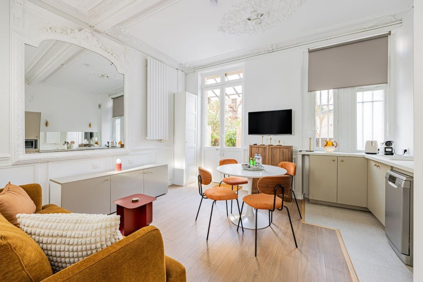Set in the 5th arrondissement, this ground-floor apartment puts you in one of Paris’s most historic and lively neighbourhoods. You’ll be within easy walking distance of the Jardin des Plantes for sunny strolls, and the Panthéon for a Paris history lesson. Plus, with cafes, bars, and restaurants aplenty there are so many options when it comes to refuelling. The apartment itself is simple and comfortable, with a living room that doubles as a sleeping space thanks to the sofa bed. When it’s in use, things might feel a little snug, but you can always descent to the basement, where you can relax or play a game of foosball.