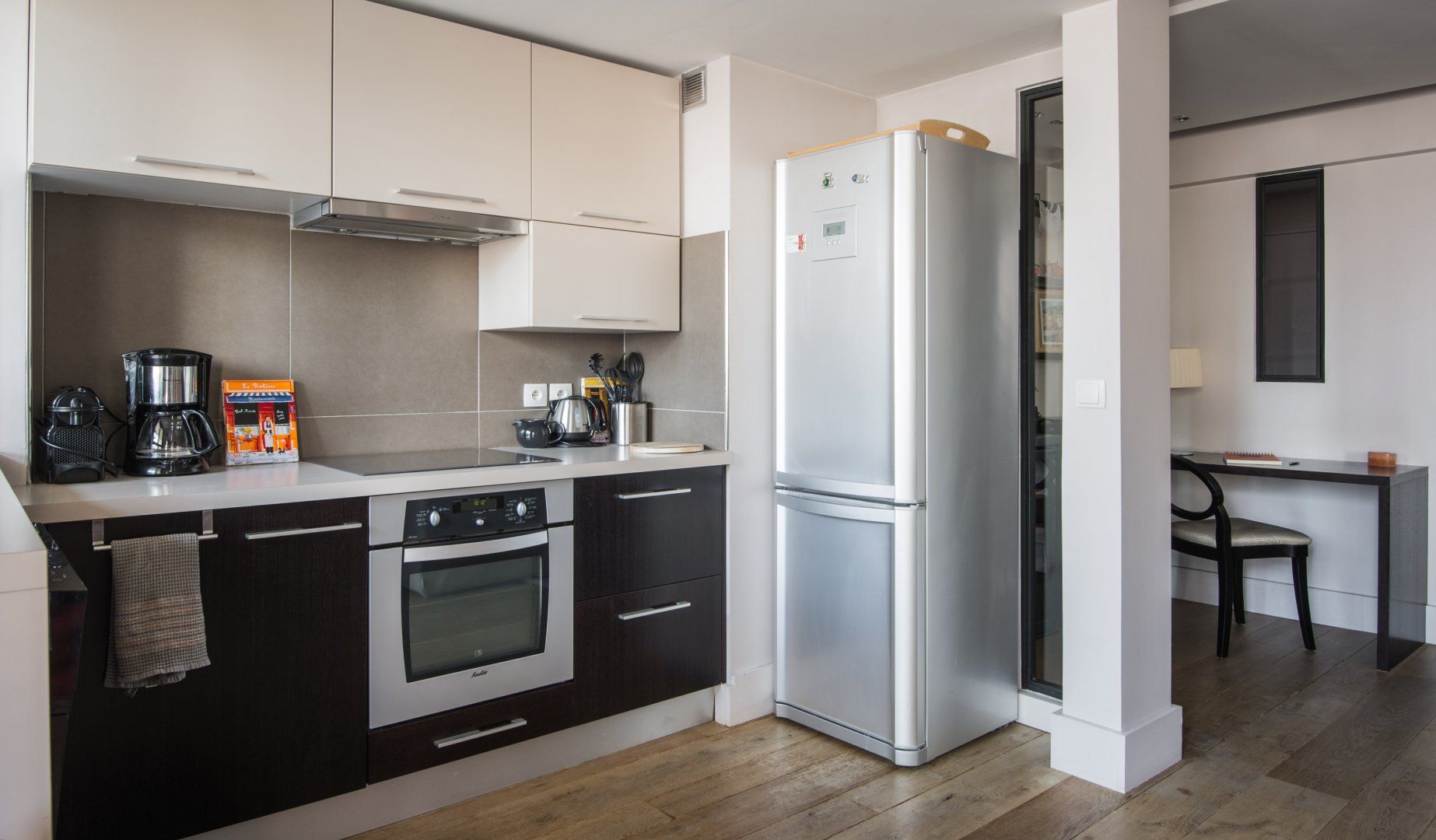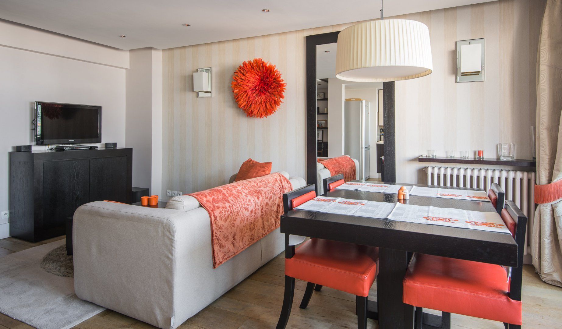If a view of the Eiffel Tower is top of your Parisian wishlist, then this modern home in the Grenelle neighbourhood has you covered. Pour your morning coffee and step out onto the balcony for fabulous views across the rooftops – this is a very special spot indeed. Inside, you'll find sleek decor with orange accents and an open-plan layout, ideal for socialising with your loved ones. If you need to work remotely, the slick office area is great for catching up on emails. Although not in the most central of locations, this riverside neighbourhood has a welcoming, residential feel to it. There are plenty of shops where you can pick up provisions – the boulangerie opposite is especially convenient for buying baguettes for breakfast. A fifteen-minute wander will bring you to the Eiffel Tower and, for travels further afield, you can hop on the metro at the Charles Michels station, just one minute away.