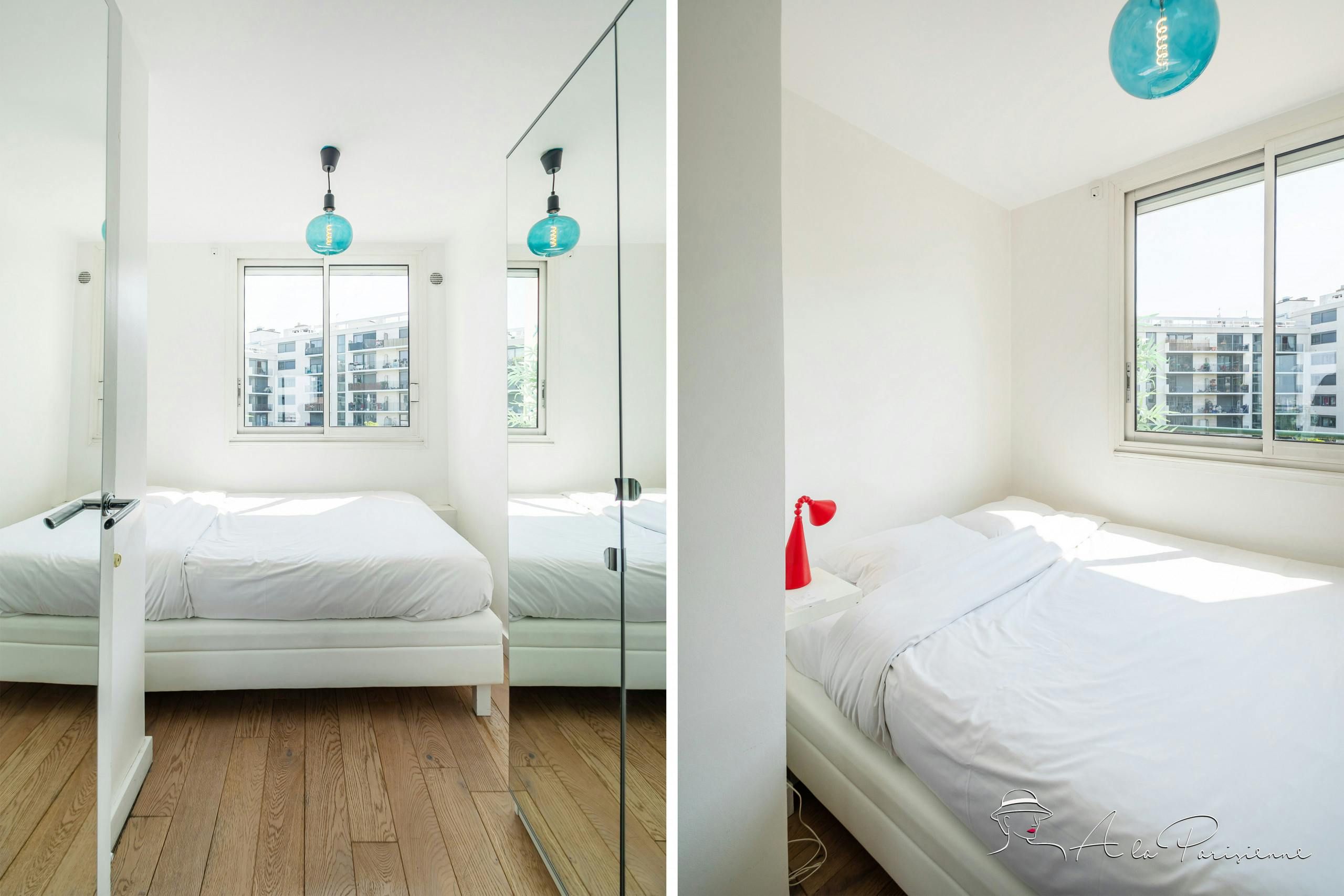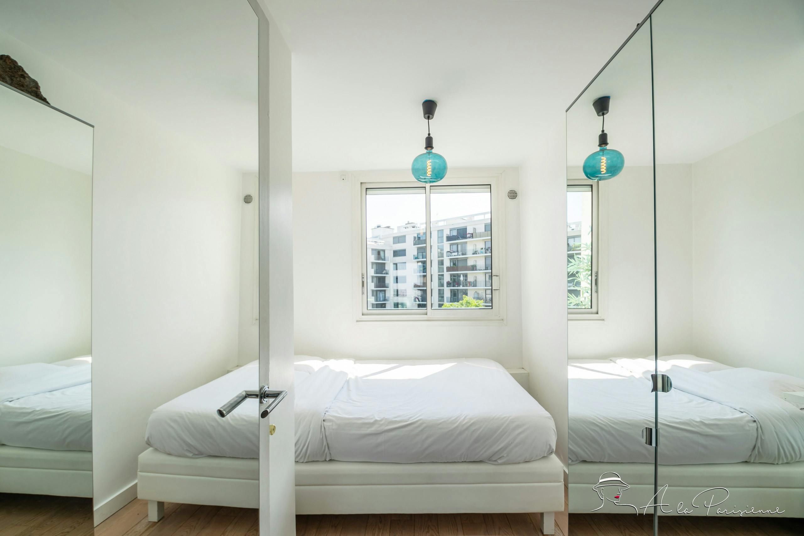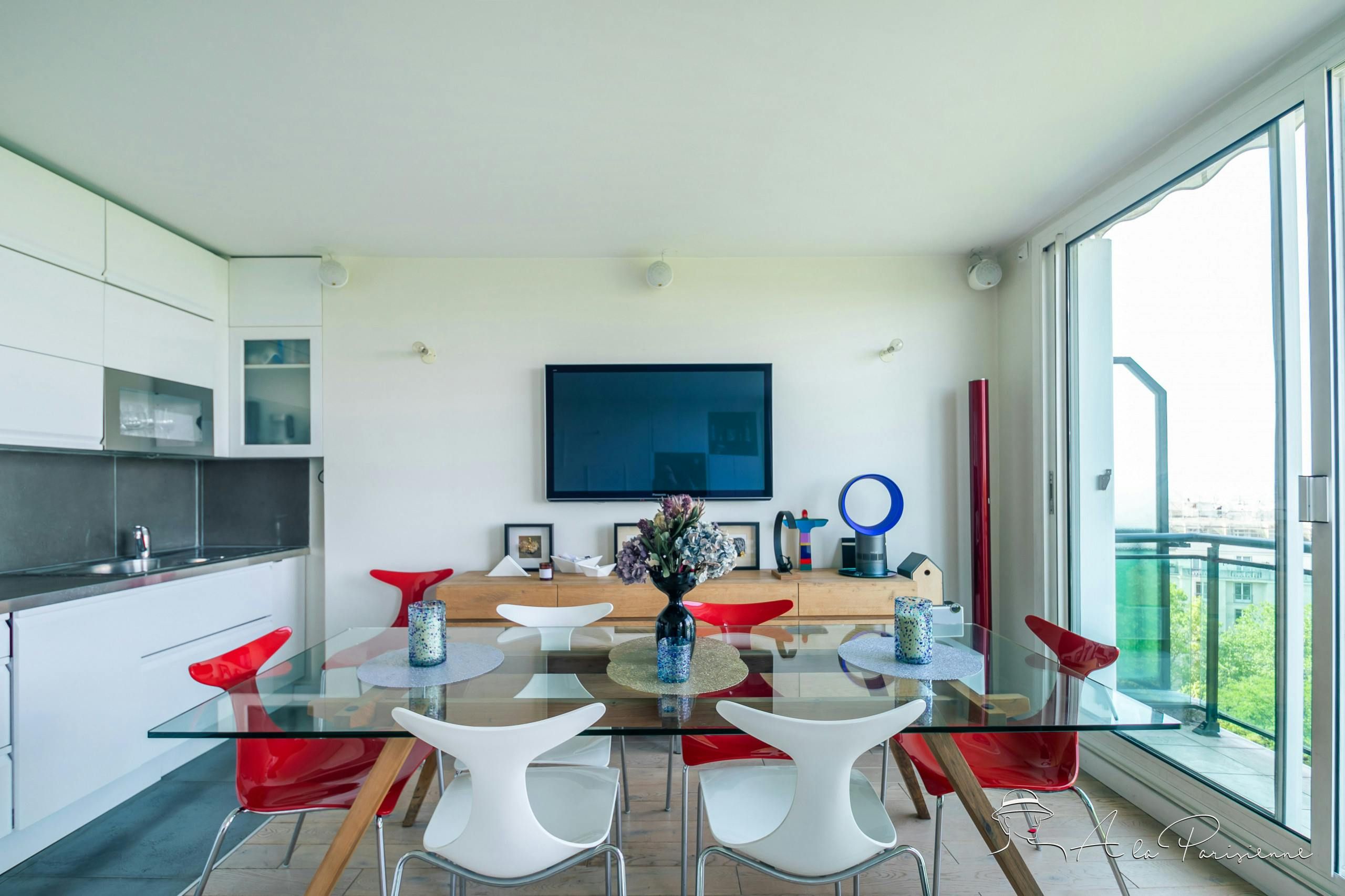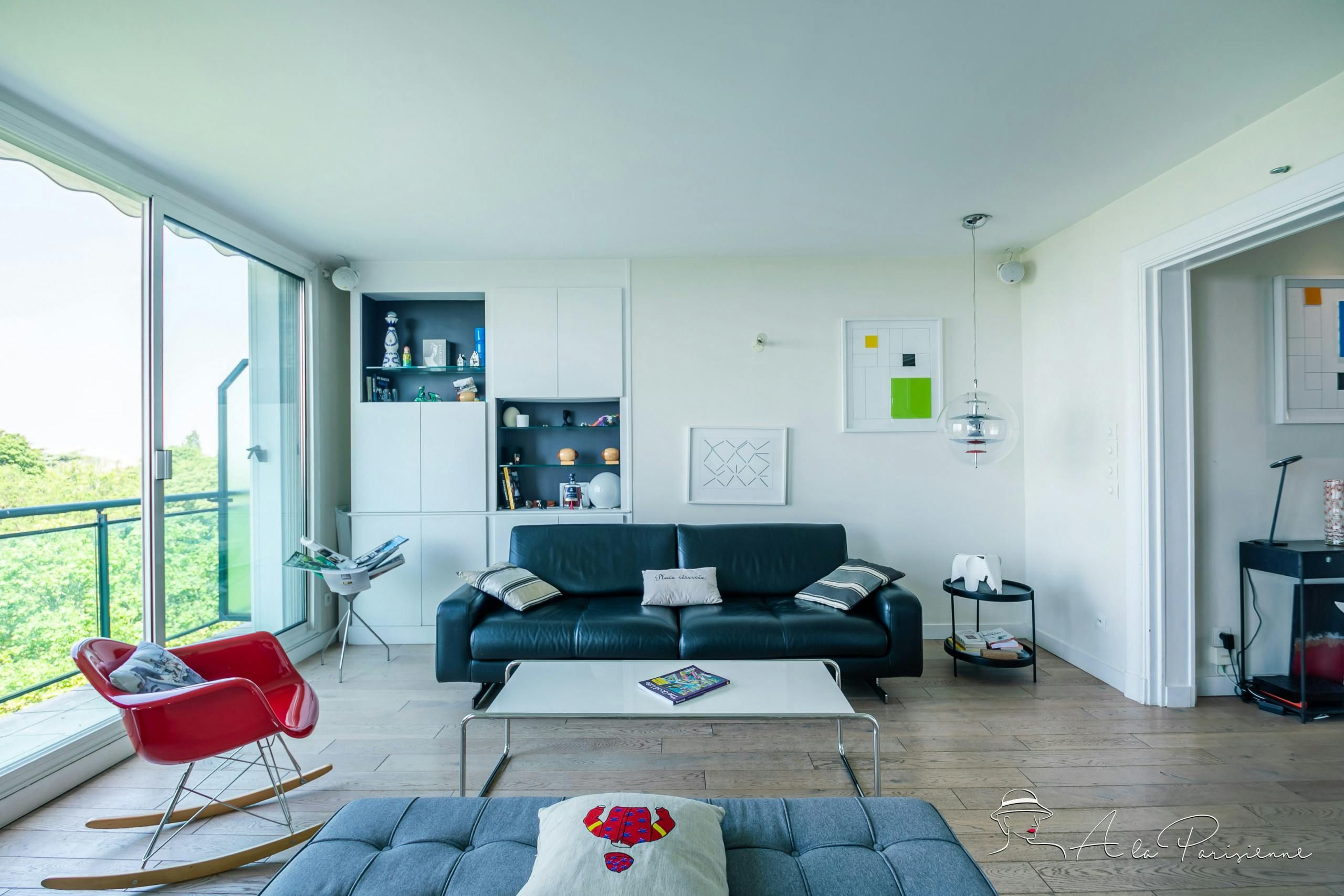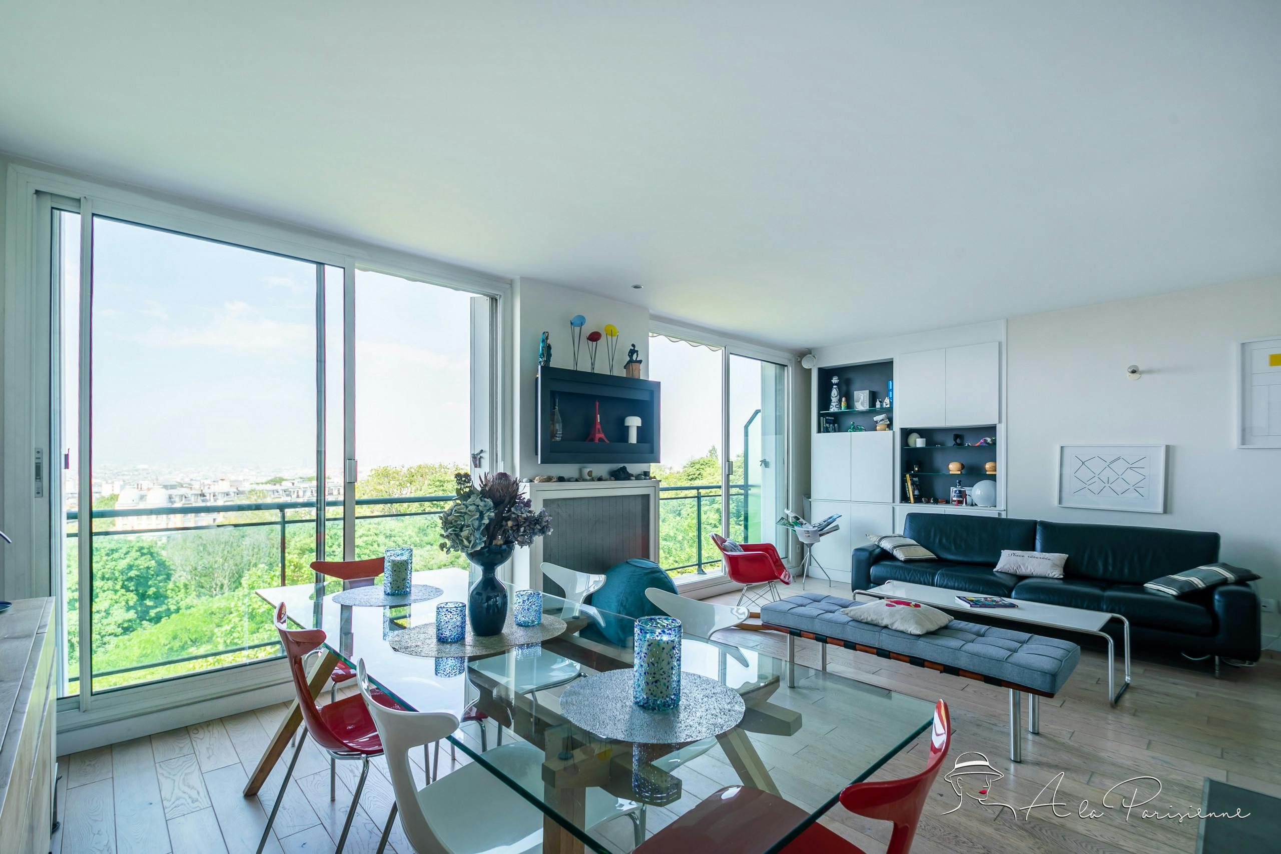 This bright and welcoming apartment can be found opposite Buttes Chaumont Park, offering wonderful views of the vast green space. Best of all, the views from the apartment stretch all the way across Paris – you can even see the Eiffel Tower. There’s a balcony at the front of the home as well as a terrace, but the views can be admired from the open-plan living and dining space too, thanks to the huge windows. There are plenty of bakeries, bars, shops and restaurants nearby, and you can easily explore the rest of Paris using the metro – Buttes Chaumont station is just a few metres away.