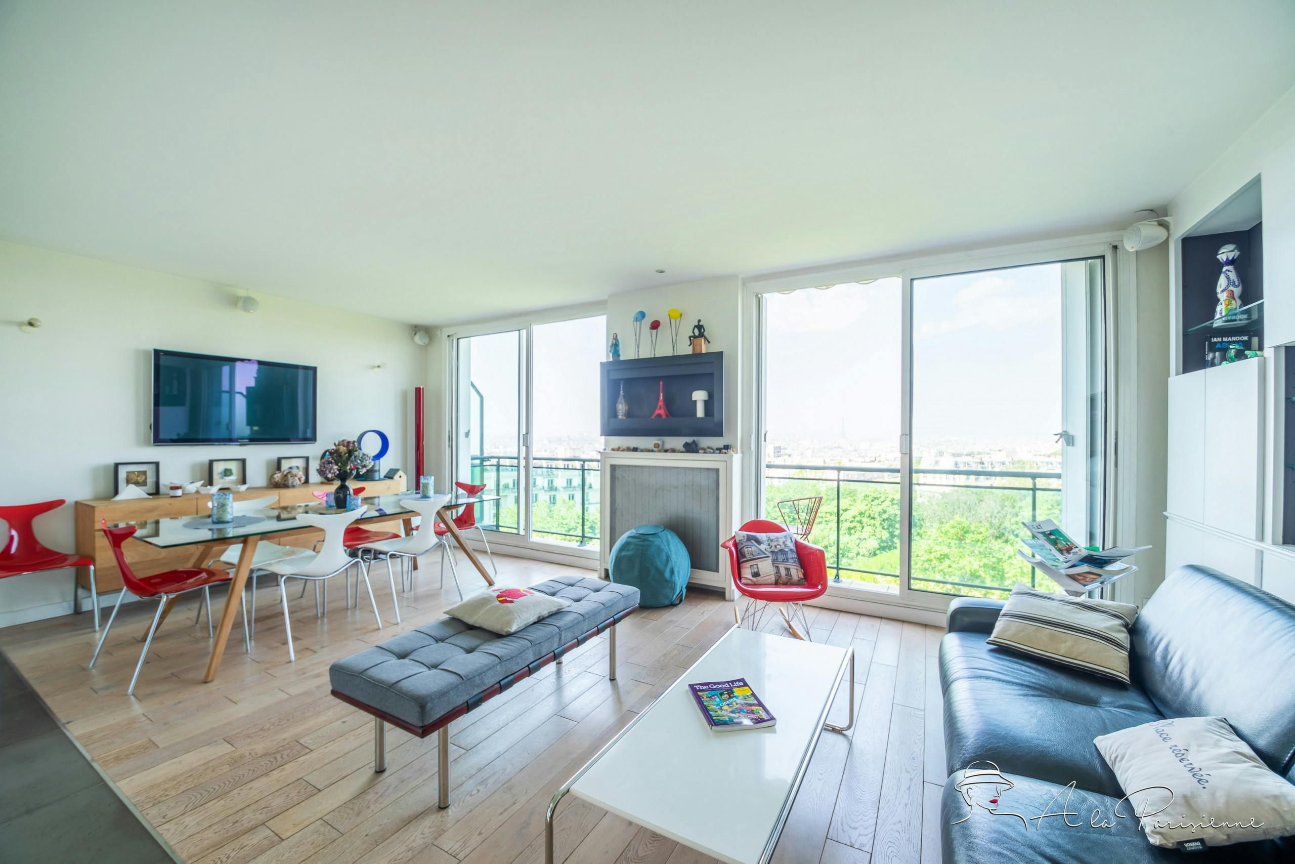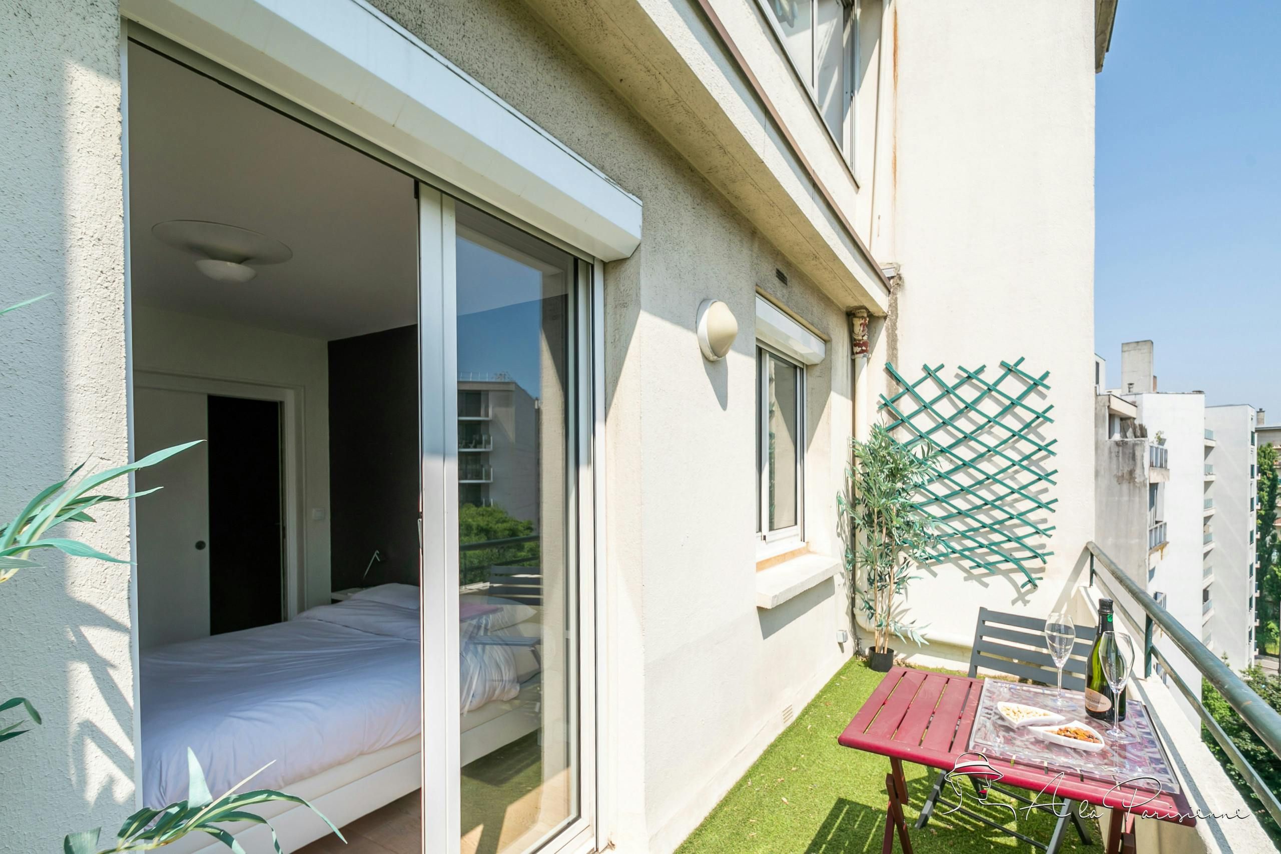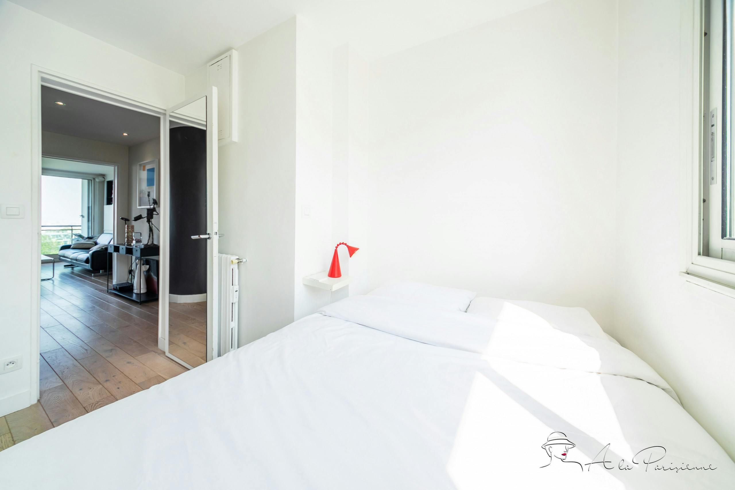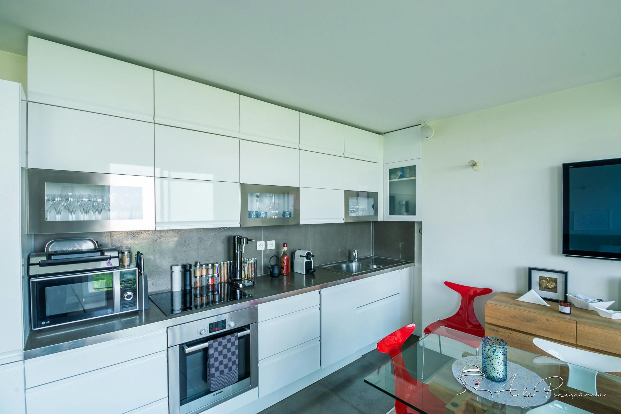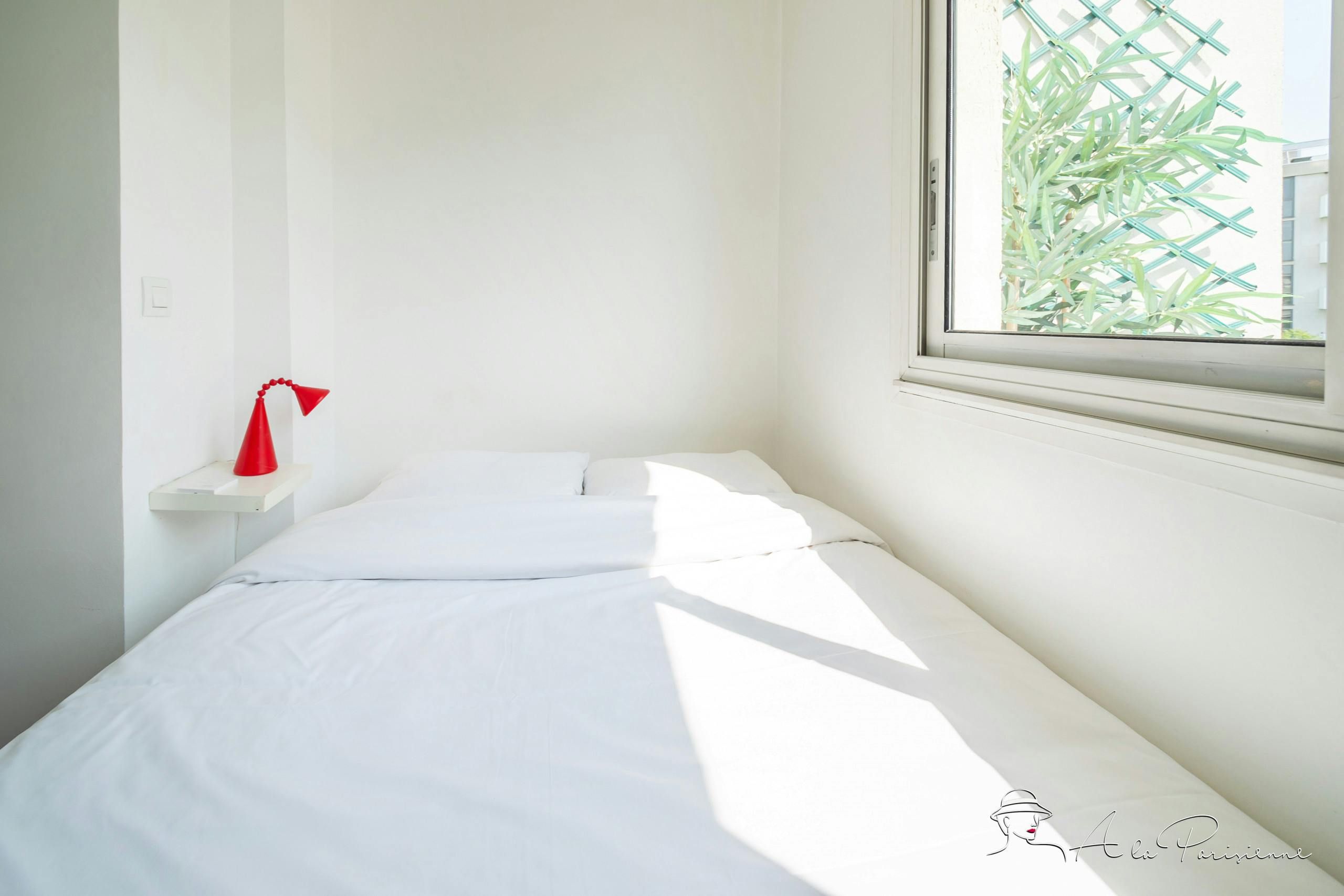 This bright and welcoming apartment can be found opposite Buttes Chaumont Park, offering wonderful views of the vast green space. Best of all, the views from the apartment stretch all the way across Paris – you can even see the Eiffel Tower. There’s a balcony at the front of the home as well as a terrace, but the views can be admired from the open-plan living and dining space too, thanks to the huge windows. There are plenty of bakeries, bars, shops and restaurants nearby, and you can easily explore the rest of Paris using the metro – Buttes Chaumont station is just a few metres away.