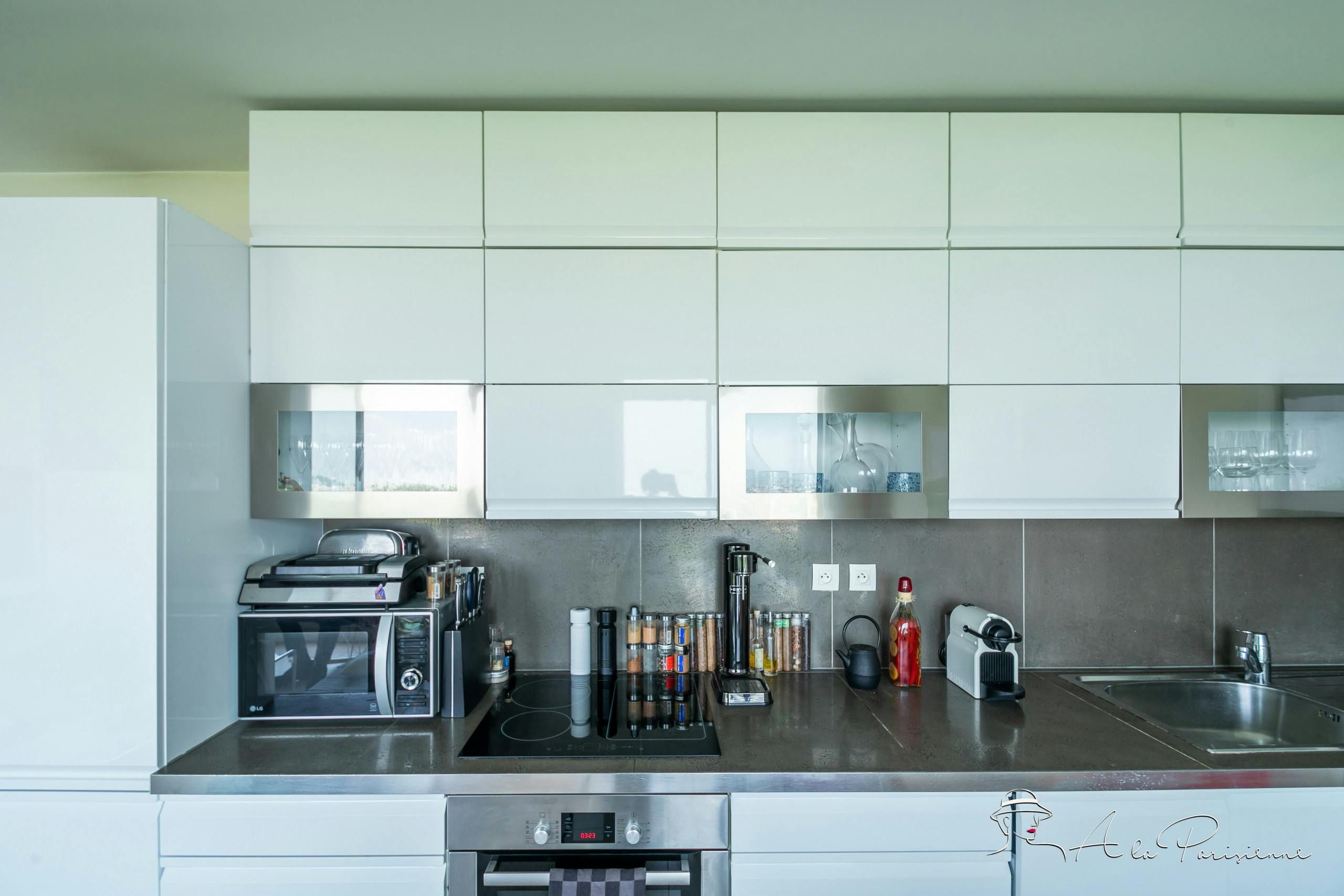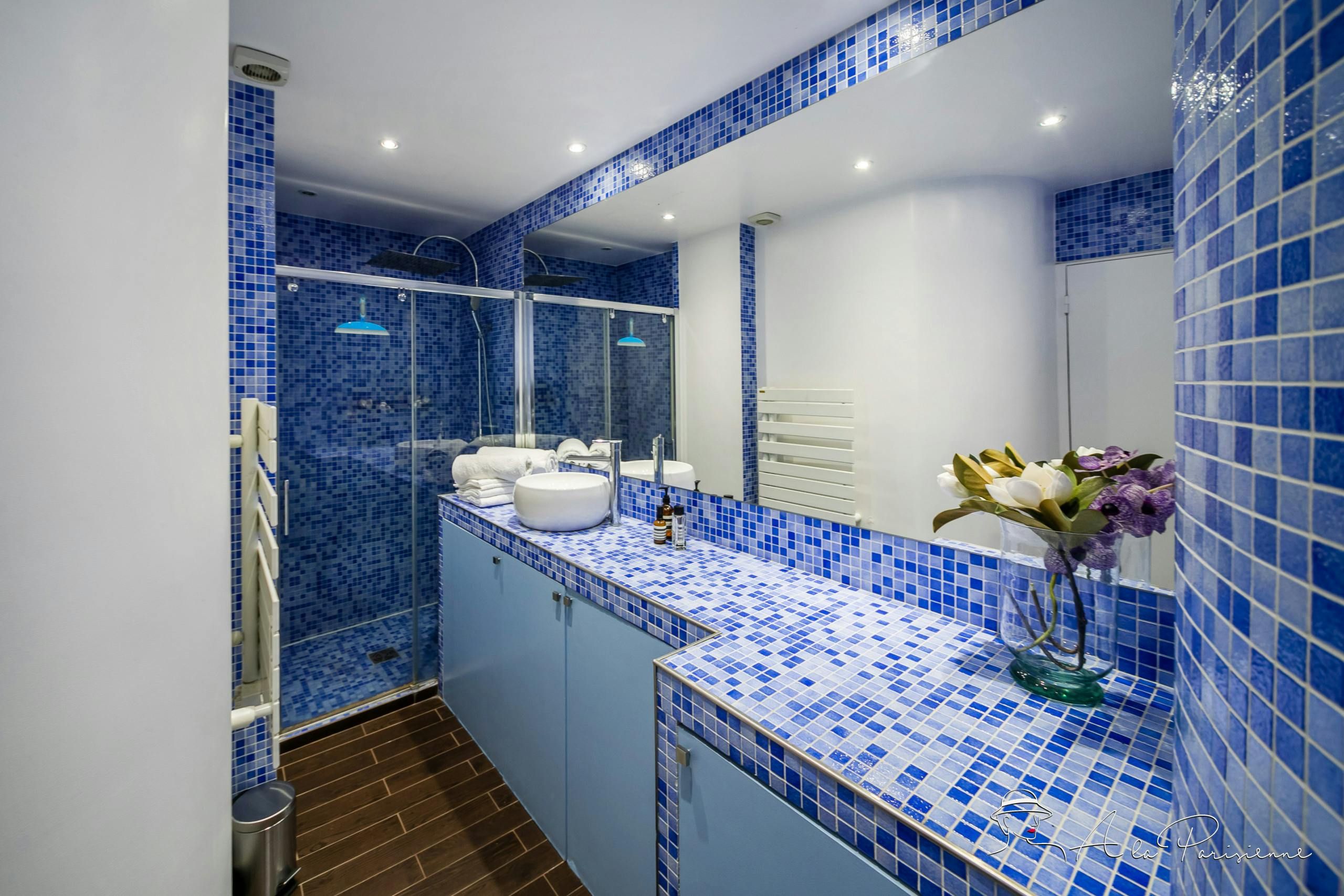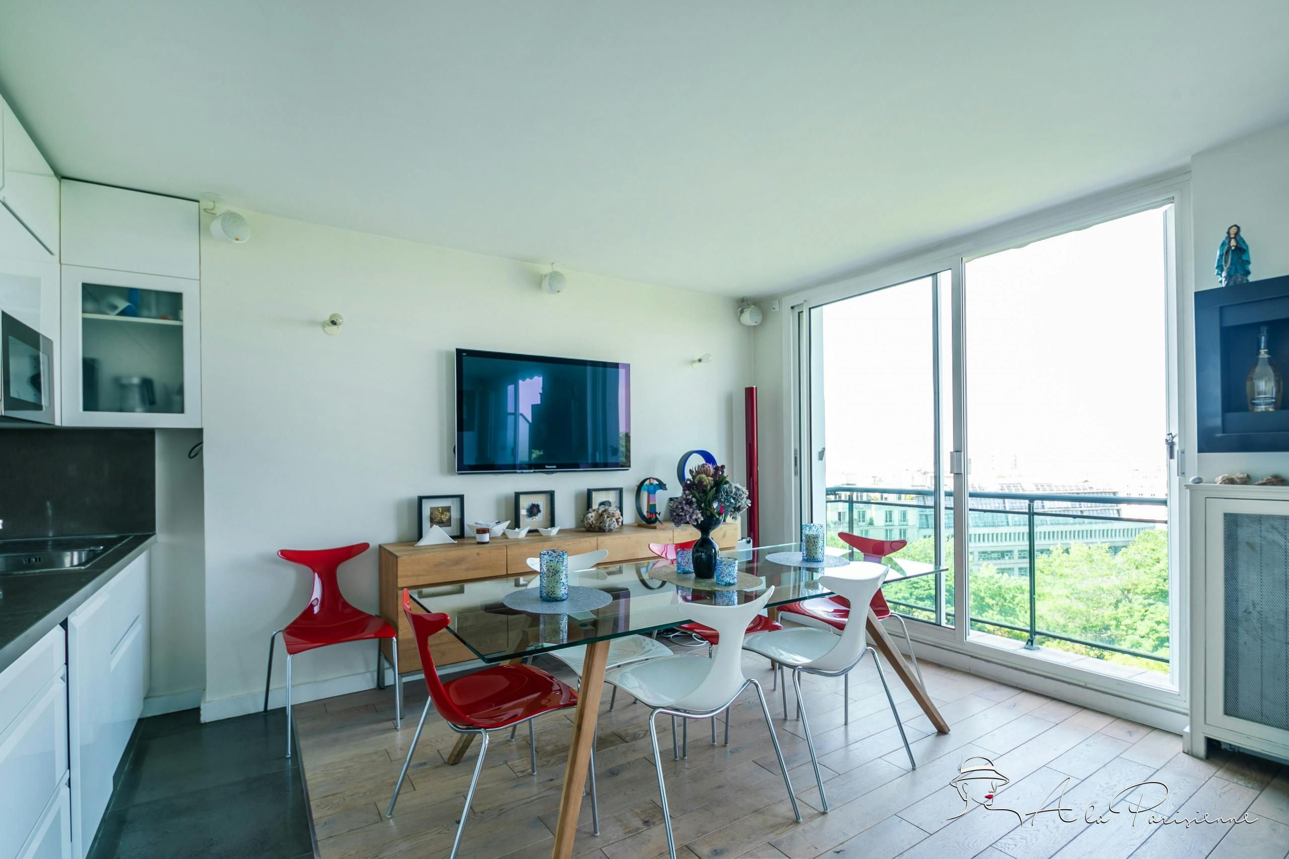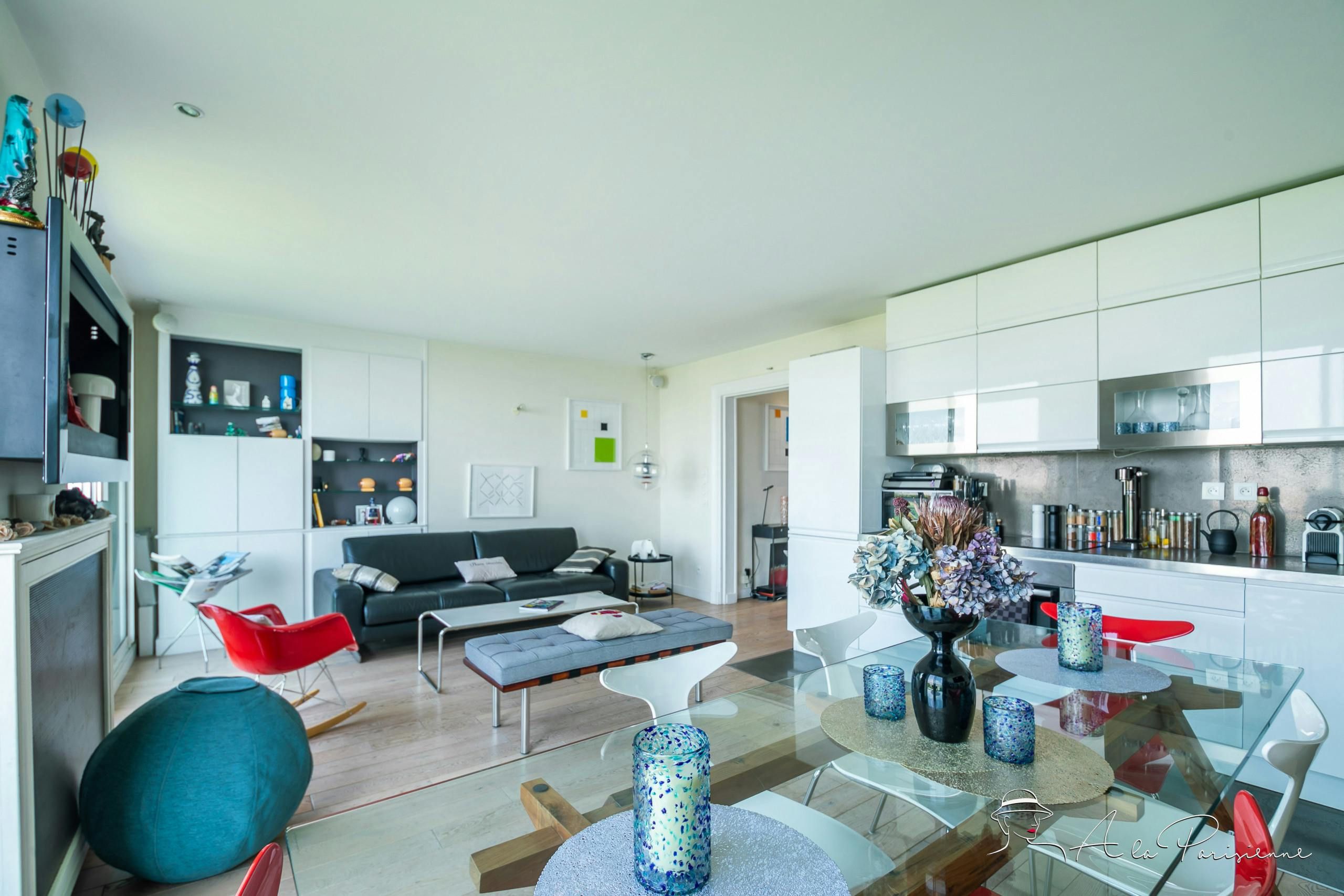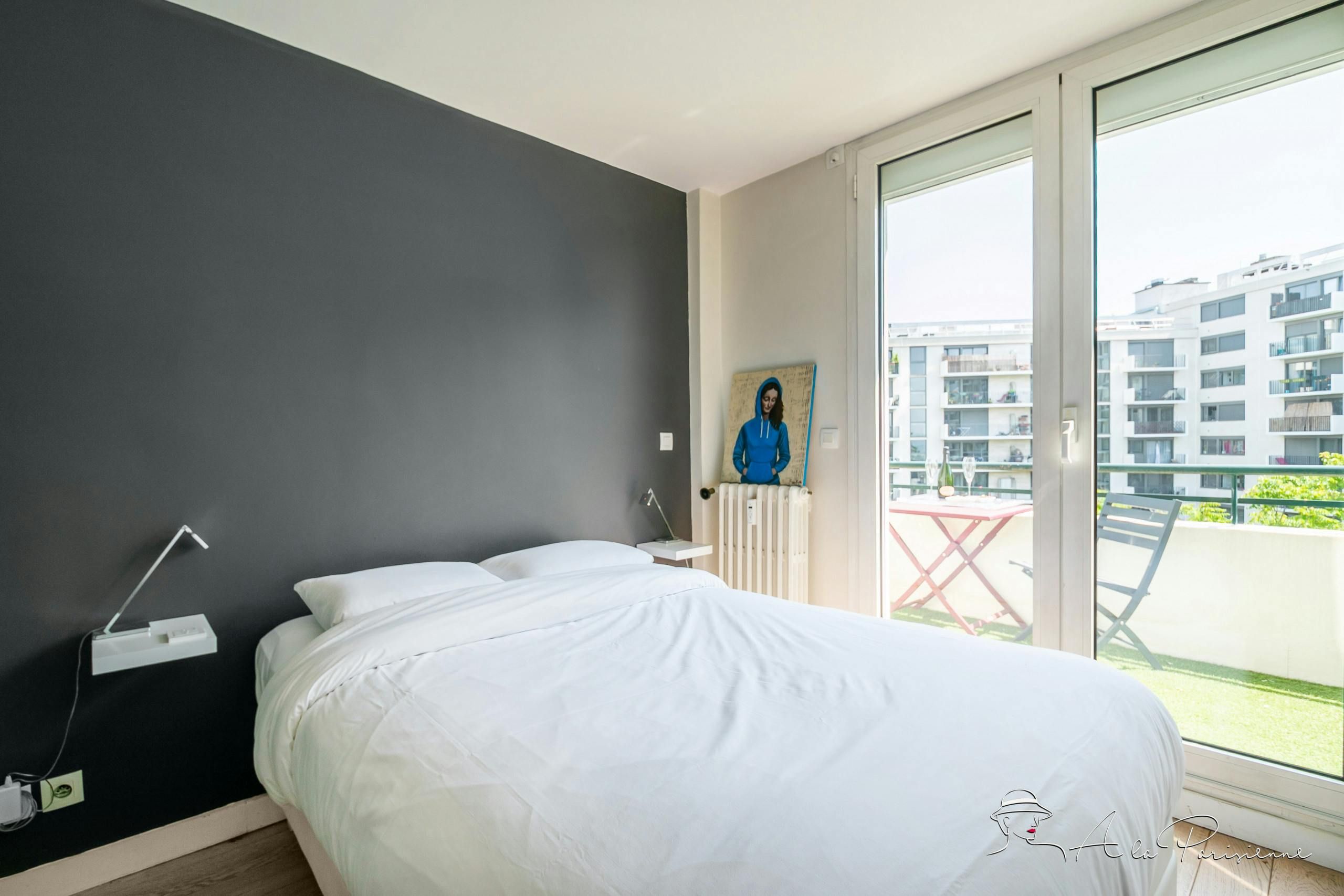 This bright and welcoming apartment can be found opposite Buttes Chaumont Park, offering wonderful views of the vast green space. Best of all, the views from the apartment stretch all the way across Paris – you can even see the Eiffel Tower. There’s a balcony at the front of the home as well as a terrace, but the views can be admired from the open-plan living and dining space too, thanks to the huge windows. There are plenty of bakeries, bars, shops and restaurants nearby, and you can easily explore the rest of Paris using the metro – Buttes Chaumont station is just a few metres away.