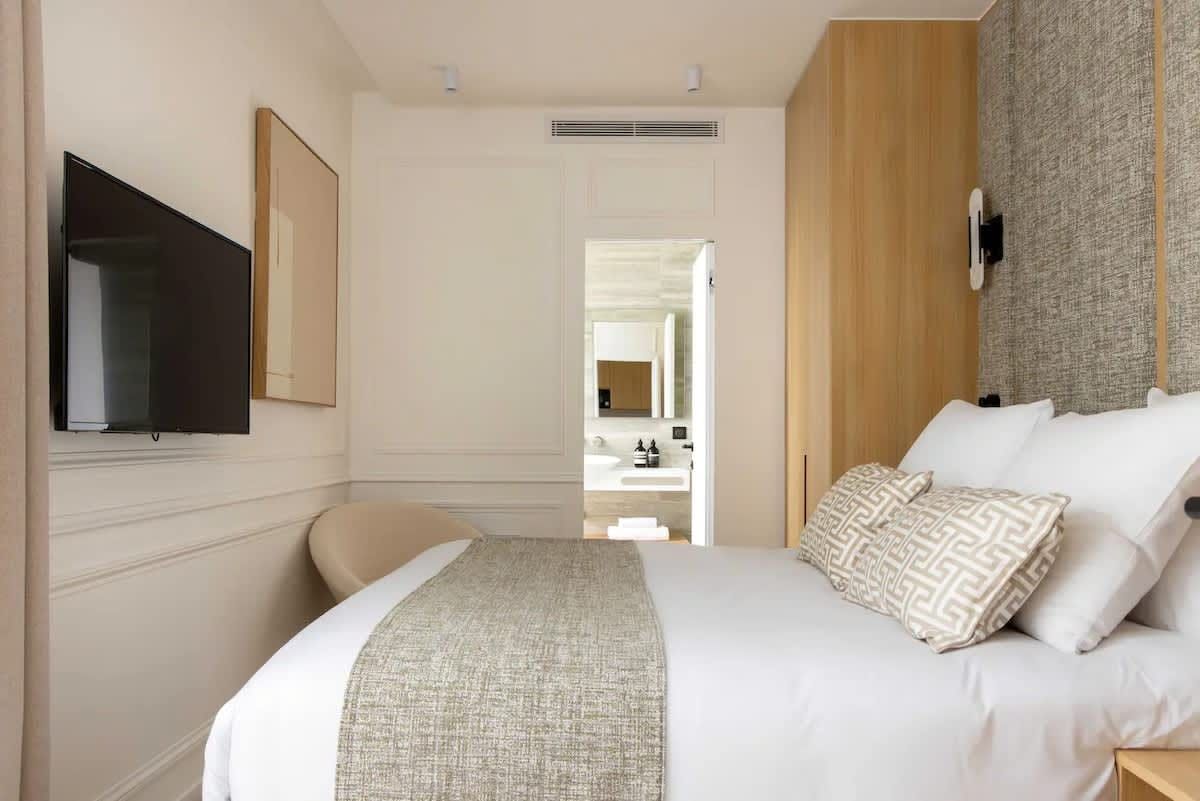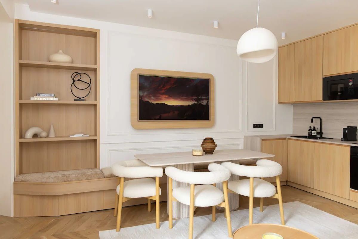 With an address in the Gaillon district, plenty of attractions are near this apartment. A short stroll will take you to the Palais Royal, the Louvre and the Palais Garnier. There’s a variety of shops, cafes and restaurants in the vicinity too. Back at this apartment, situated on the third floor (with no lift), the modern open-plan living room sleeps two guests at full capacity. The main bedroom has a stylish en-suite and there’s also a luxurious family bathroom. This refurbished apartment offers a comfortable stay in the City of Light.