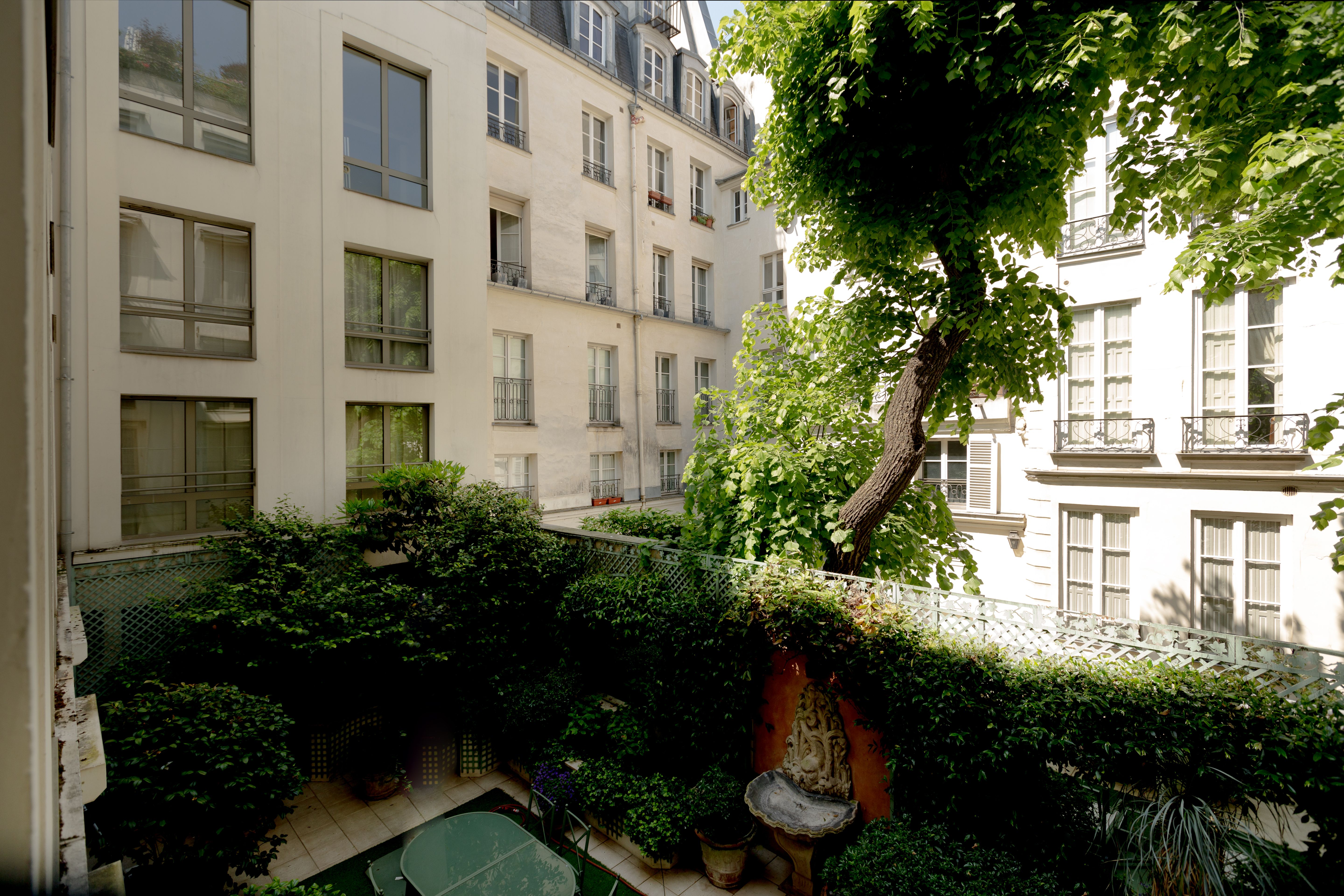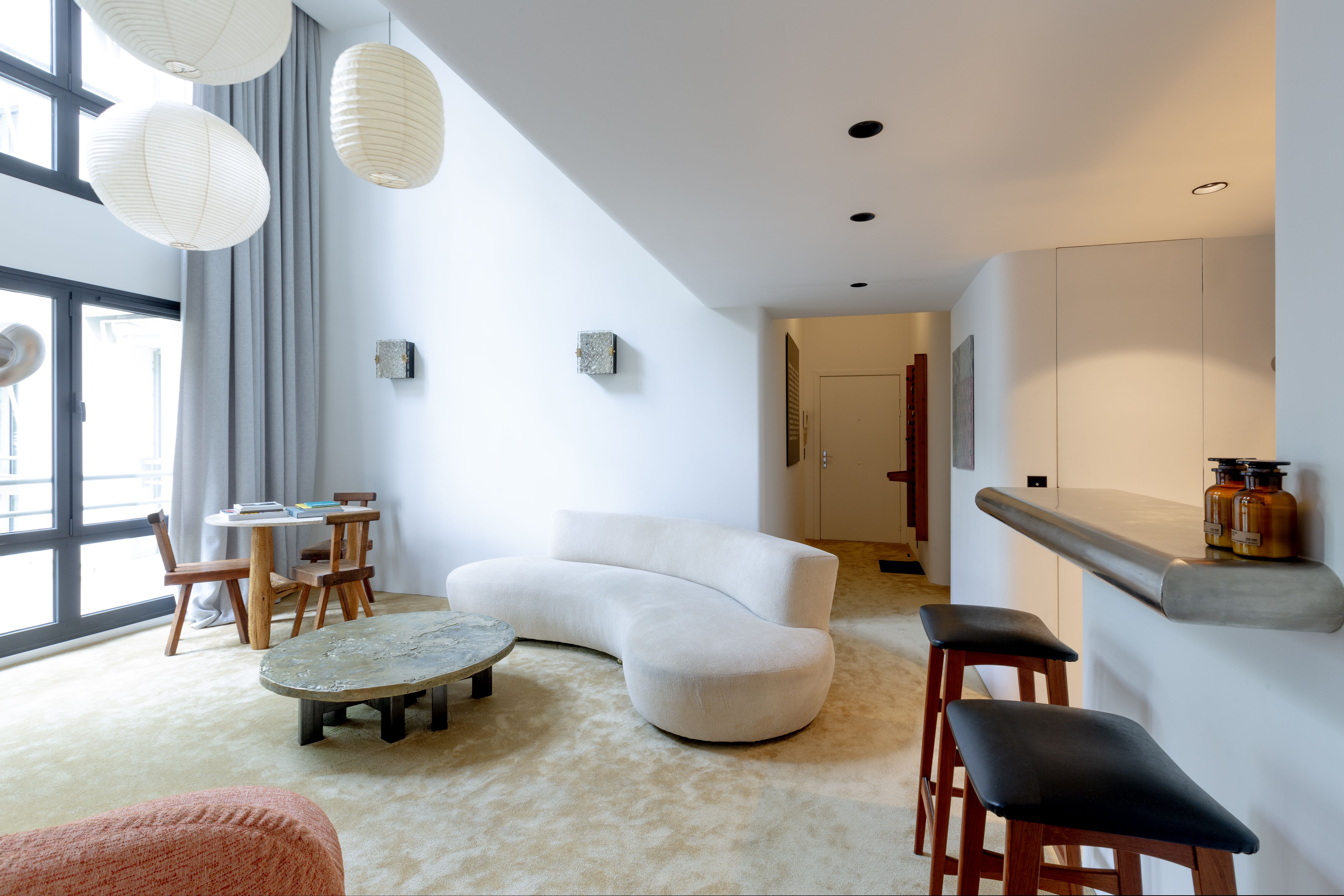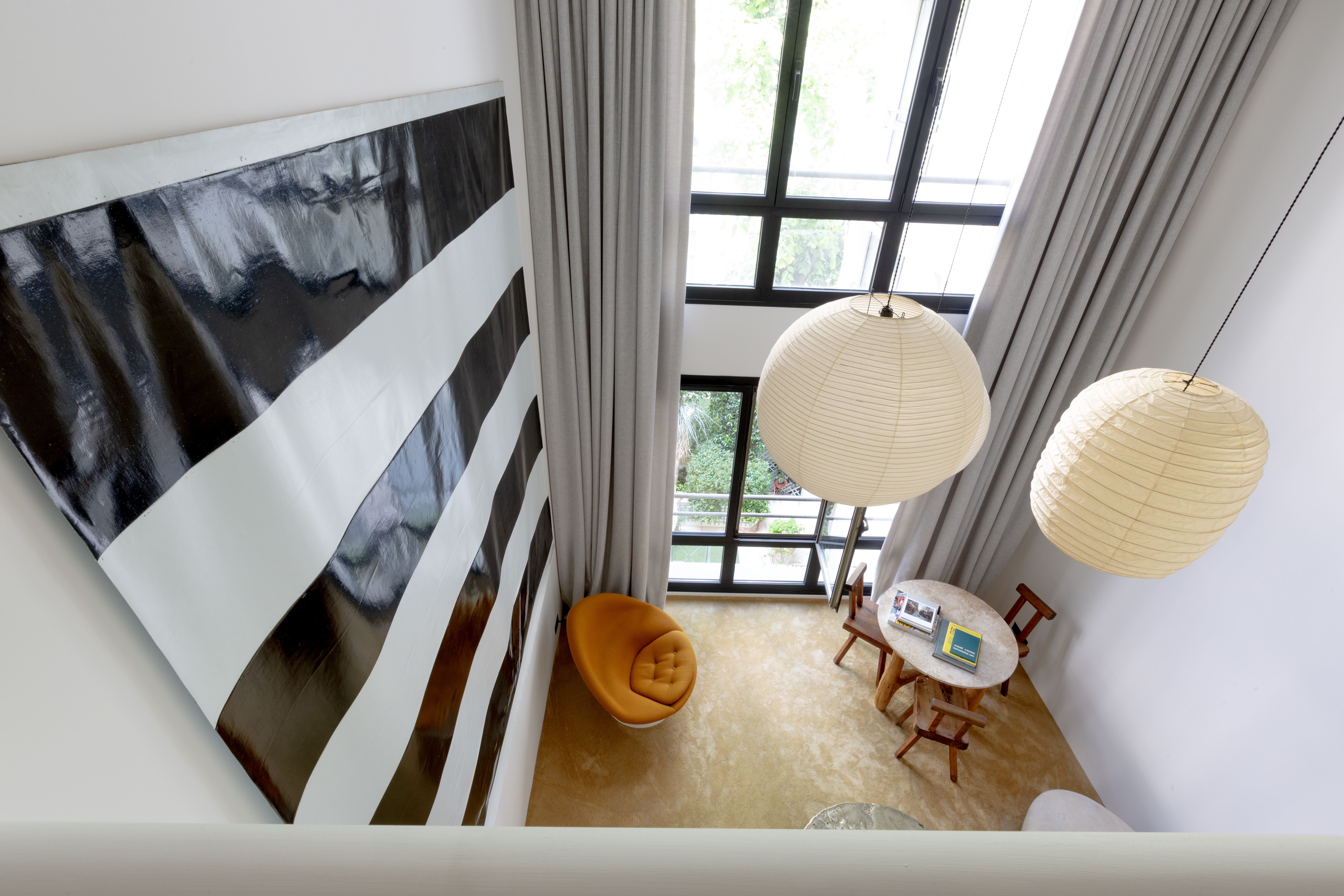Boasting art deco details and a split-level layout, this former artist's atelier is prime for a Parisian getaway. Though the living space is slightly small, the sky-high ceilings and large French windows with views of the courtyard provide a sense of openness. Your host has an eye for detail, as evidenced by the carefully curated art and designer furnishings. There's a compact kitchen, plus a desk on the mezzanine that's ideal for remote working. With two en-suite bathrooms, it's convenient for groups, too. To top it all off, the location is excellent. You'll be in the heart of Saint-Germain-des-Prés, on an iconic street just moments from restaurants, shops, the Seine, and Notre Dame.