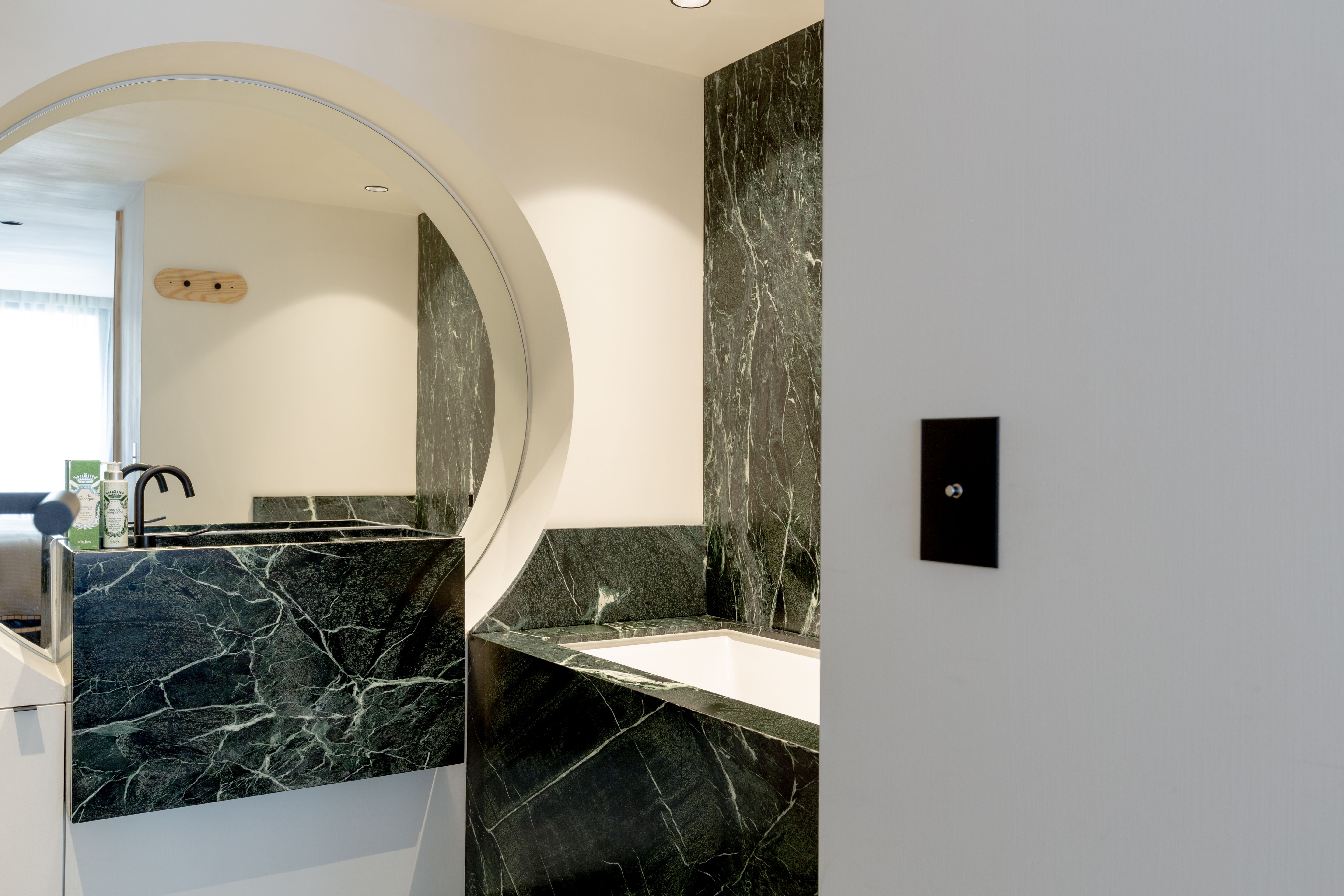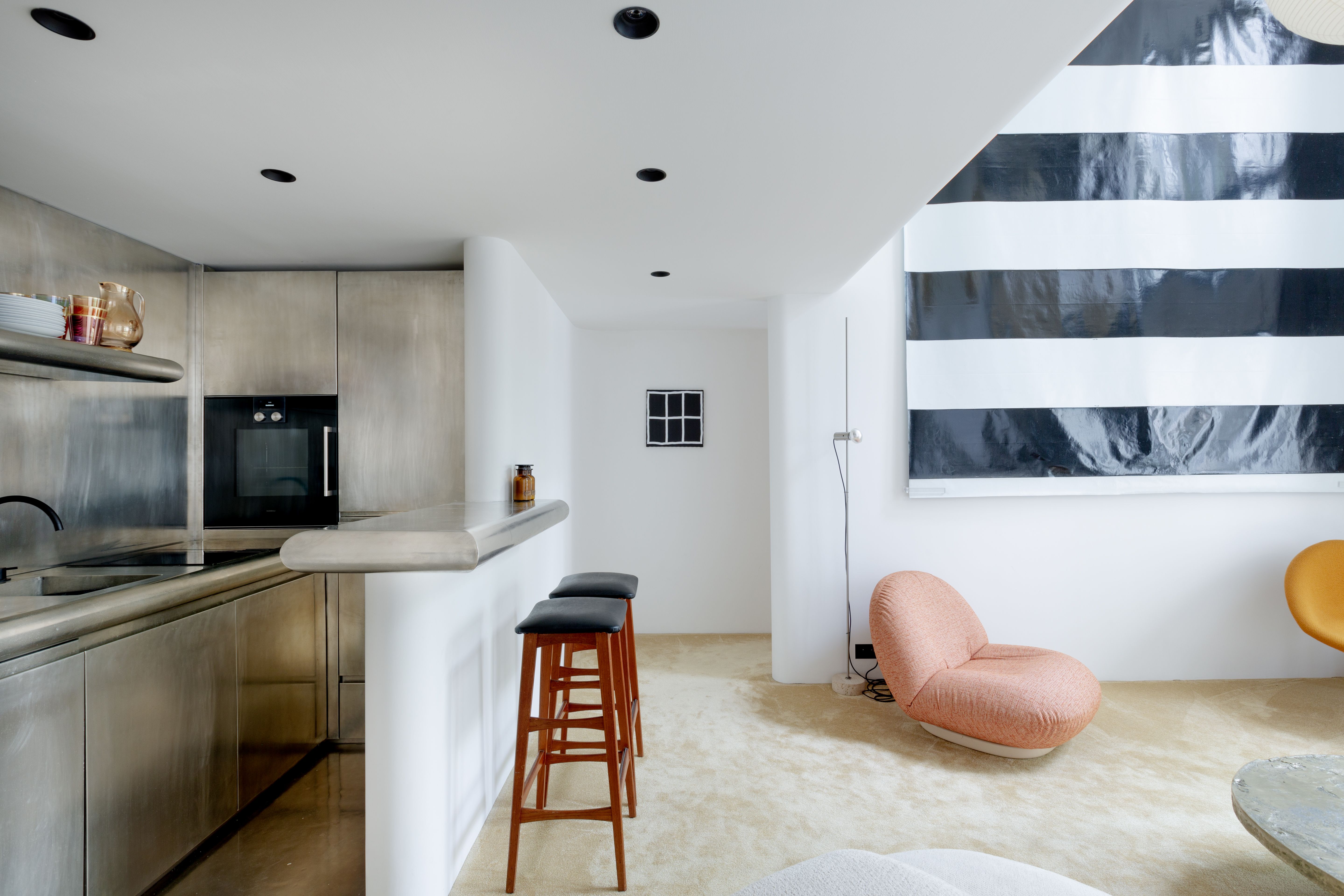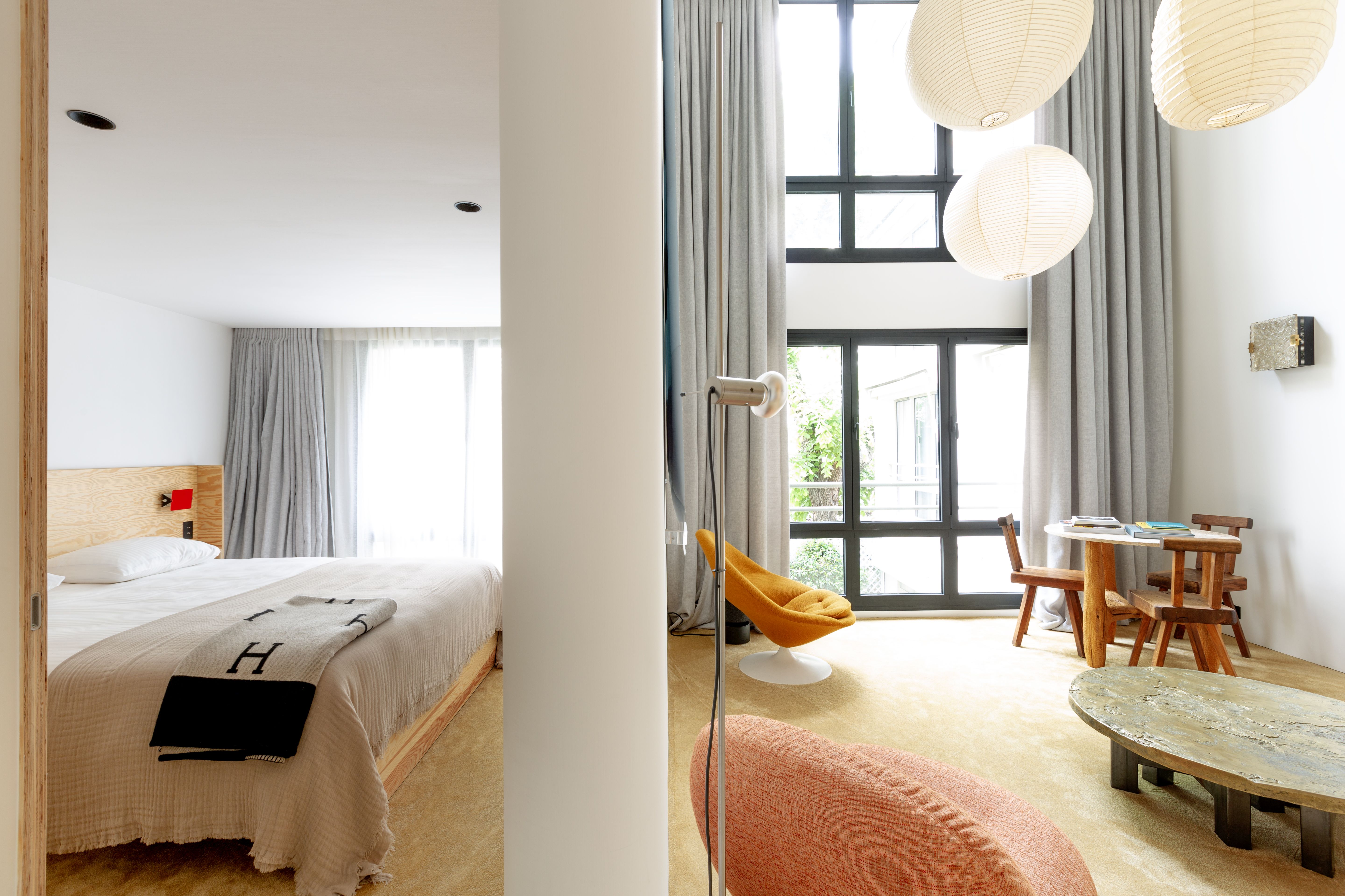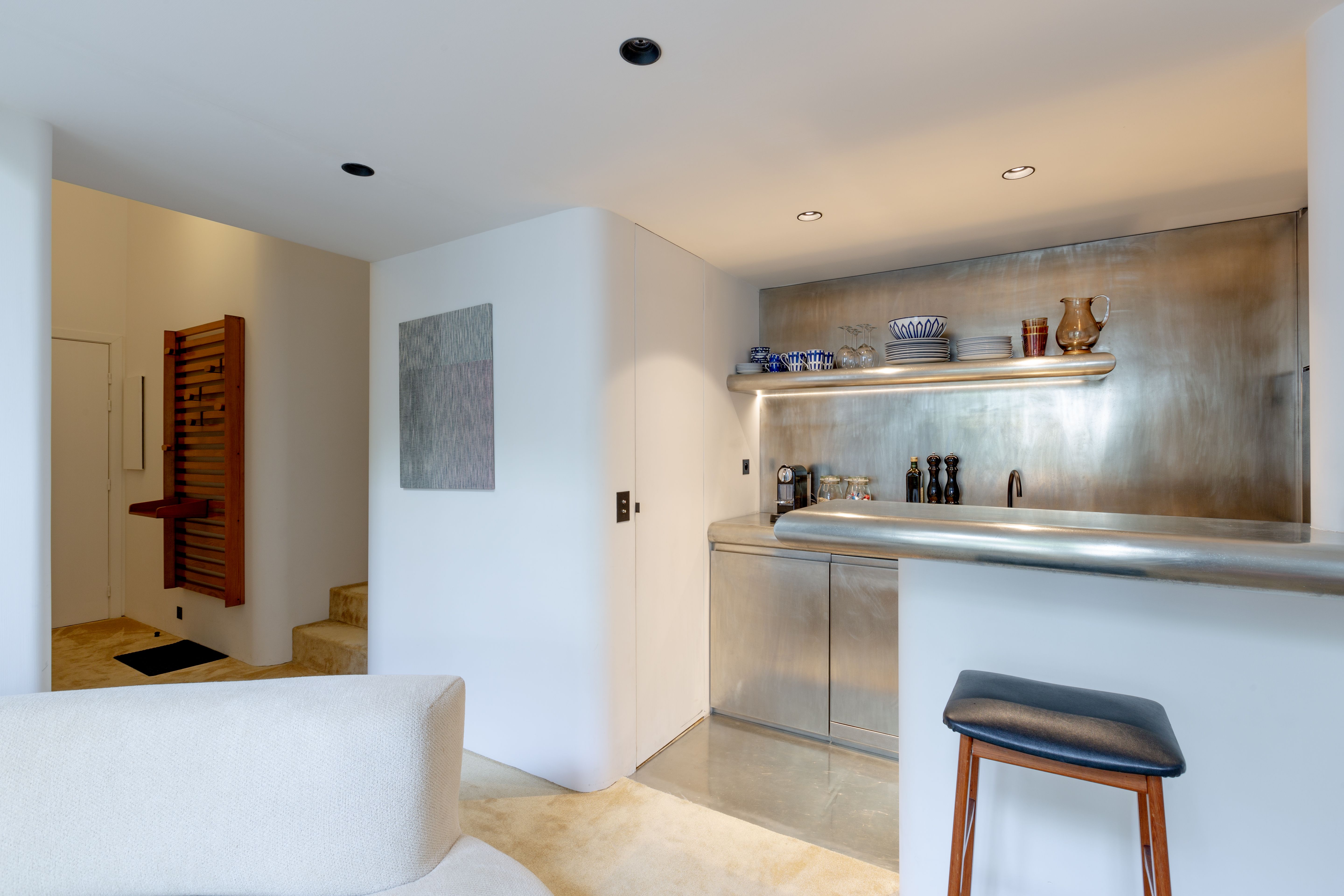 Boasting art deco details and a split-level layout, this former artist's atelier is prime for a Parisian getaway. Though the living space is slightly small, the sky-high ceilings and large French windows with views of the courtyard provide a sense of openness. Your host has an eye for detail, as evidenced by the carefully curated art and designer furnishings. There's a compact kitchen, plus a desk on the mezzanine that's ideal for remote working. With two en-suite bathrooms, it's convenient for groups, too. To top it all off, the location is excellent. You'll be in the heart of Saint-Germain-des-Prés, on an iconic street just moments from restaurants, shops, the Seine, and Notre Dame.