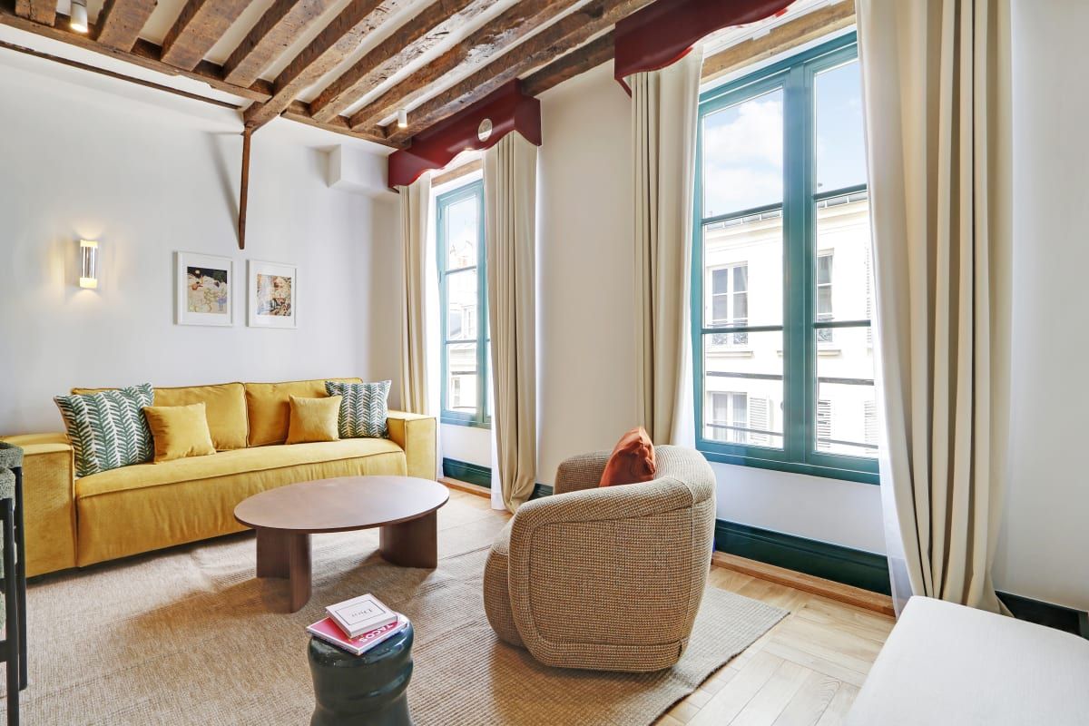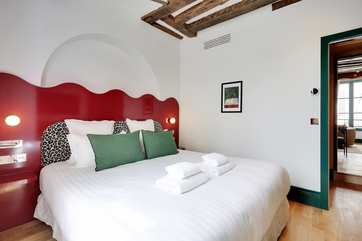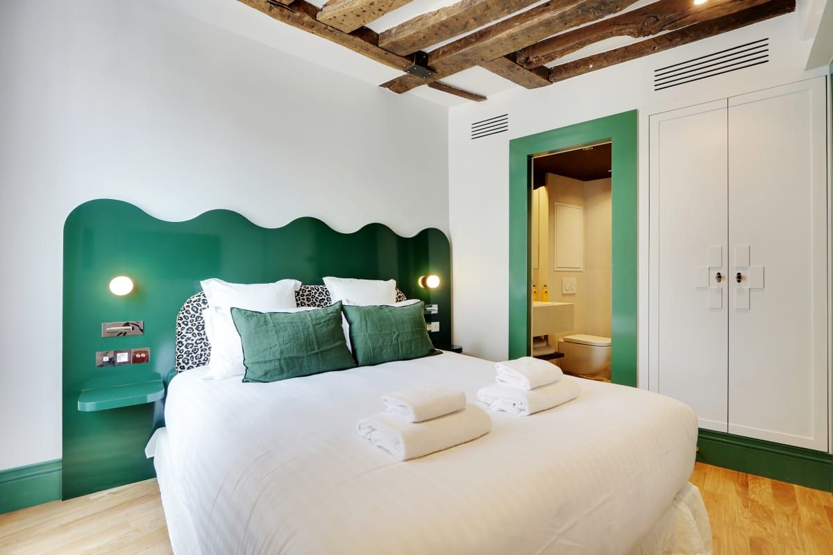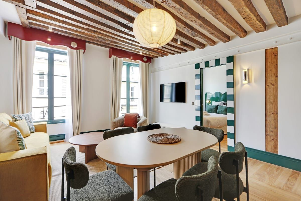 Colourful and cosy, this compact apartment could not be better located. It's situated in the vibrant Saint-Germain district, just a stone's throw from Notre Dame, the Louvre, and the Seine. The kitchen isn't the biggest, but you'll find plenty of cafes, bistros, and brasseries in the local area where you can whet your appetite. You'll find two comfortable bedrooms here, including one with an en-suite, as well as a sofa bed for guests five and six. Daily cleaning is also included – that's all our boxes ticked.