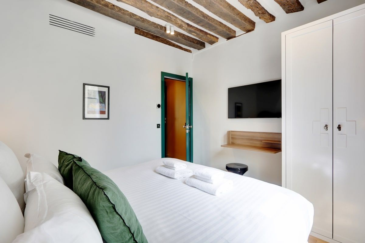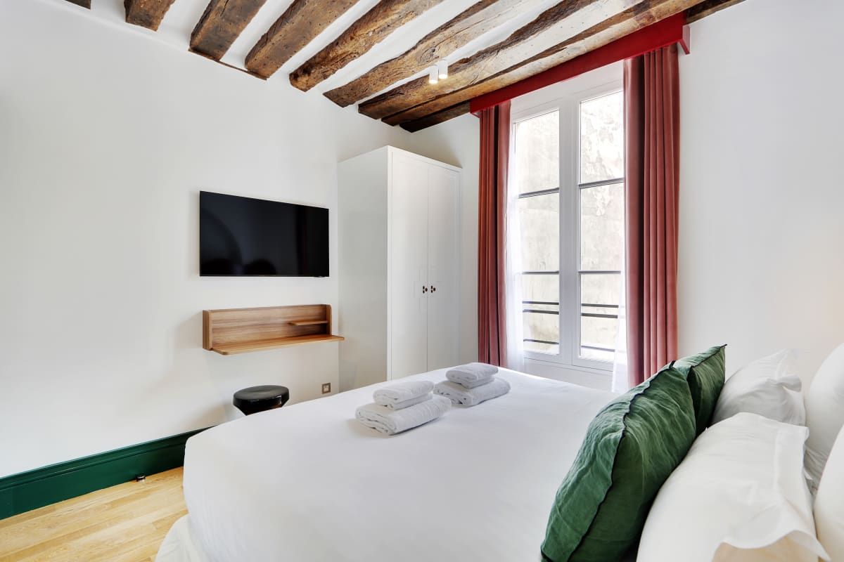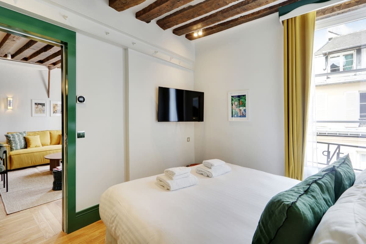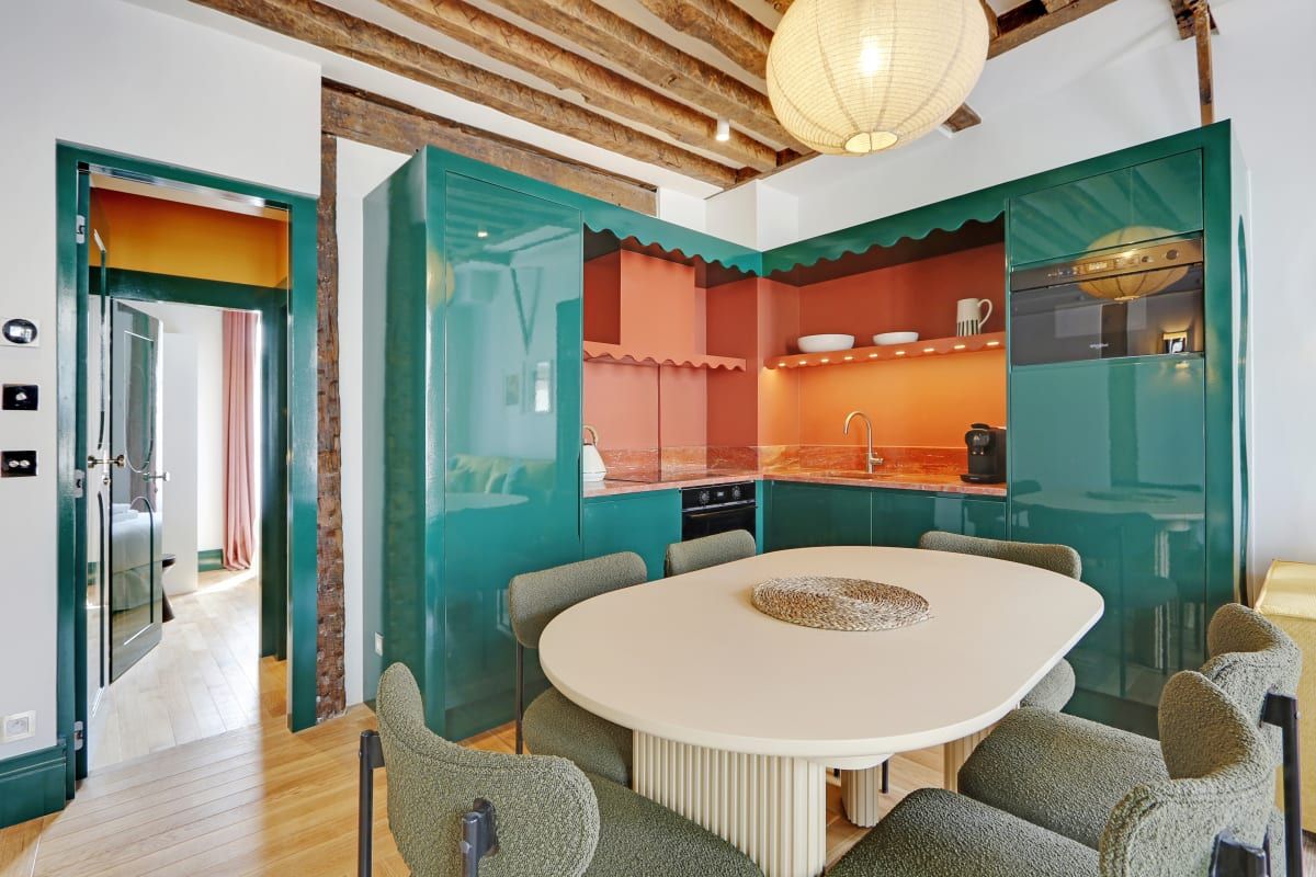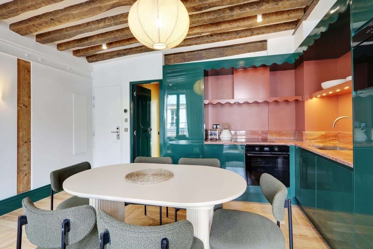 Colourful and cosy, this compact apartment could not be better located. It's situated in the vibrant Saint-Germain district, just a stone's throw from Notre Dame, the Louvre, and the Seine. The kitchen isn't the biggest, but you'll find plenty of cafes, bistros, and brasseries in the local area where you can whet your appetite. You'll find two comfortable bedrooms here, including one with an en-suite, as well as a sofa bed for guests five and six. Daily cleaning is also included – that's all our boxes ticked.