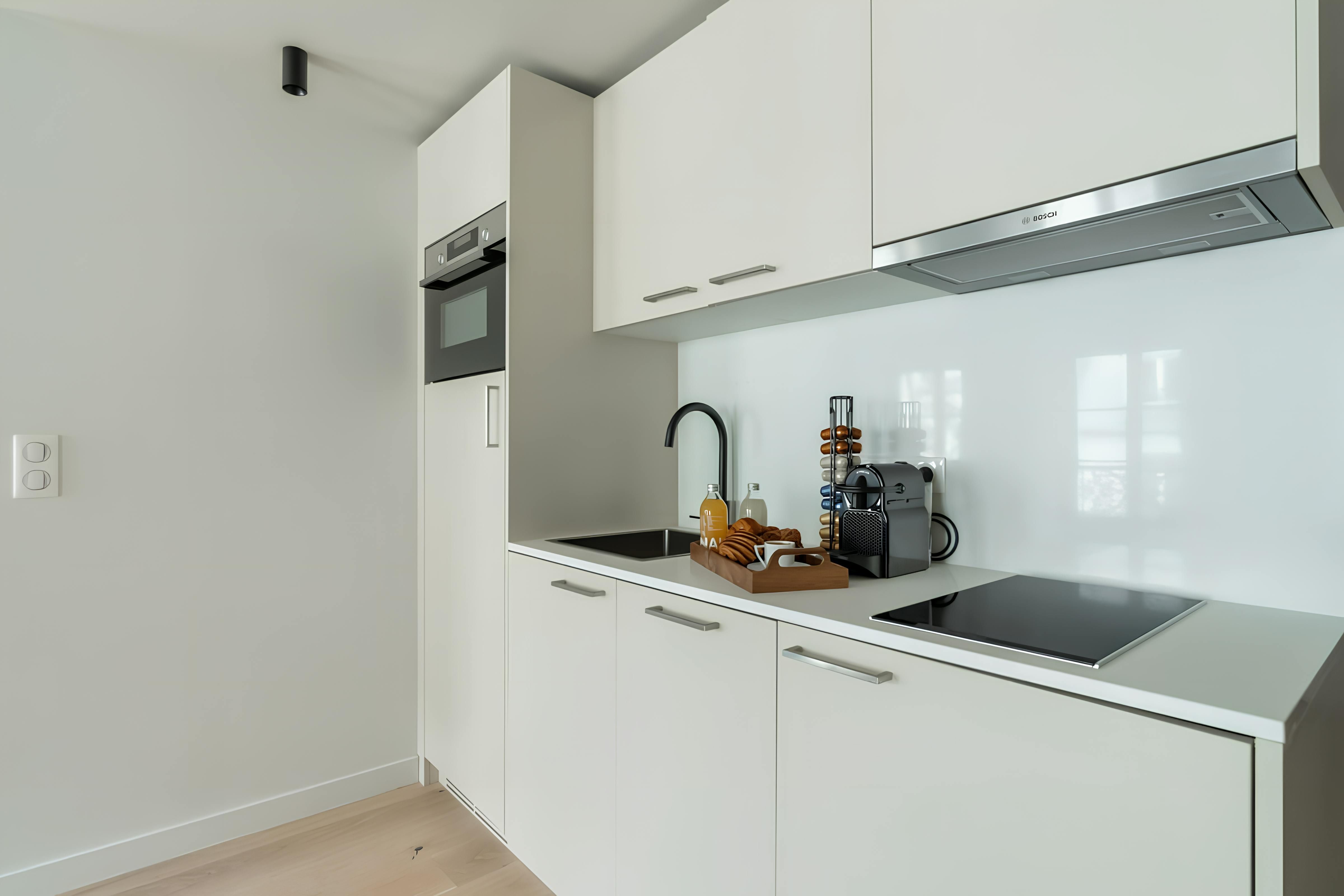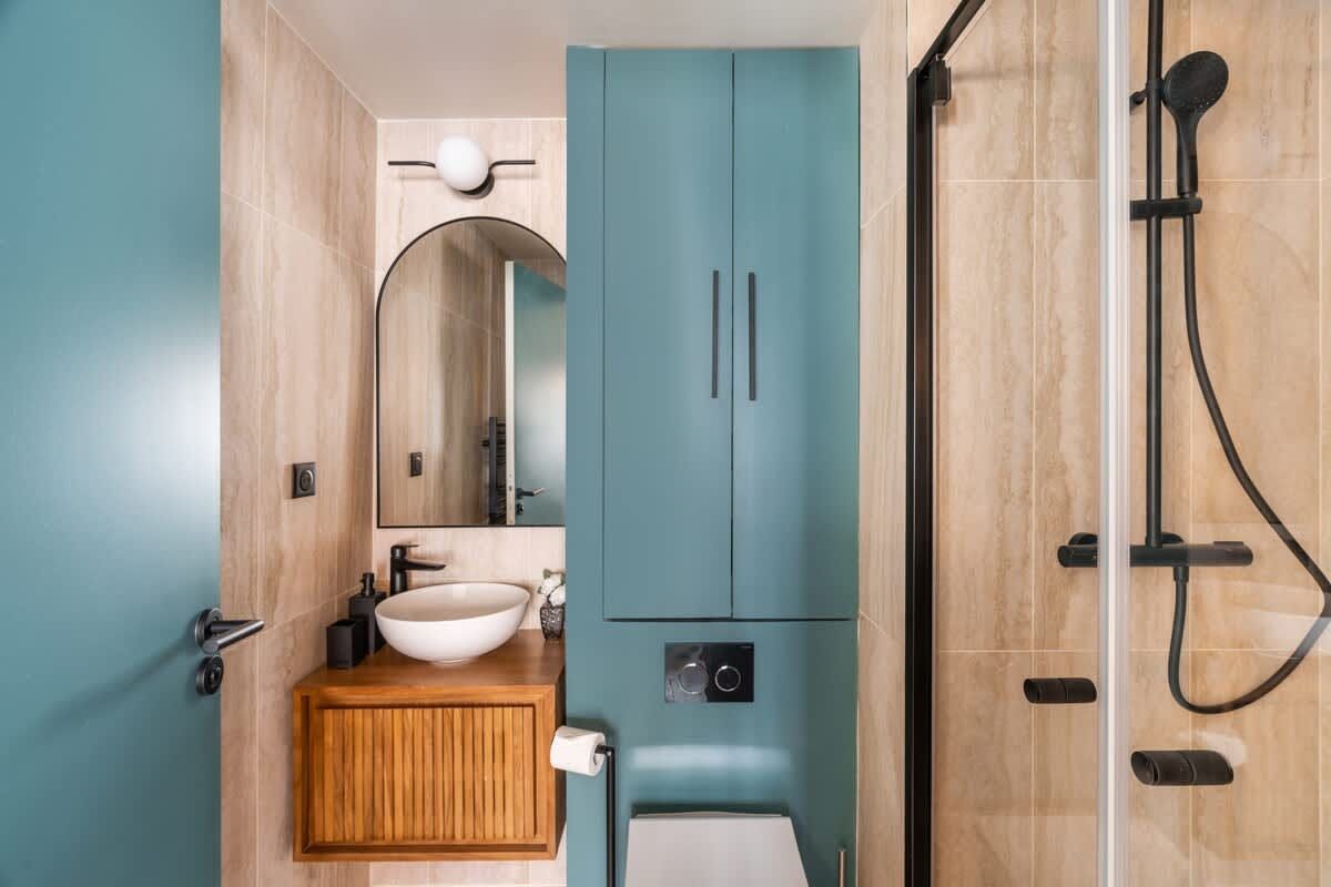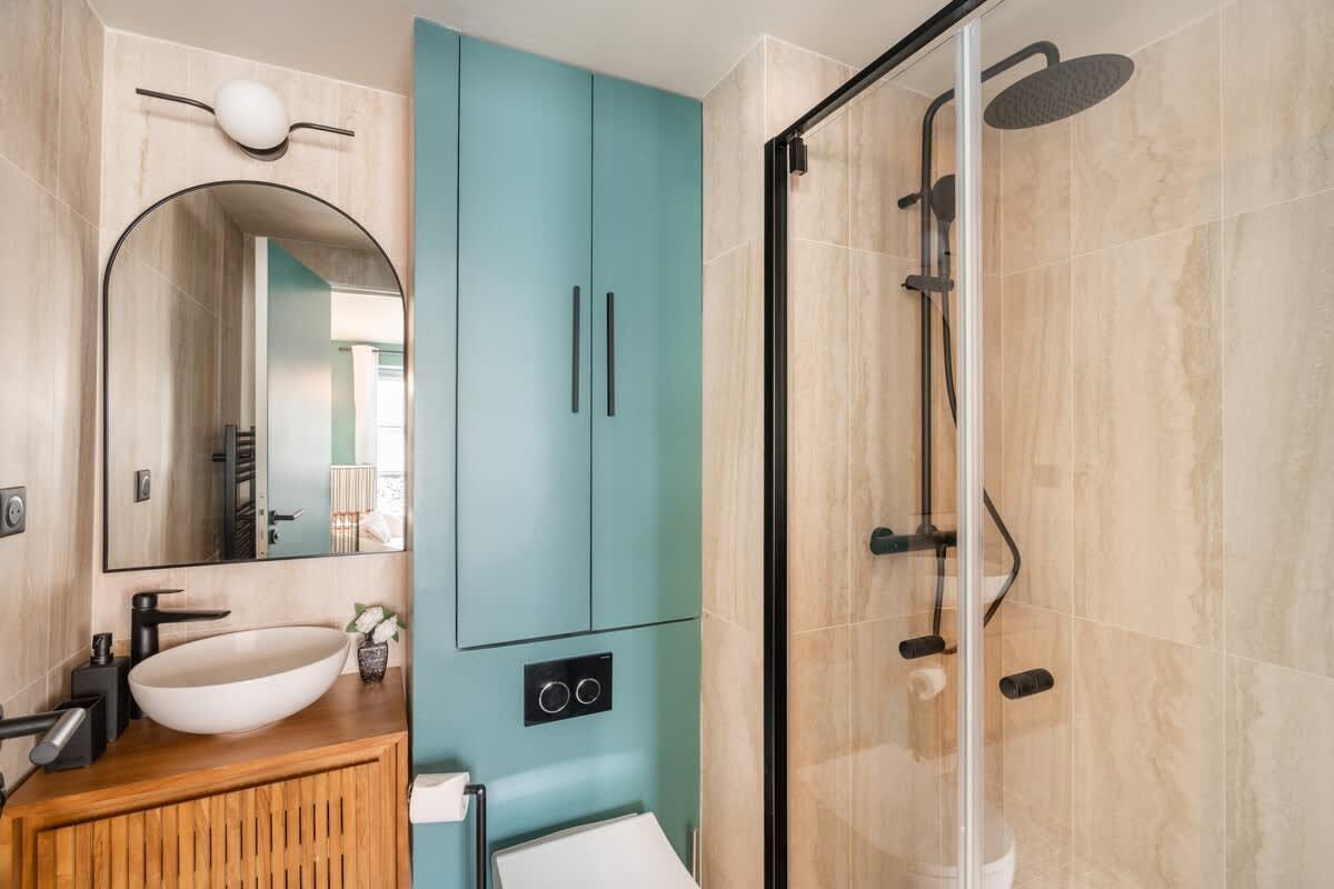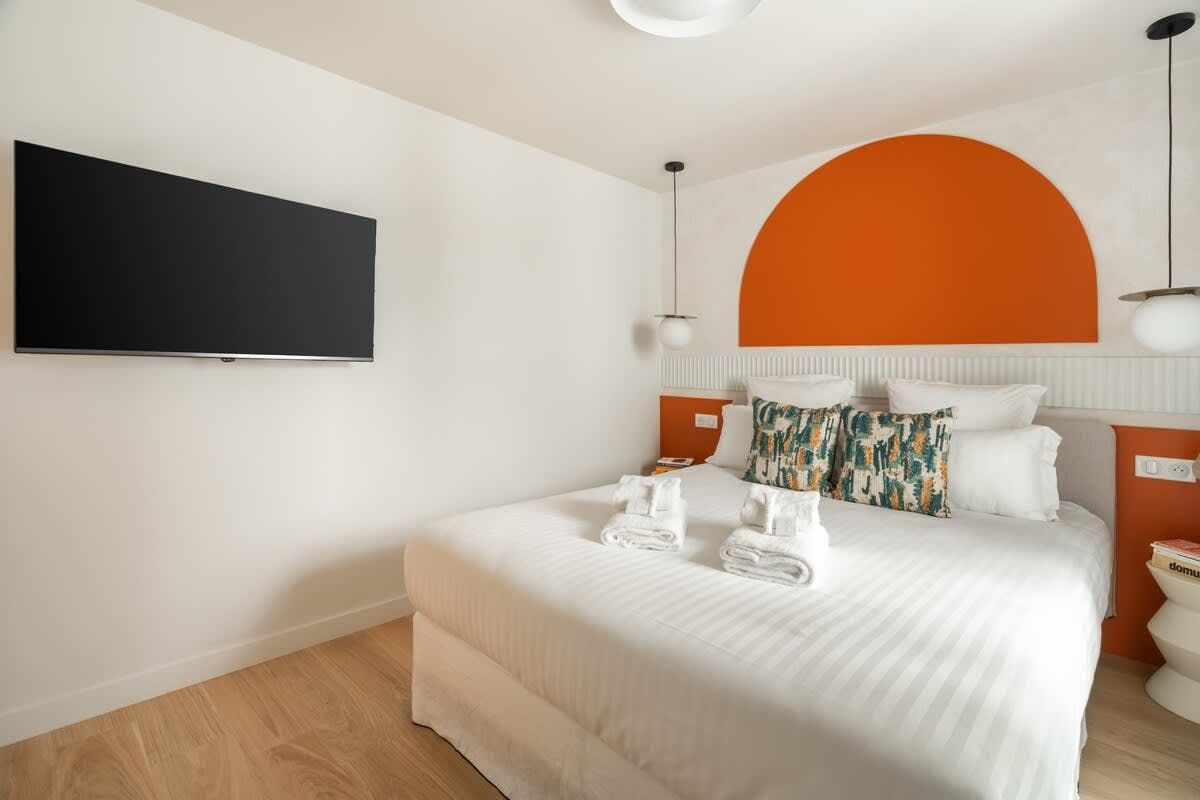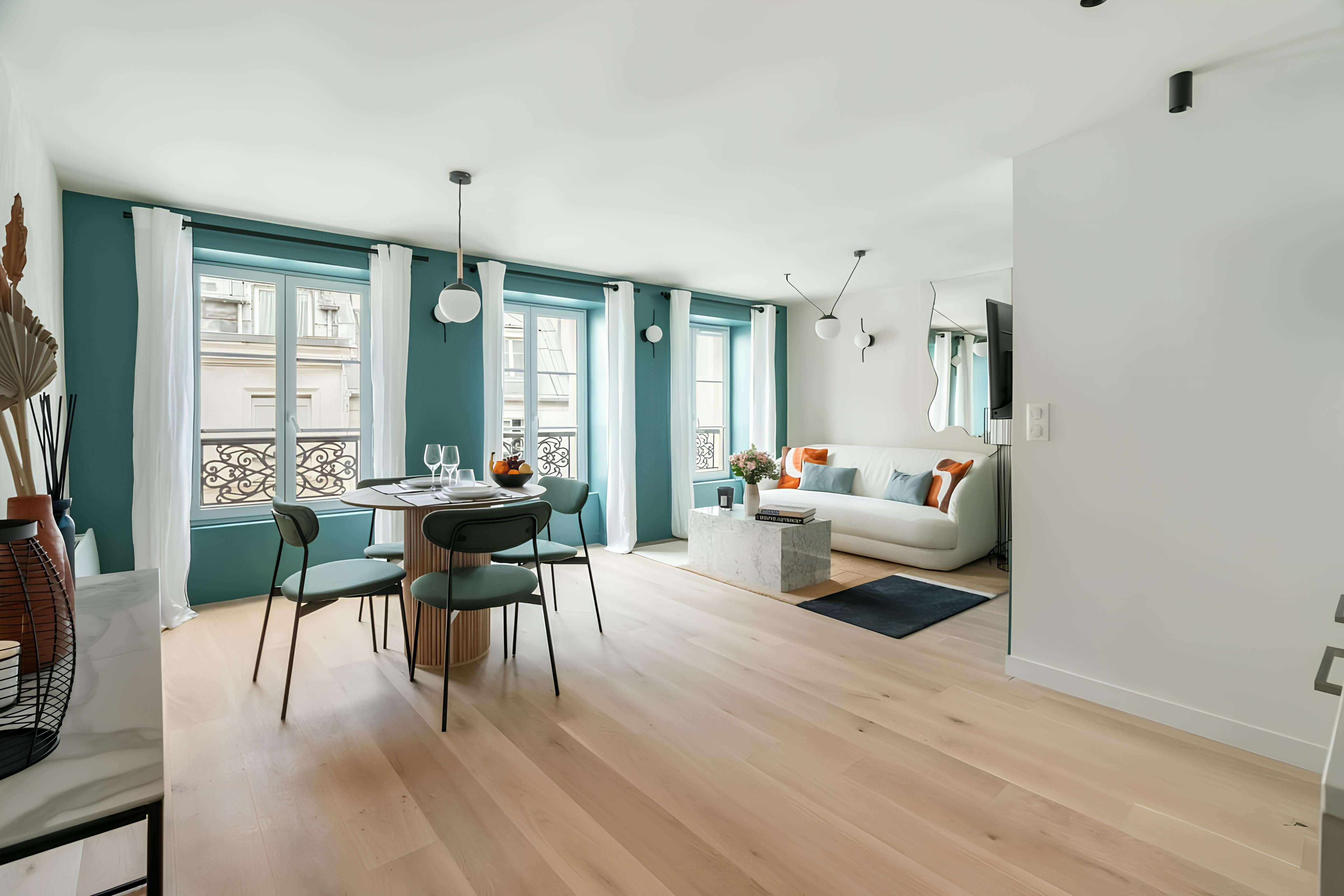 Situated right in the heart of the second arrondissement where it meets the Marais neighbourhood, this one-bedroom apartment is bold, bright and full of home comforts. Two large windows illuminate the living space, where colourful accents of blue and orange offer a playful atmosphere. Set on a quiet street in an otherwise bustling part of Paris, it’s the perfect place from which to explore the Marais, with its many restaurants, art galleries and boutiques. Or, if you fancy some retail therapy, visit the sprawling shopping centre at Les Halles.