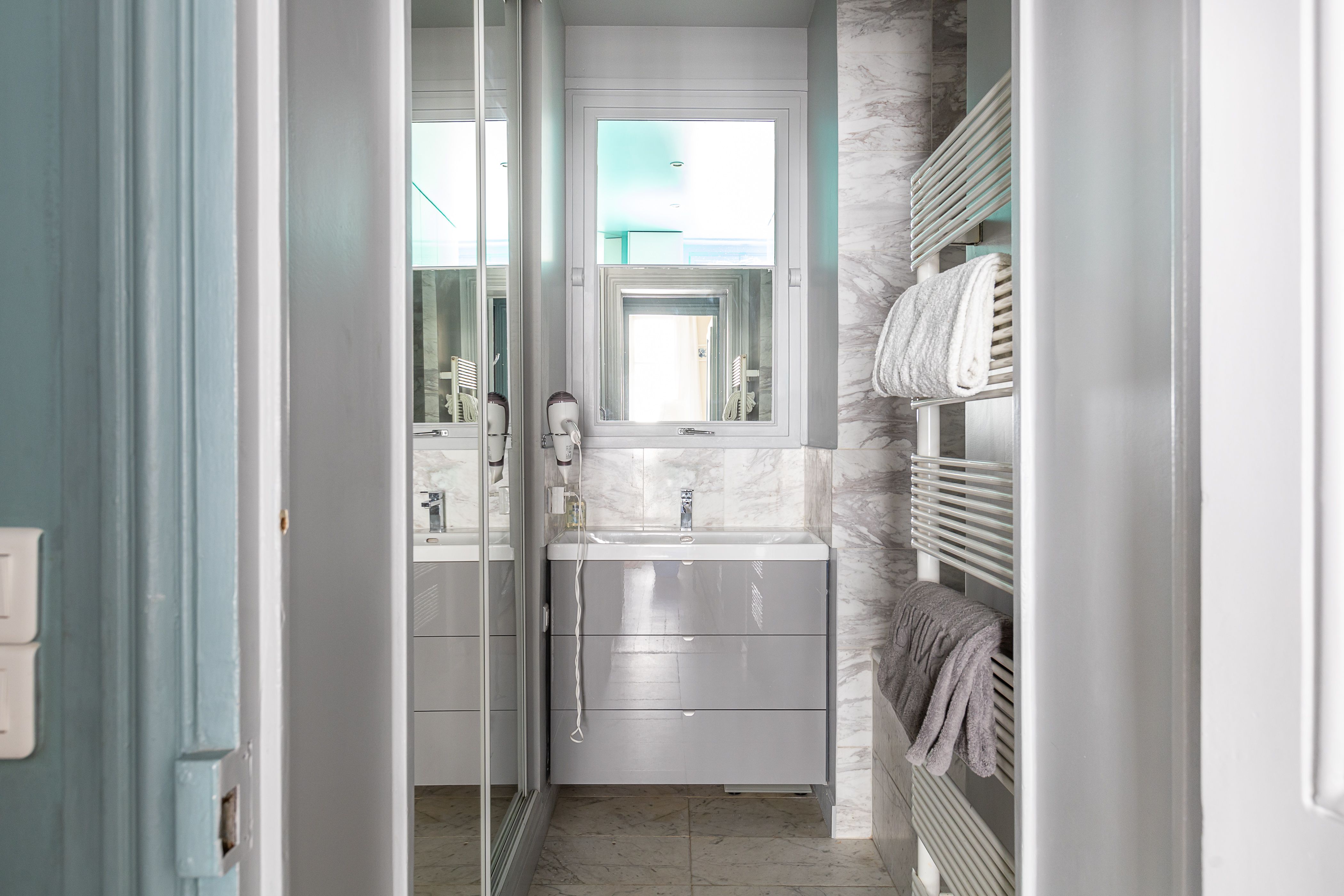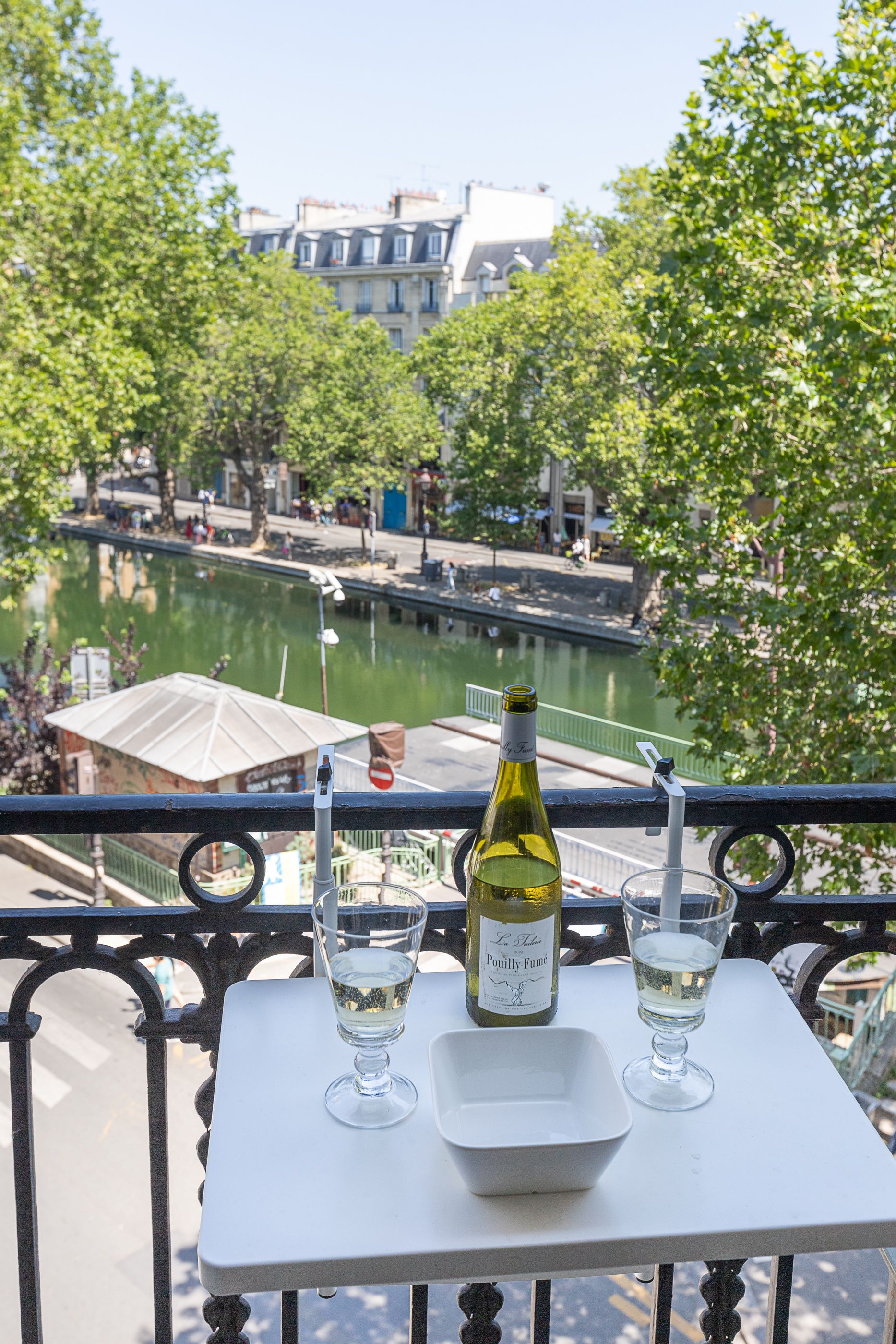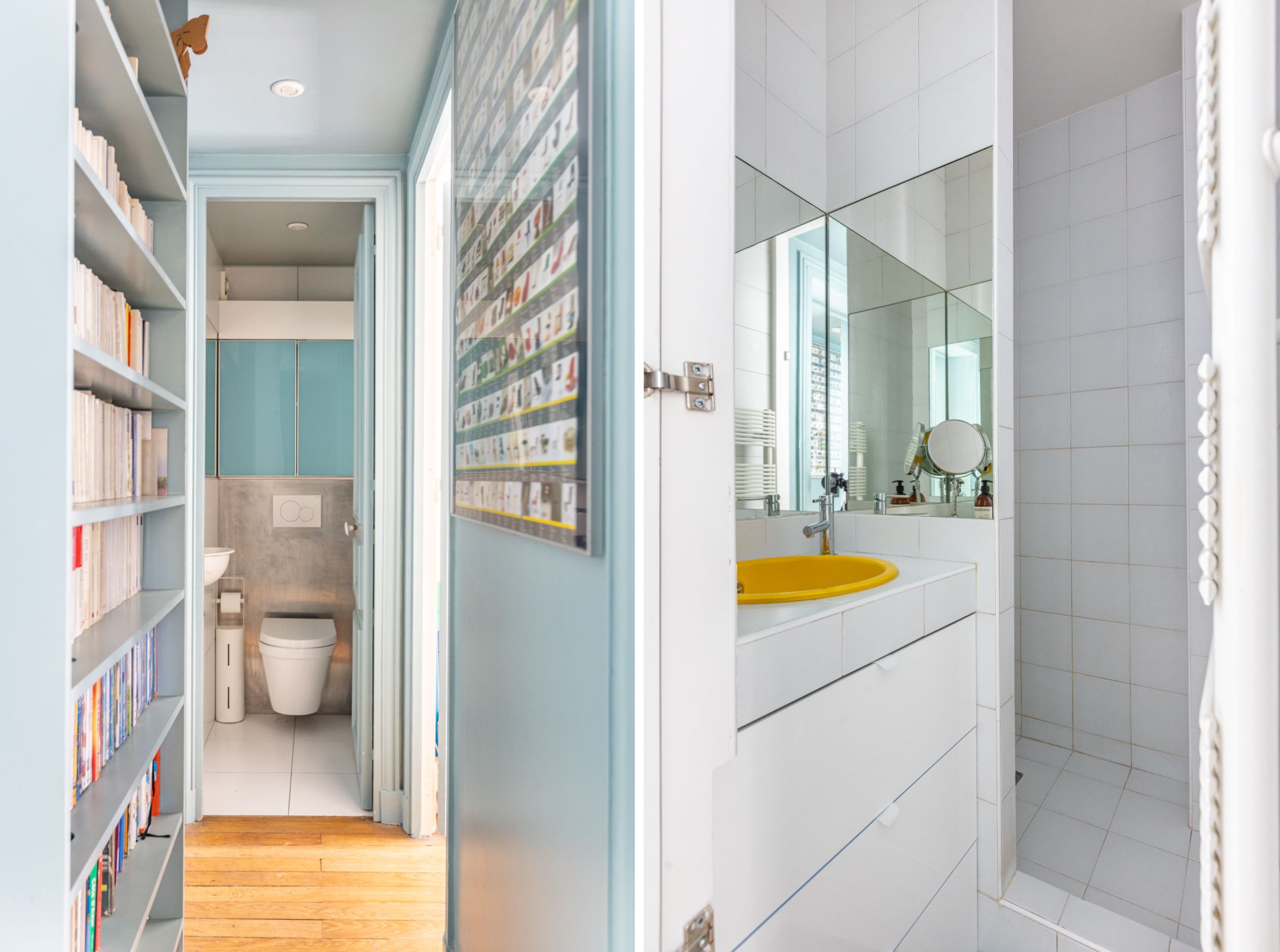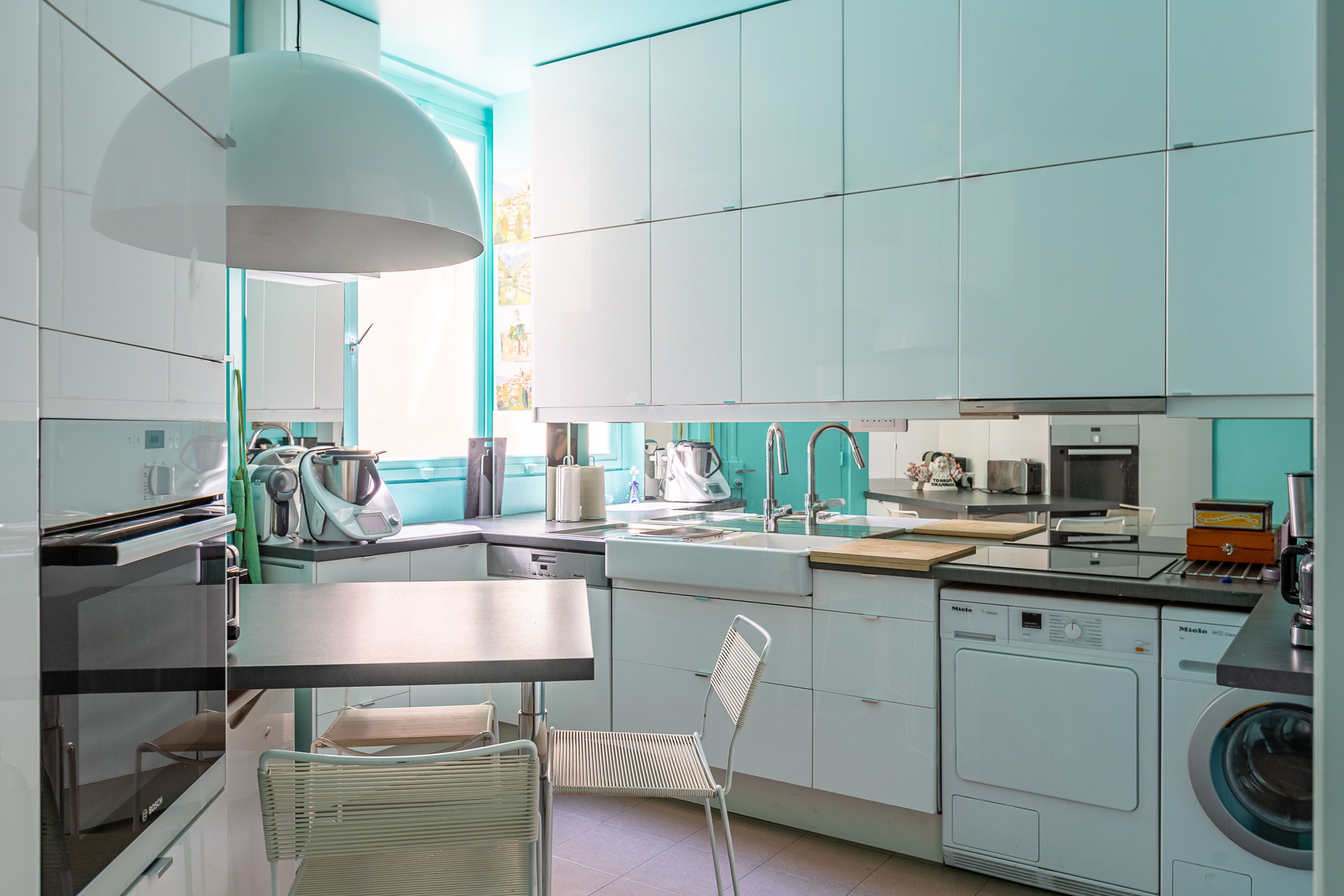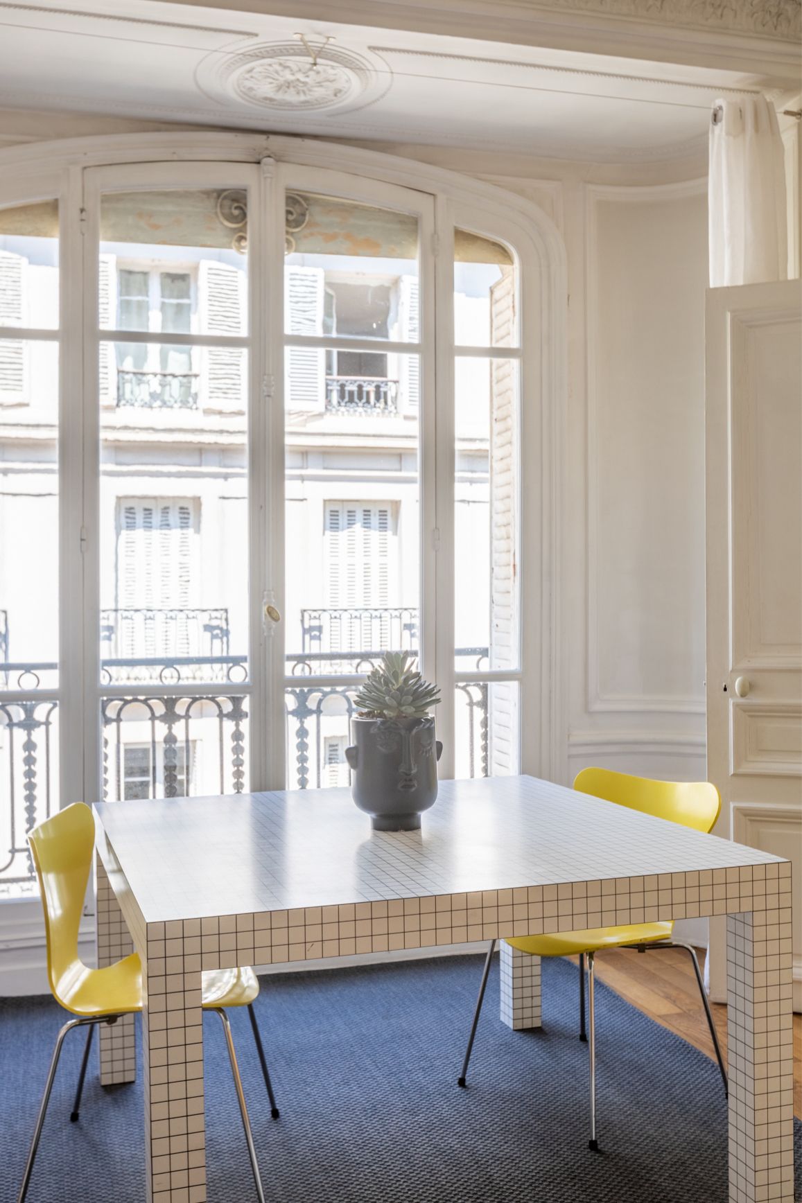 Not many apartments in Paris can say they have waterfront views, but this home in the lively Canal St-Martin overlooks the neighbourhood’s beautiful canal and its boats, local fishermen, swallows and ducks. The home itself is classically Hausmannian and beautifully decorated, with large windows, Hungarian point hardwood floors, marble fireplaces and intricate mouldings that contribute to its old-world regality. Bright blue velvet couches and vibrant contemporary artwork brings a pop of colour and ground us firmly in the 21st century – as do the TV, air conditioning and modern kitchen. We love that the couches face each other to create a lounge conducive to conversation, while the large dining table can seat up to twelve guests for an animated dinner party. If you don’t feel like eating in though, you’re staying in the right place. You’ll find excellent bars and restaurants in this busy neighbourhood teeming with artists and musicians. Plus, you’ll be around the corner from what is widely considered the best bakery in Paris – Du Pain et des Idées – so grab some of their delectable pastries to enjoy on the banks of the canal (or on your private balcony). On the weekends, the city closes the area for pedestrians – making a canal-side stroll or bike ride particularly pleasant. Should you want to reach other corners of the city, the Place de la République metro station is a quick five minutes’ walk away.