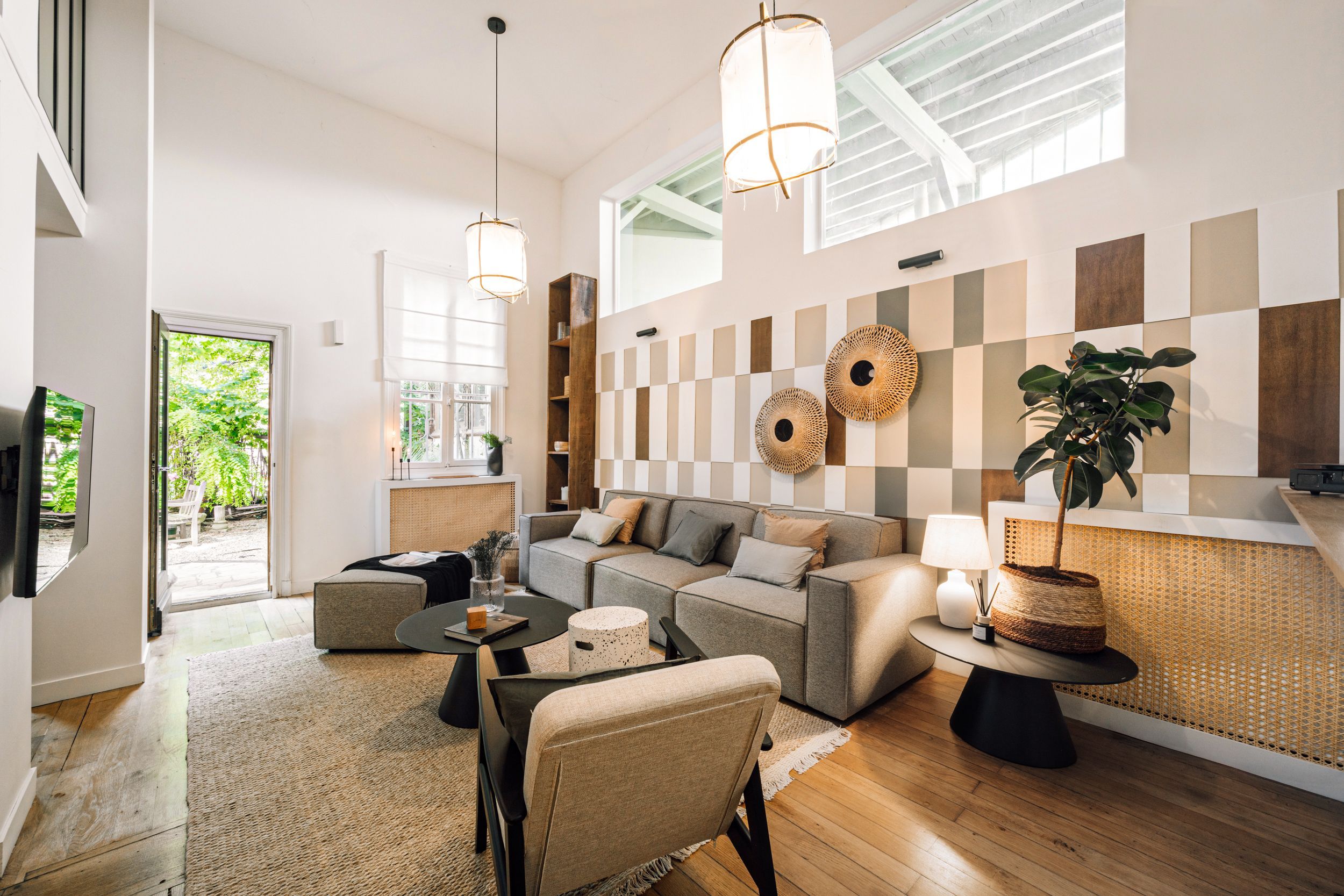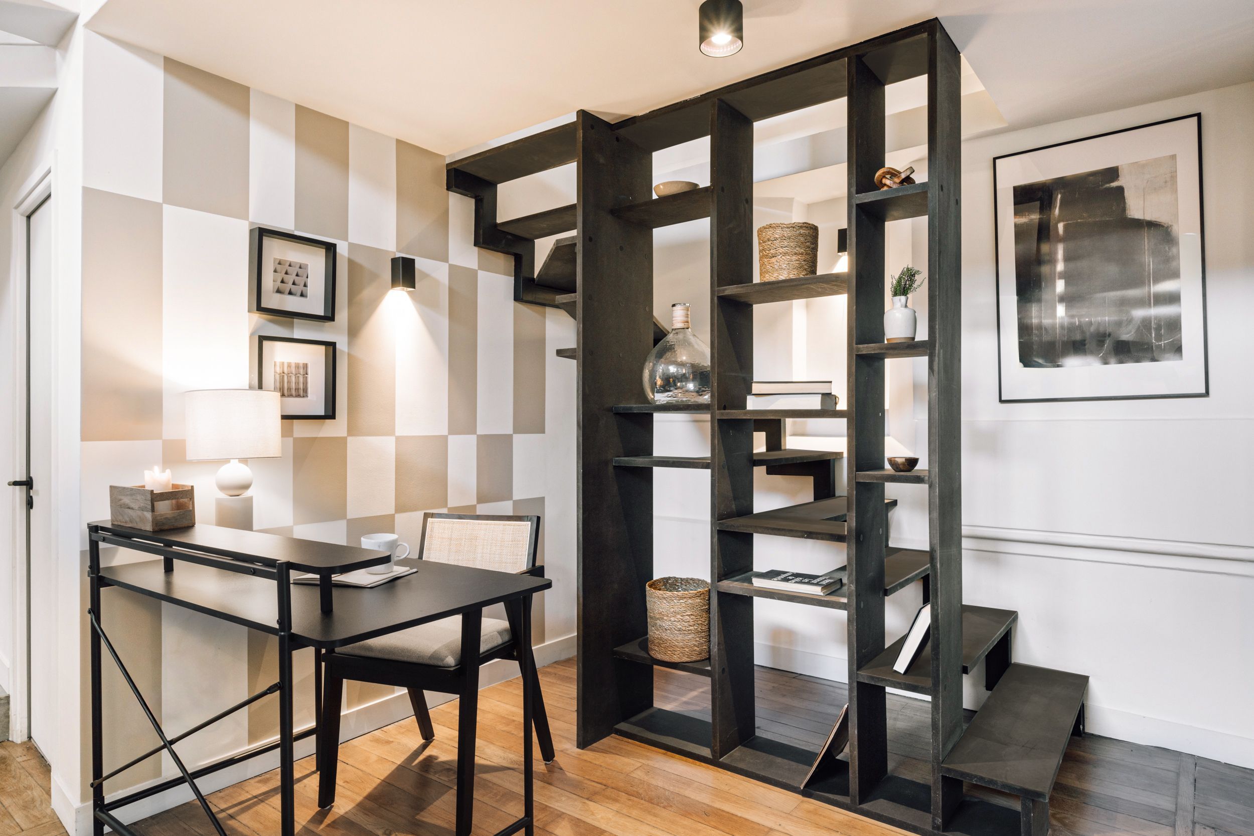 A fifteen-minute walk from Sacré-Cœur Basilica, this apartment is in the heart of Montmartre. Shops, restaurants, cafes – it's all at your fingertips here, with a metro station nearby for adventures further afield. There's plenty to enjoy back home, too. Need to work from home? You'll find two desks ideal for digital nomads. Prefer to take it slow? Lounge on the sofa while listening to an album on the record player. Topping it all off is the courtyard and small balcony, where you can nibble on brie, share a bottle of wine, and enjoy the fresh air.