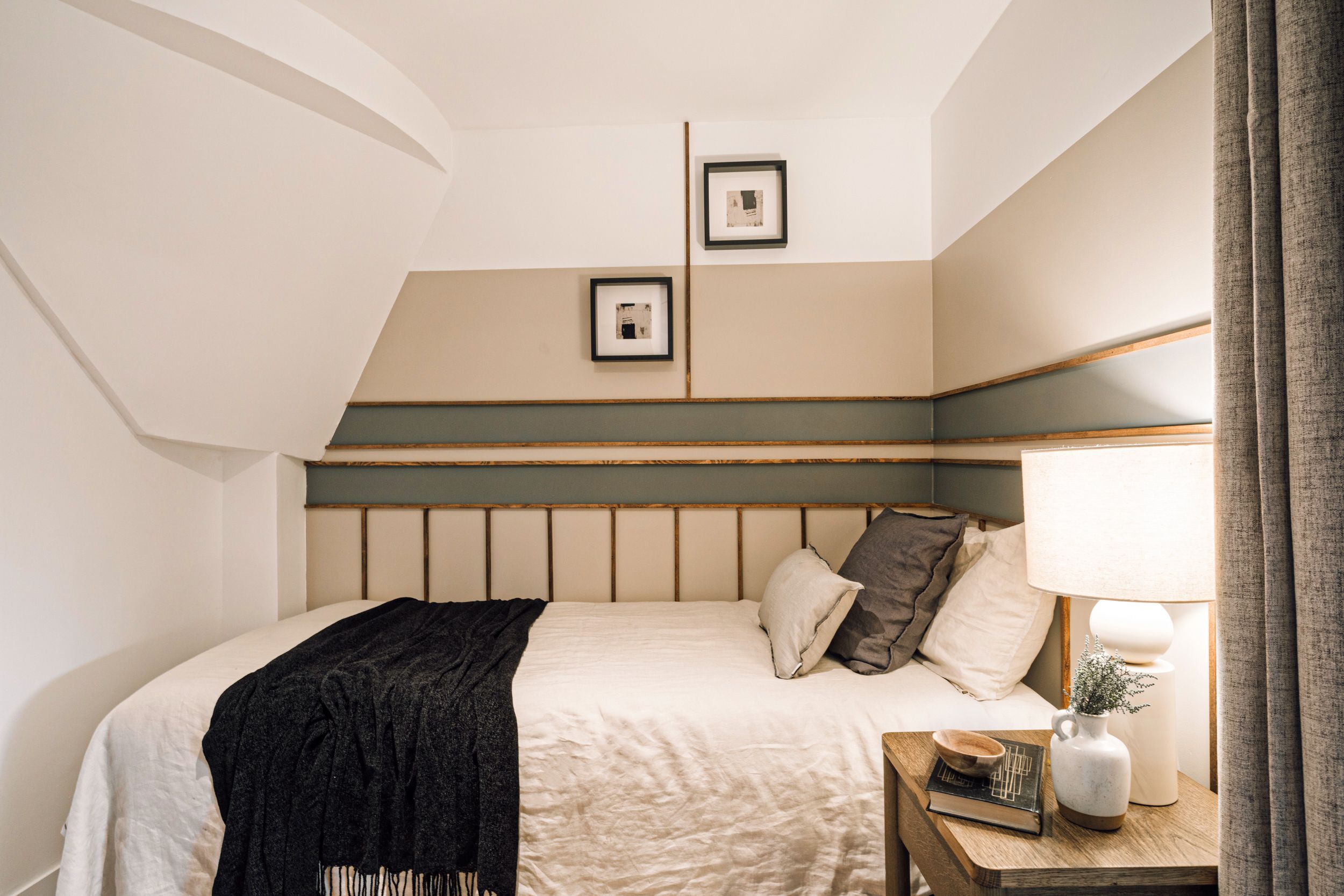 *One double bed is pushed against the wall. It's only accessible from one side.