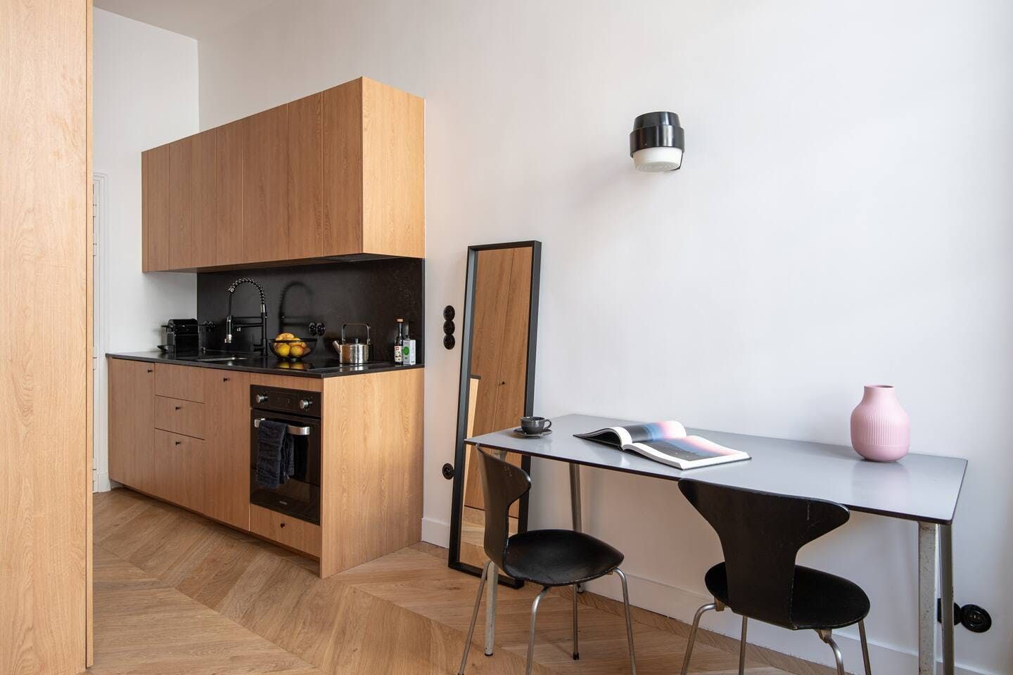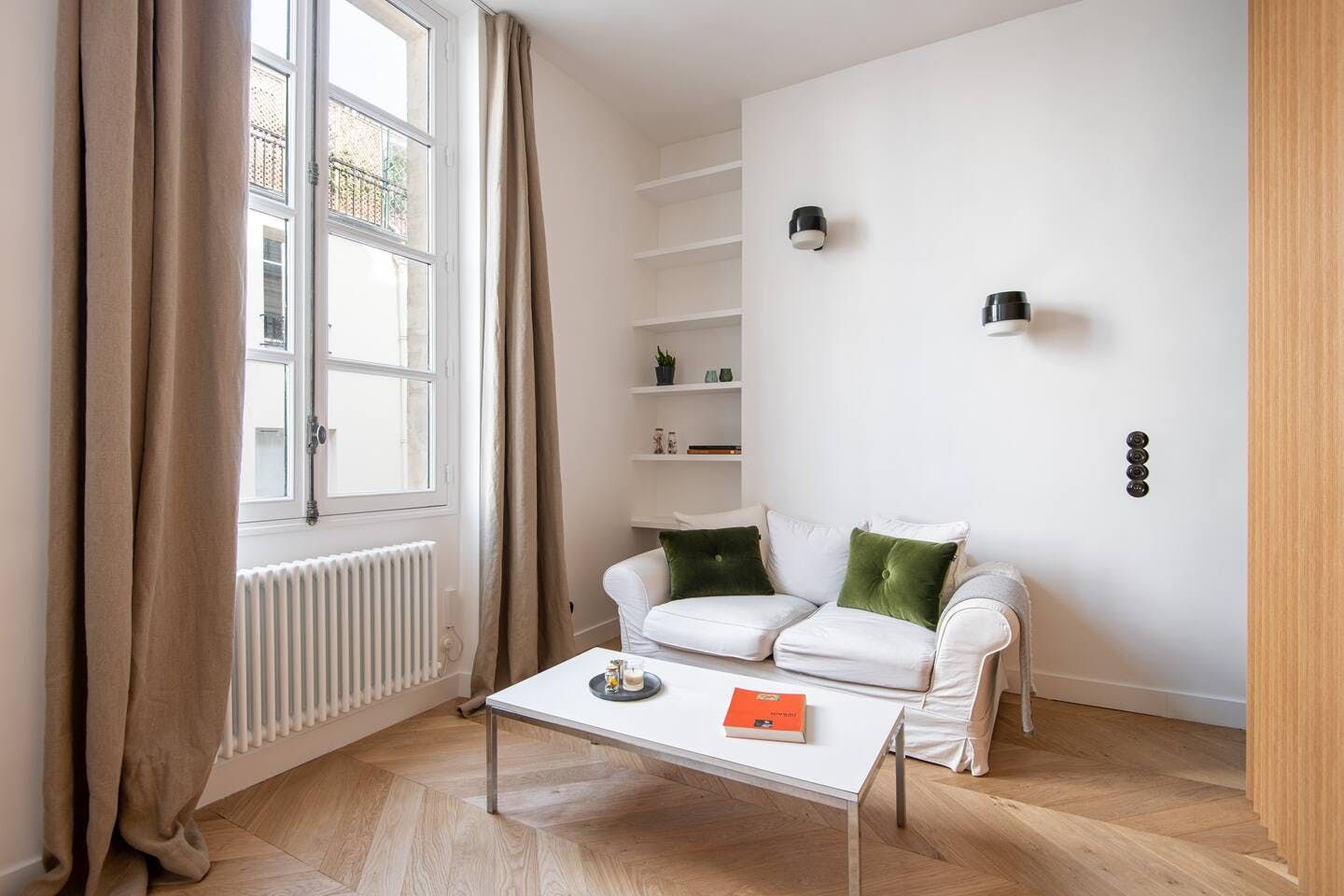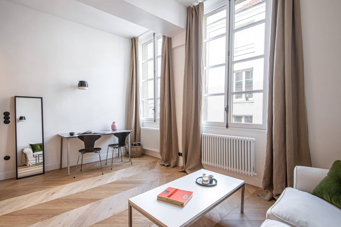 Architects have fully renovated this home – we particularly love the high-quality solid oak Versailles wooden floor. The high ceilings and huge solid oak east and west facing windows allow light to flood in. Whether you're a couple looking for a romantic break or you're here on business, this apartment is the ideal Paris pad.