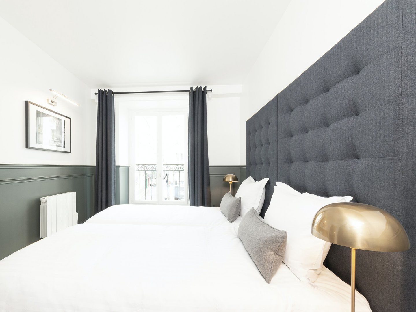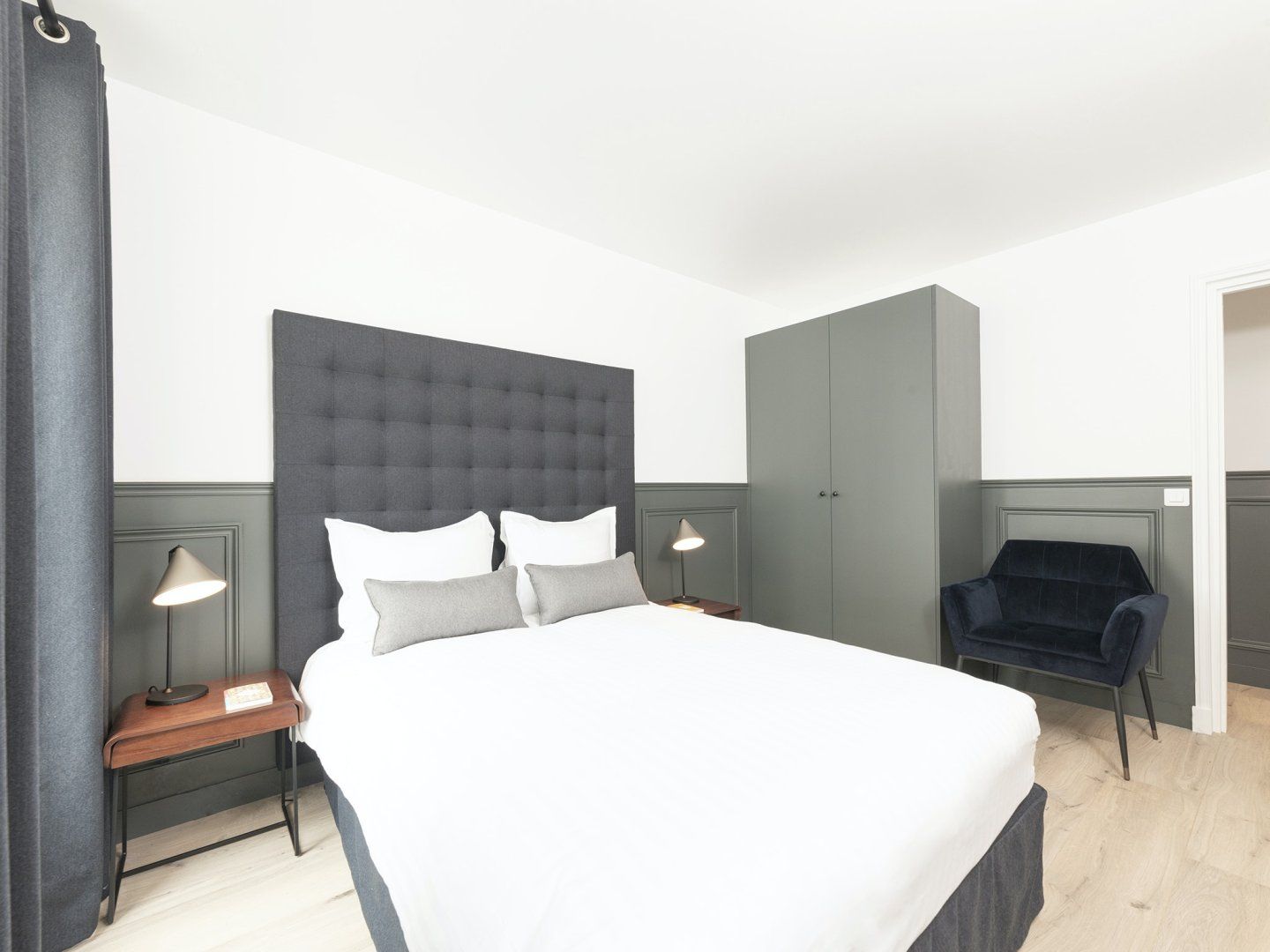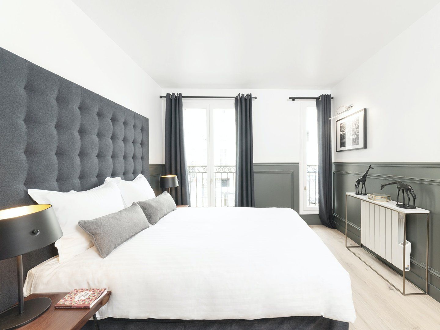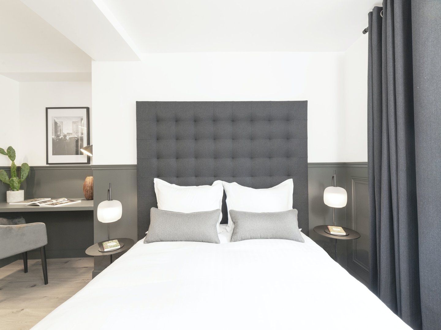 This swish apartment, located in Le Marais, is the definition of contemporary Parisian living. Step through the front door, and you'll find a charming space with wooden floors, chic grey sofas and a collection of black and white photography on the walls. The open-plan layout makes it easy to socialise with your guests as you cook – perhaps you'd like to try some French classics like coq au vin, or simply open a bottle of wine and arrange a charcuterie board of delicious cheeses. The long dining table has space for everyone to gather, while the breakfast bar is ideal for a quick morning coffee before heading out to explore. The surrounding area is well-known for its charming cobbled streets and bohemian atmosphere – you'll find a range of independent boutiques, local restaurants and historic buildings right on your doorstep. And, with the Musée des Arts et Métiers just two minutes away, and the Pompidou Centre fifteen minutes away, art lovers will love this location.