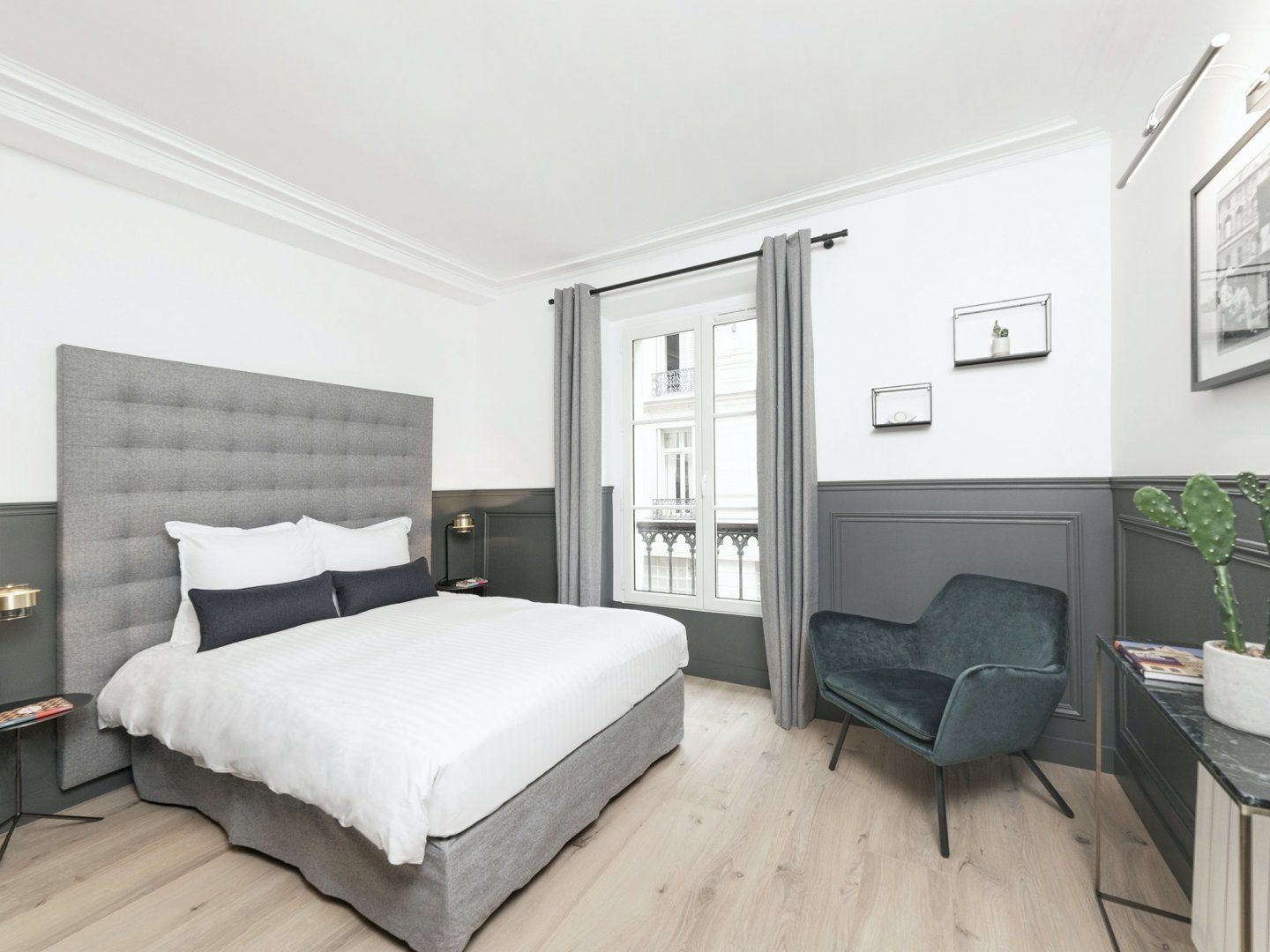 Live like a Parisian in this chic apartment, located close to the Jardin du Palais Royal. This home has the air of understated glamour that you'd expect, thanks to its sophisticated grey colour scheme and carefully curated selection of black and white photography on the walls. There's plenty of space to relax with your fellow guests, cook up your favourite dishes and come together at the dining table to share a tasty homemade meal. You'll also love the tall windows which flood the living area with natural light and invite you to admire the bustling street scenes below. When it comes to ticking off your sightseeing list, you're in the perfect location to visit some of the most iconic landmarks. The Louvre Museum is just a seven-minute walk away, while the Palais Garnier, the iconic opera house, is twelve minutes away on foot. And, if you want to travel to other parts of the city, the Pyramides métro station is just four minutes away, ready to whisk you across Paris.