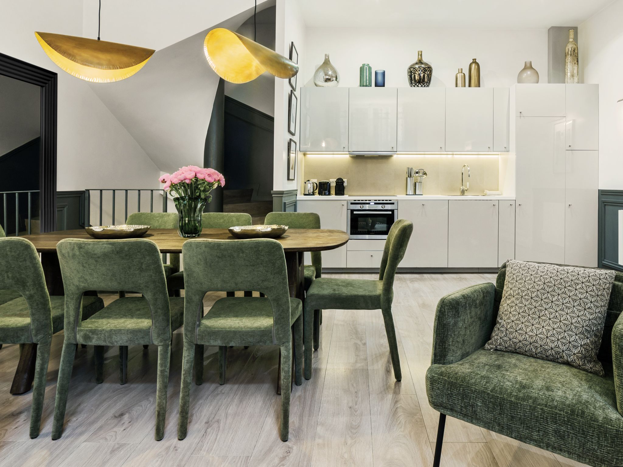 Understated yet chic, with just a hint of glamour – this home is the perfect reflection of Parisian style. Push open the door, and you'll find an open-plan living, dining and kitchen area, set up to enable guests to mingle and chat as they eat and cook. You'll love opening up a bottle of pinot noir and admiring the collection of black and white photography before getting comfortable on the sofa to plan your itinerary. The surrounding area is full of life, with Canal Saint-Martin less than a minute away – stroll along the waterway, and stop off at some of the independent coffee shops and bars on the way. It's far enough away from the tourist traps to feel authentic, but still within easy reach of the city's main landmarks. An eight-minute walk will take you to the famous Place de la République, and if you want to visit some of the iconic museums and galleries then Jacques Bonsergent métro station is just three minutes away. And, if you're arriving by train, then both the Gare du Nord and the Gare de l'Est are within a fifteen-minute walk from your new home.