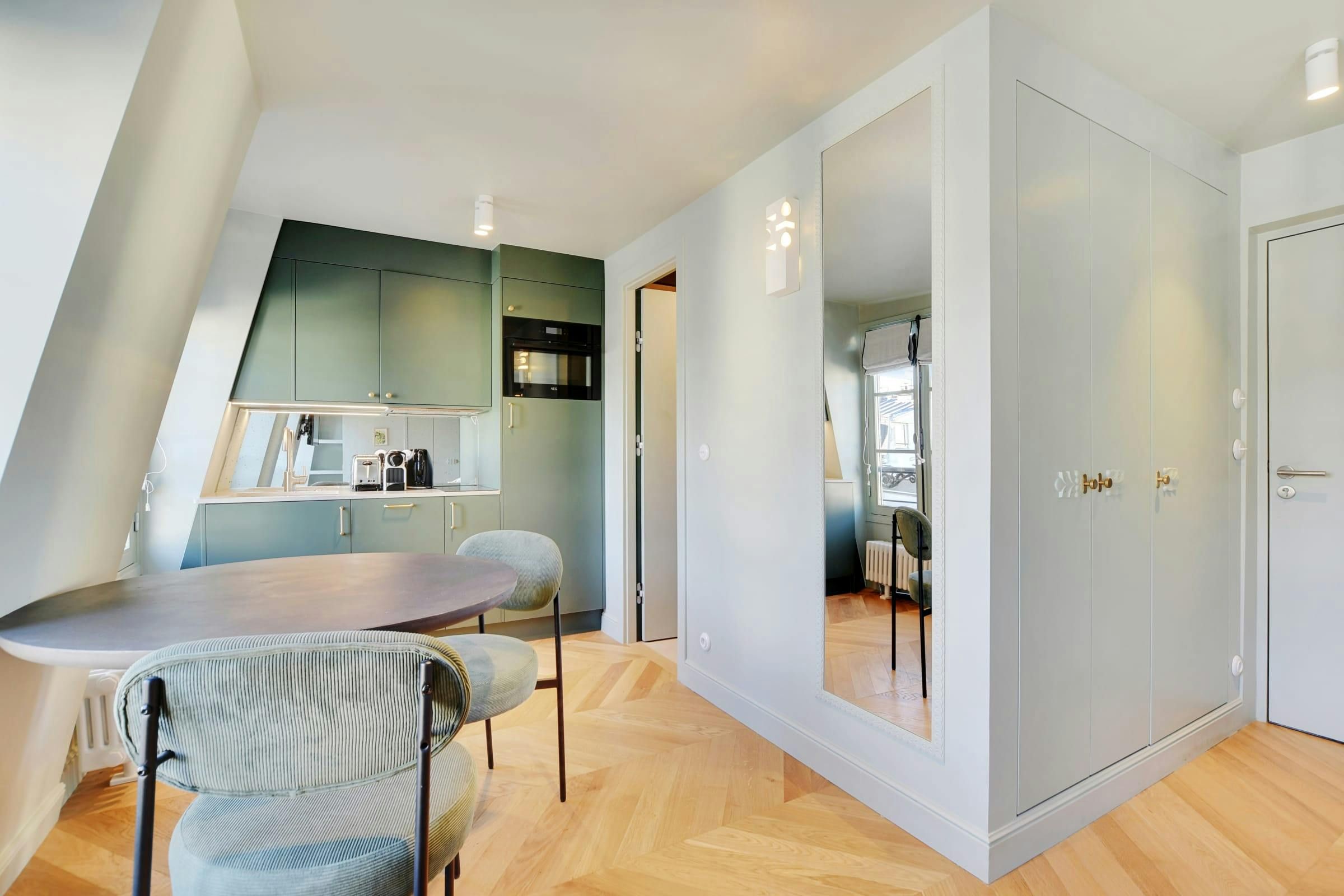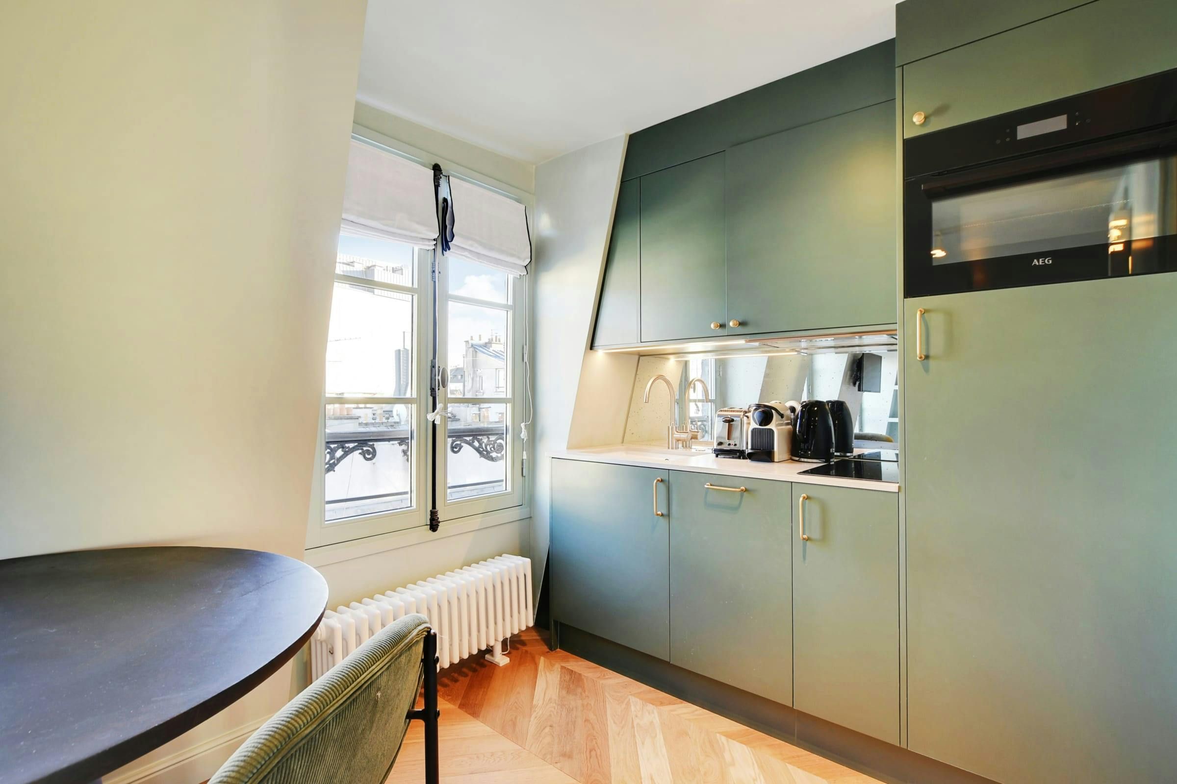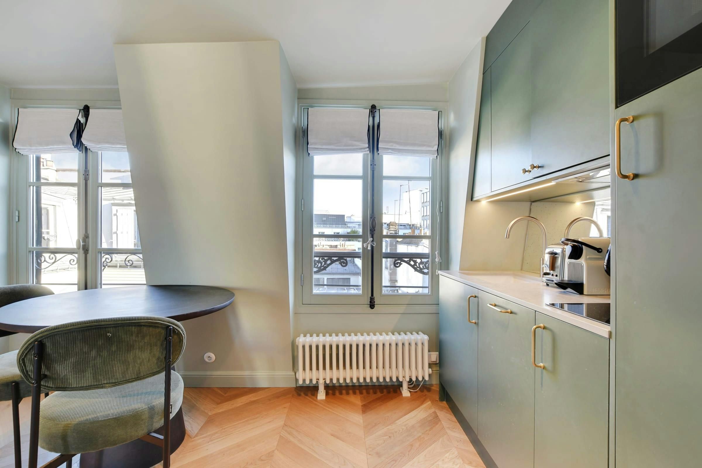 With a fantastic location, this studio apartment is just a short stroll from the Canal Saint-Martin and Place de la République. Cultural highlights such as the Musée National Picasso-Paris, the Pompidou Centre and the Musée des Arts et Métiers are also reachable on foot. The area also features a variety of shops, cafes, and restaurants, making it convenient for your stay, especially since this studio has a compact kitchenette. It has most things you need, though, for cooking some French cuisine. This home offers a comfortable stay in the City of Light.