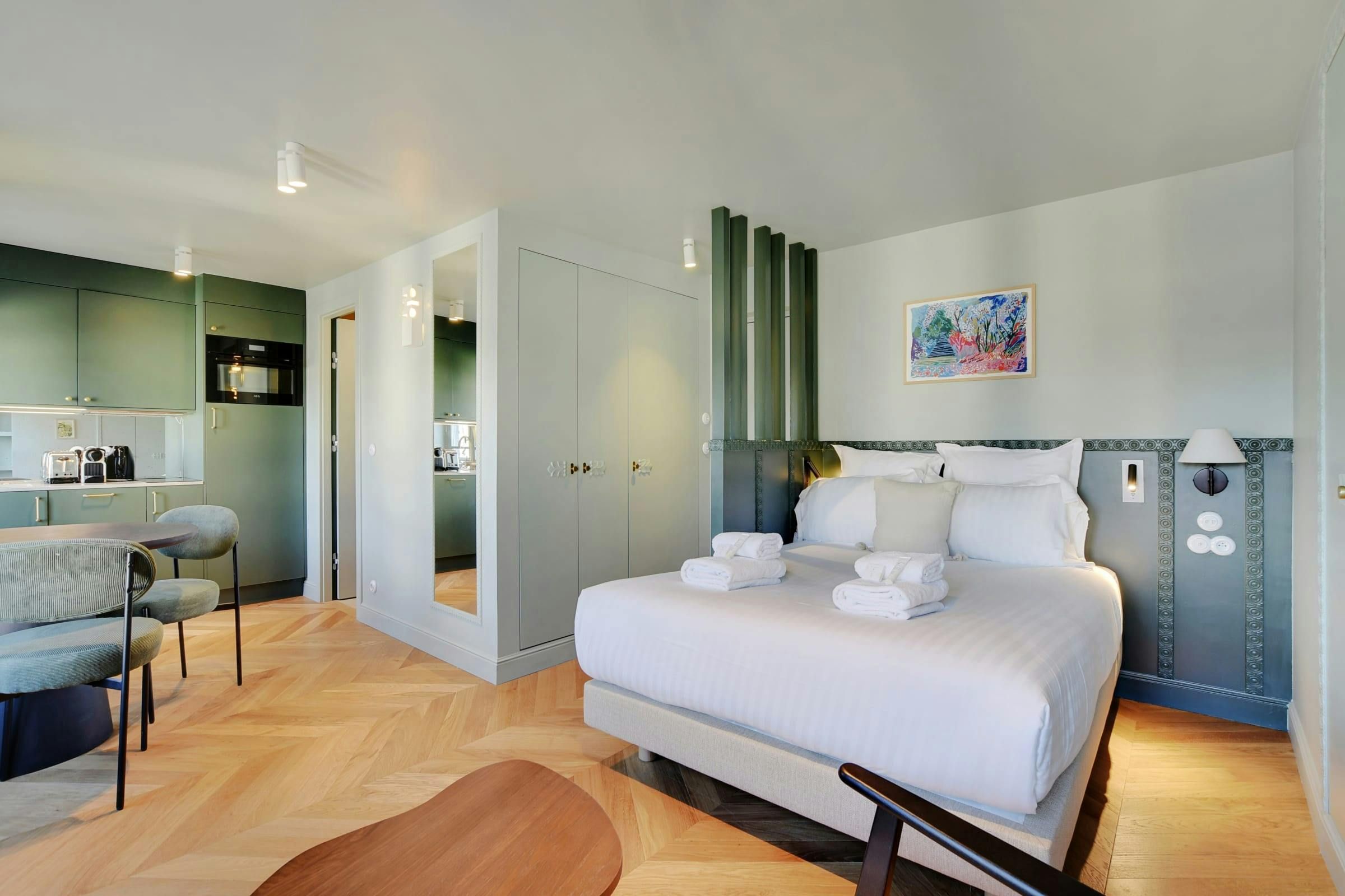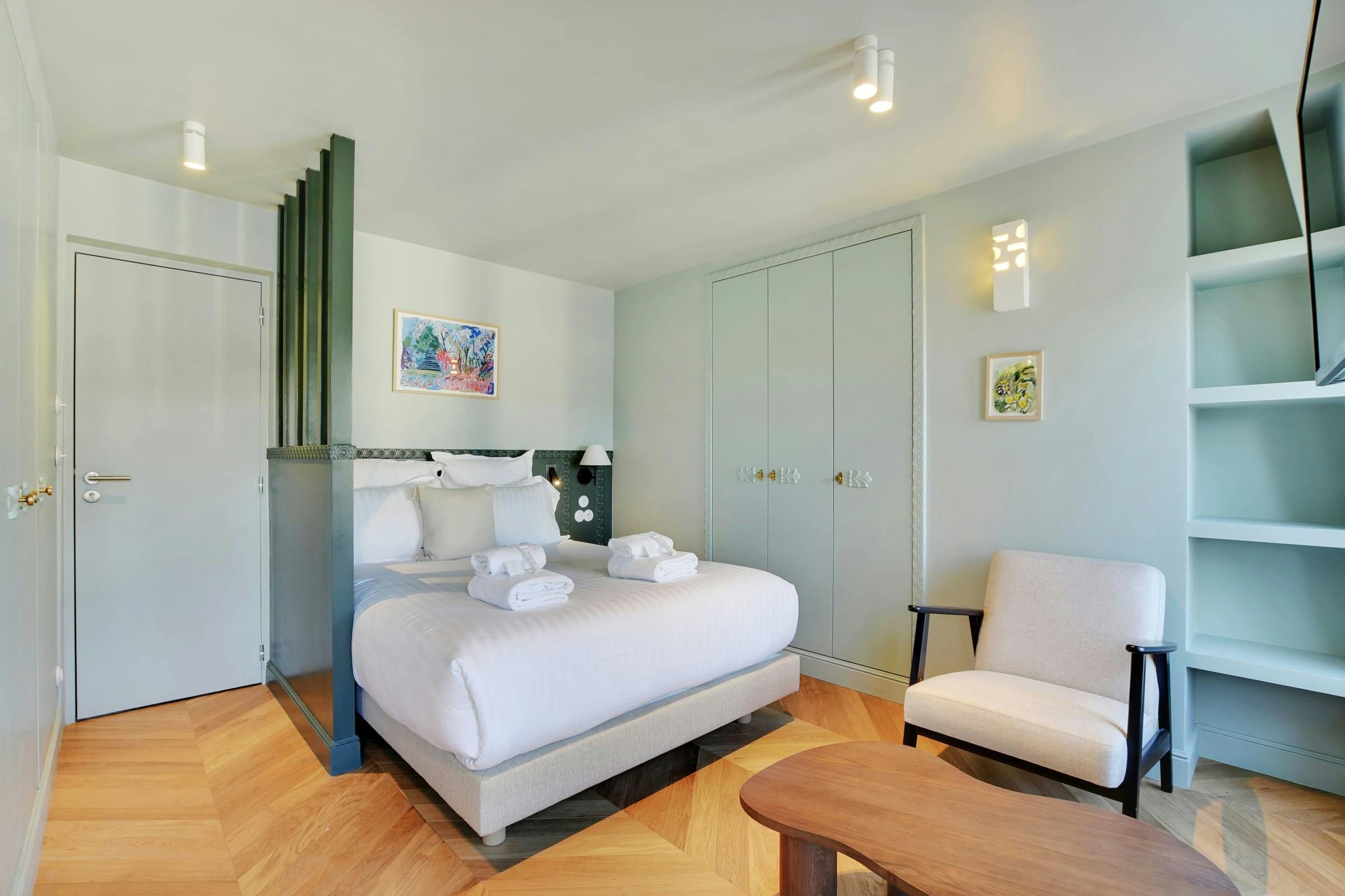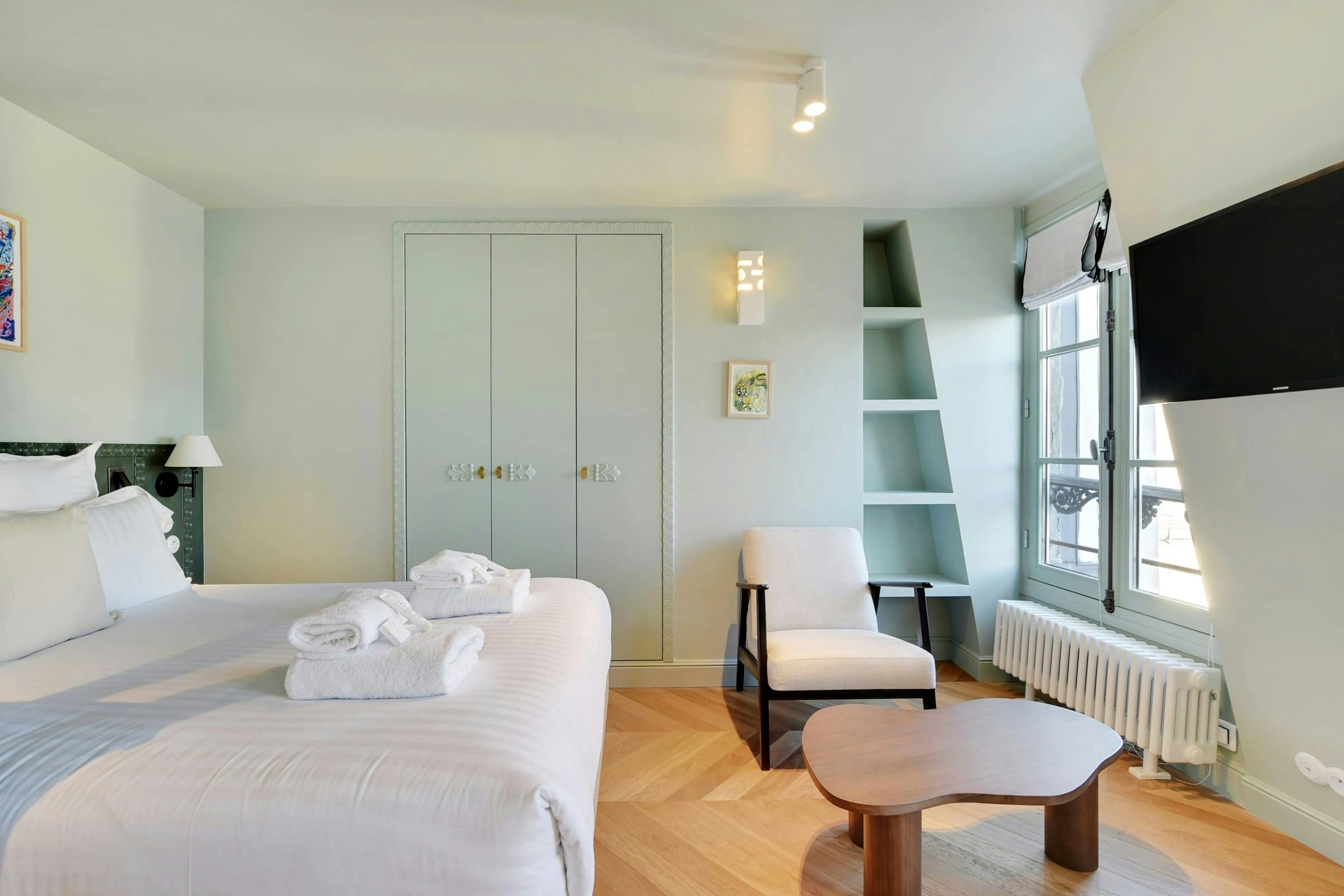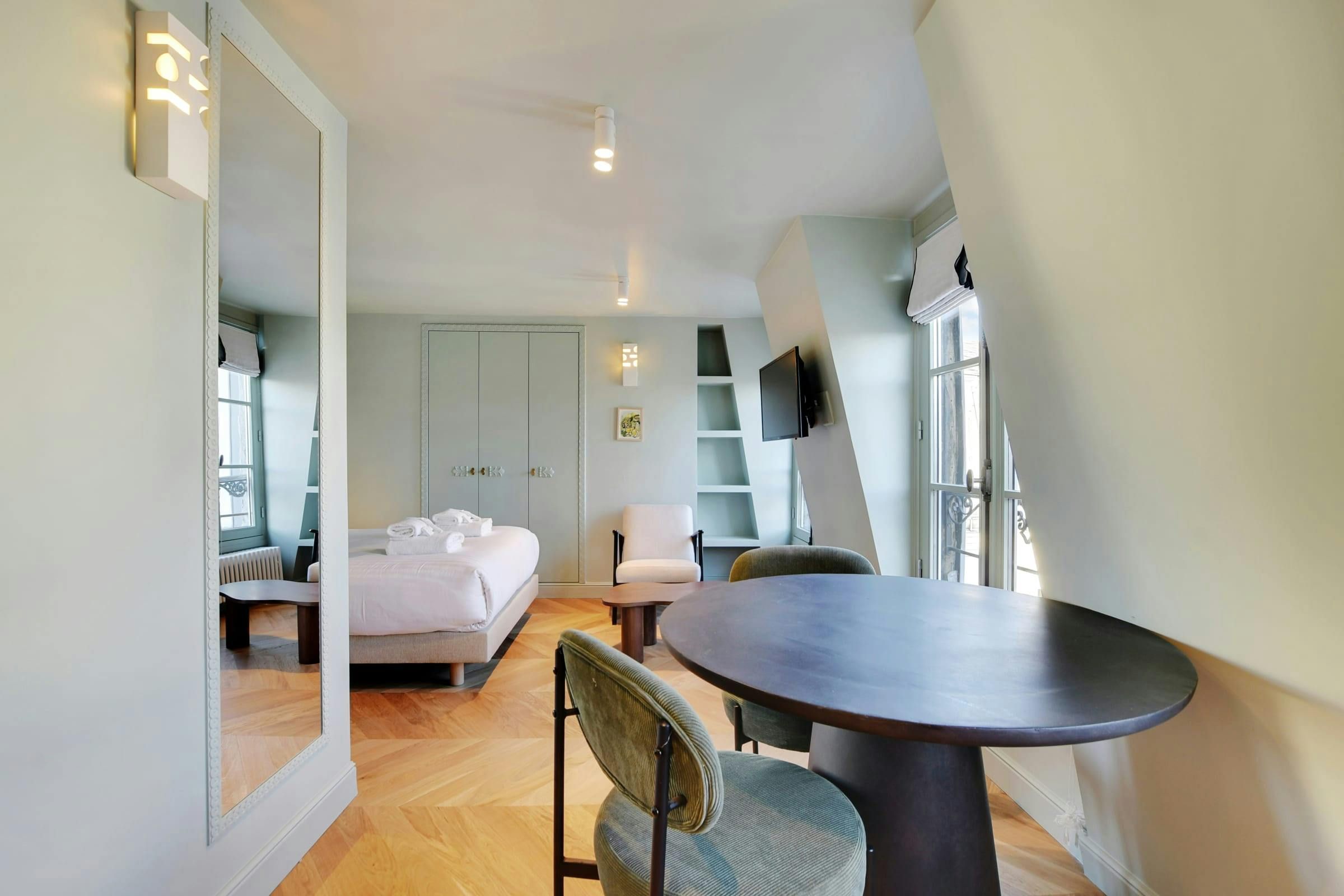With a fantastic location, this studio apartment is just a short stroll from the Canal Saint-Martin and Place de la République. Cultural highlights such as the Musée National Picasso-Paris, the Pompidou Centre and the Musée des Arts et Métiers are also reachable on foot. The area also features a variety of shops, cafes, and restaurants, making it convenient for your stay, especially since this studio has a compact kitchenette. It has most things you need, though, for cooking some French cuisine. This home offers a comfortable stay in the City of Light.