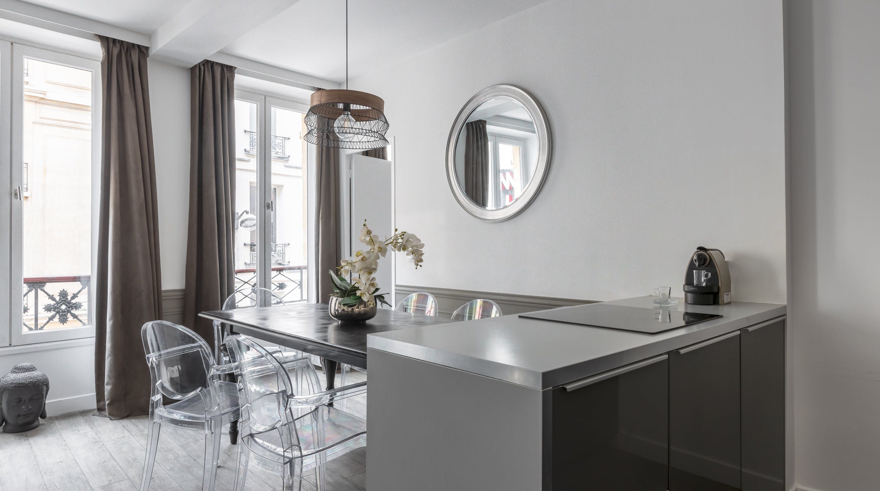 Live like a 1930s Parisian movie star in this chic, monochrome apartment. The sleek grey, black and white motif is as though someone has applied and black and white filter to the apartment. And there’s a sense of grandeur too with floor to ceiling French windows swathed with thick curtains and a chandelier above the dining table. The kitchen is pure modernity and there’s a little selection of guidebooks and cookbooks in the wall press, adding a homely touch. But the best thing about this apartment is the location. In the second Arrondissement, near the Gare de L’est and Gare du Nord, the streets around the apartment are home to boulangeries for morning croissants, and plenty of Parisian bistros and restaurants in the leafy boulevards. If you want to get out and explore the likes of The Louvre and Notre Dame, it’s a leisurely walk into the centre, or an easy hop on the metro from Strasbourg Saint-Denis, which is a minutes’ walk away.
