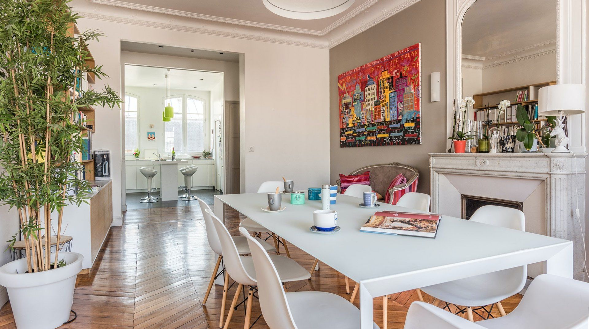 Niched within a beautiful Art Deco block in a private alley lies this four bedroom home in South Pigalle. The contemporary interior and charming children's room make this home ideally suited to a group travelling with tiny tots and there's even parking space - a rarity in Paris. A special mention goes to the spacious dining room and kitchen island perfect for evening apéritifs and culinary delights. Lovers of more minimalist living might prefer to look elsewhere as this home certainly has a lived-in feel to it.