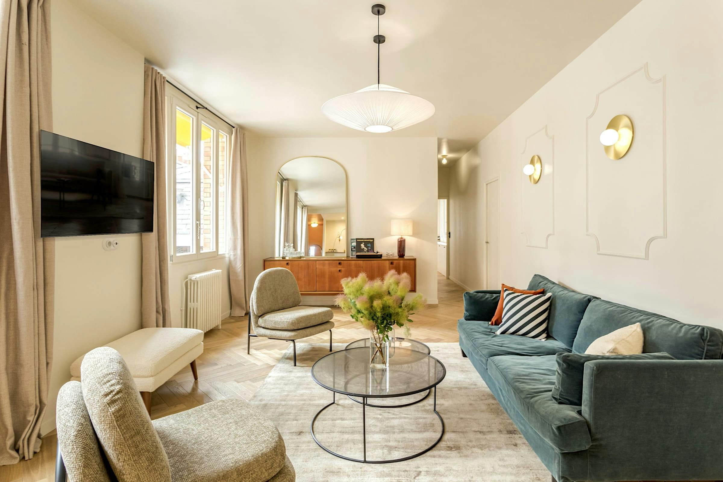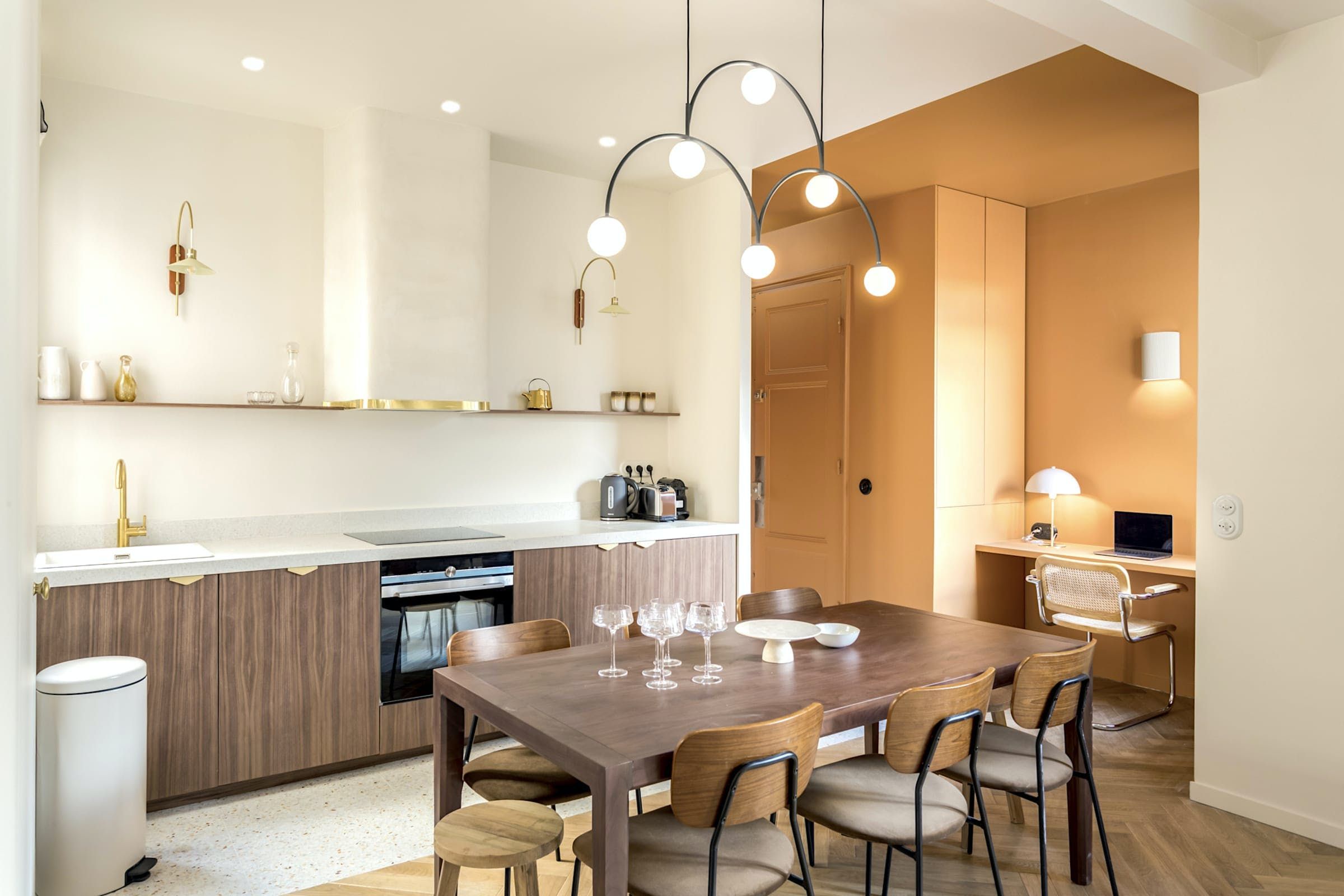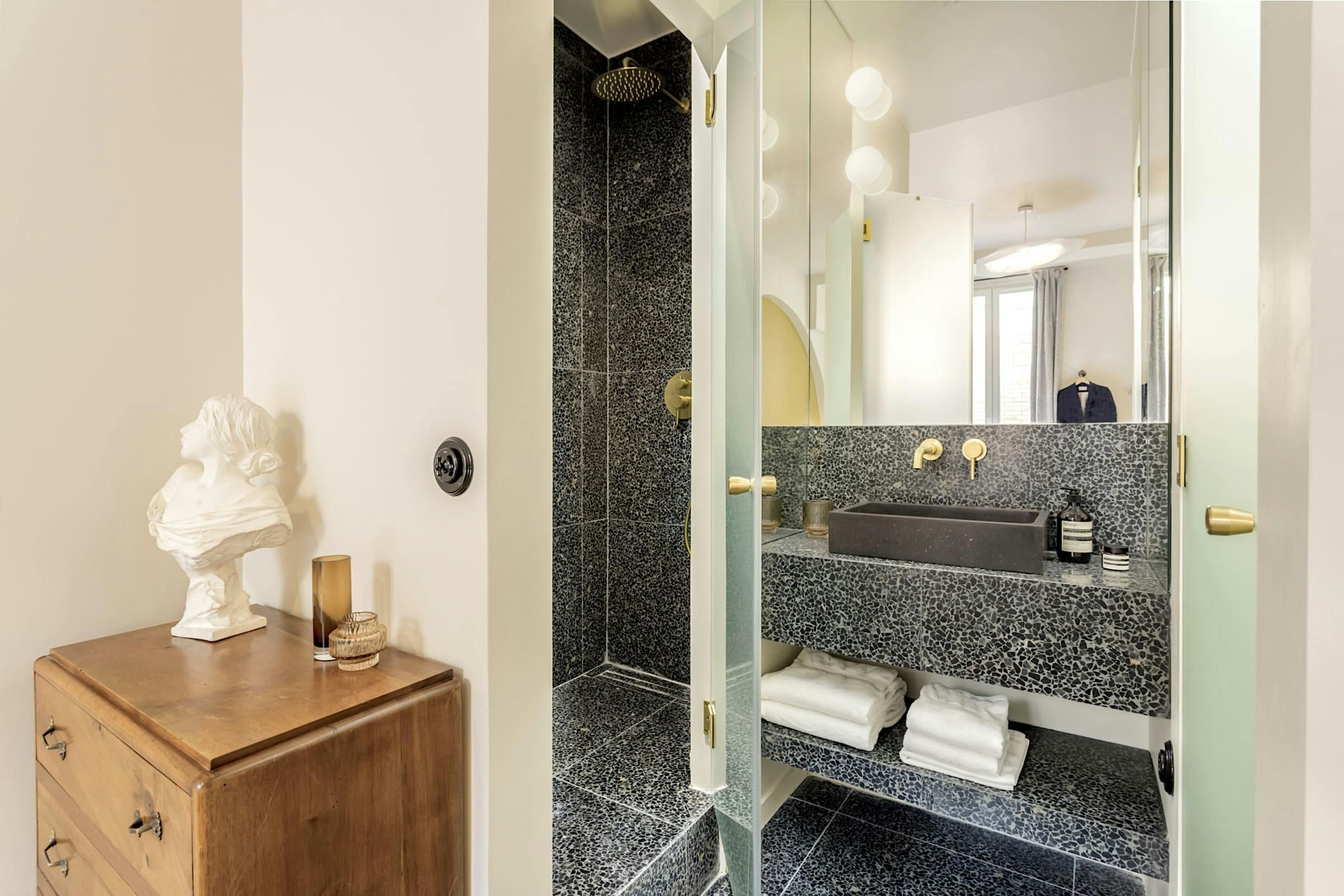 Tucked away in the 2nd arrondissement, this apartment couldn't be better placed for sightseeing. It's a short walk from Les Halles, Palais-Royal, and the Louvre, with multiple metro stations nearby to whisk you across the City of Lights. Inside, the Art Deco influence adds chic touches to the decor. Each bedroom also has an en-suite – perfect for privacy, but slightly less convenient with the sofa bed in use. There's also a desk for remote workers and a modern but somewhat small kitchen. However, with a bevvy of restaurants in the area, we reckon eating out will be hard to resist.