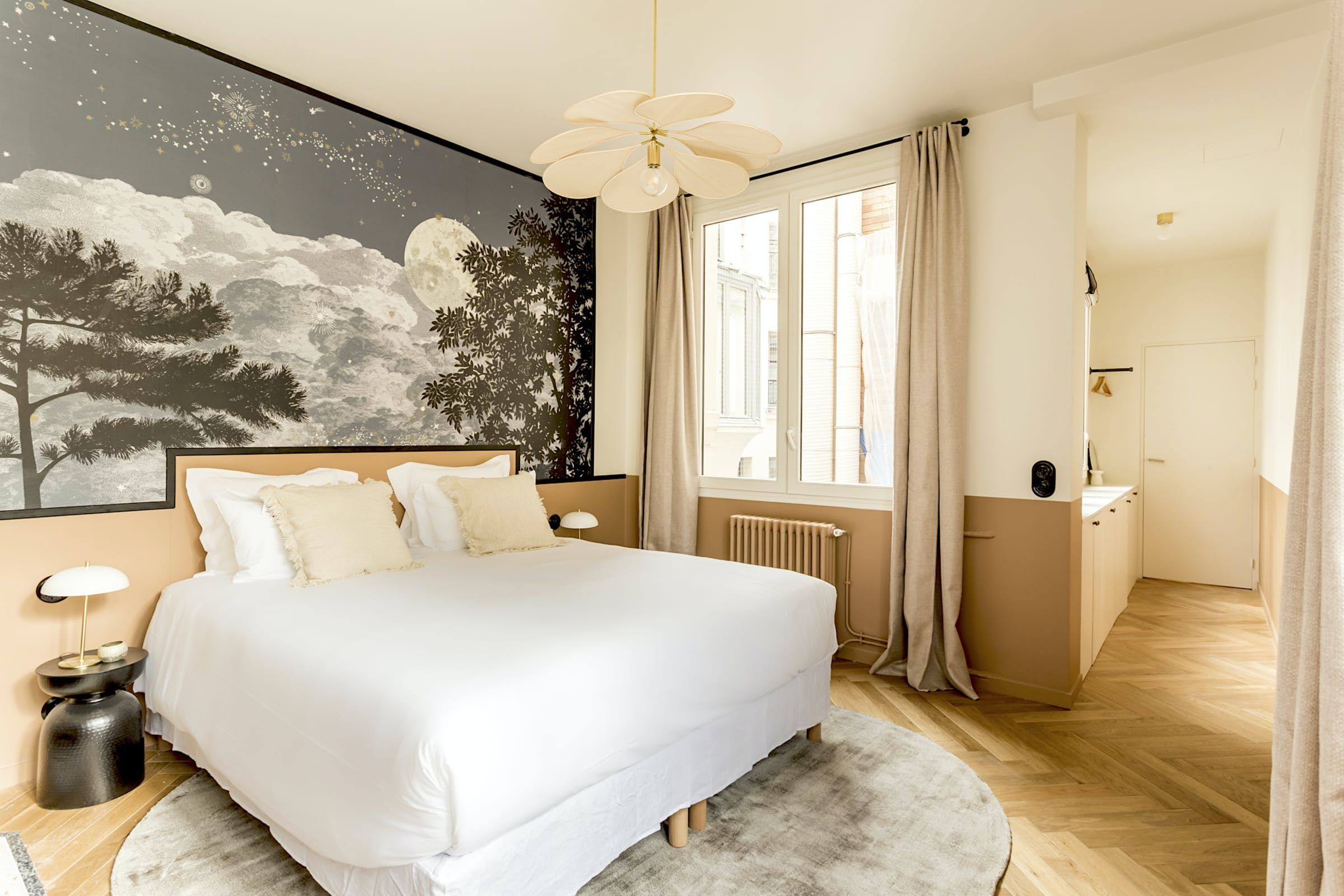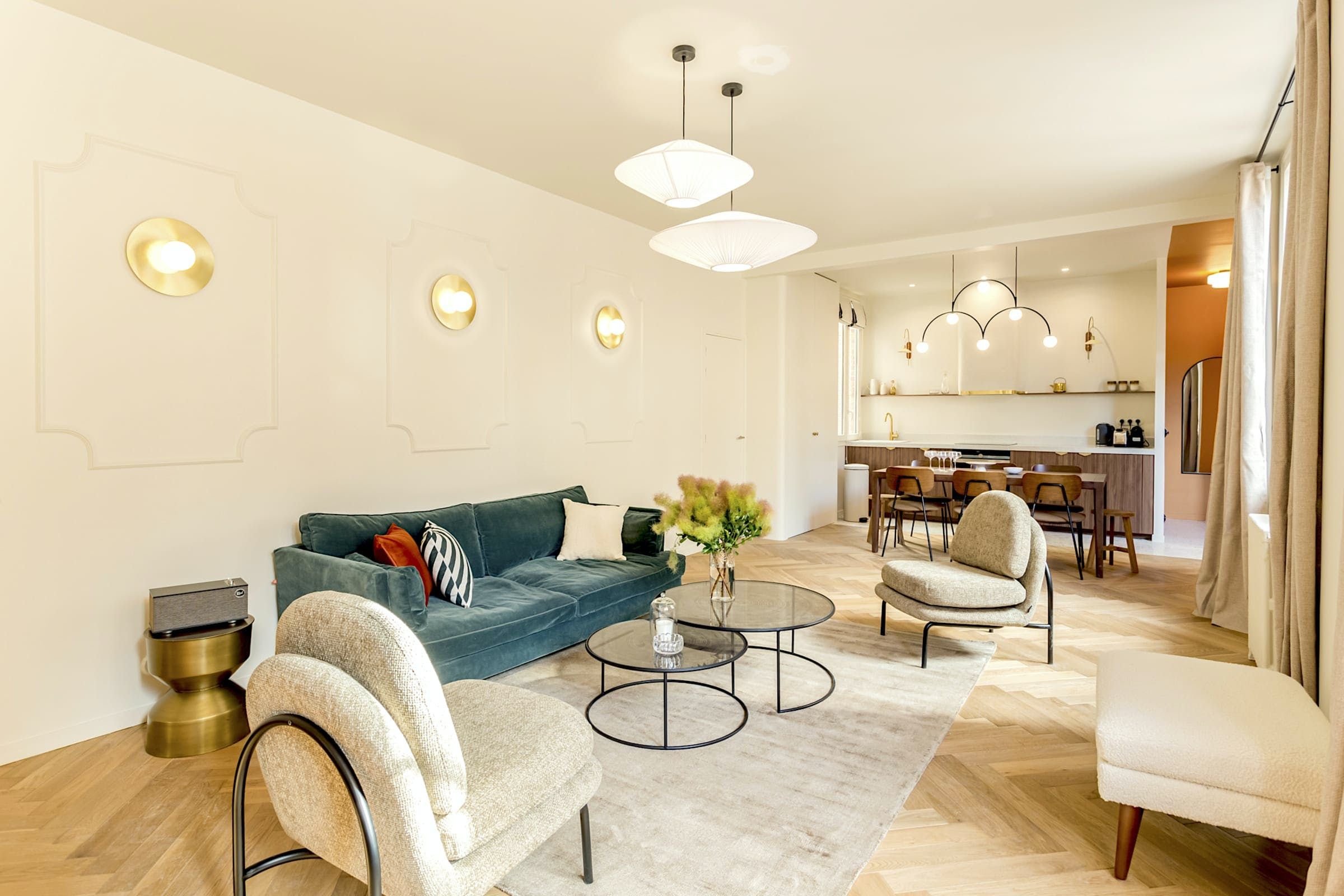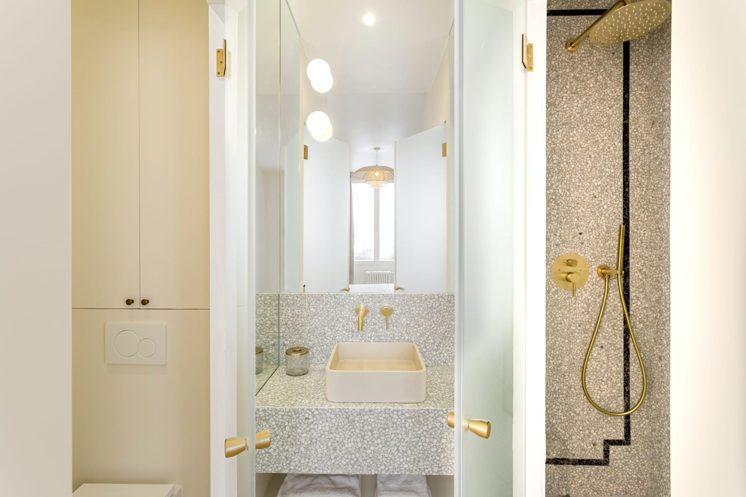 Tucked away in the 2nd arrondissement, this apartment couldn't be better placed for sightseeing. It's a short walk from Les Halles, Palais-Royal, and the Louvre, with multiple metro stations nearby to whisk you across the City of Lights. Inside, the Art Deco influence adds chic touches to the decor. Each bedroom also has an en-suite – perfect for privacy, but slightly less convenient with the sofa bed in use. There's also a desk for remote workers and a modern but somewhat small kitchen. However, with a bevvy of restaurants in the area, we reckon eating out will be hard to resist.
