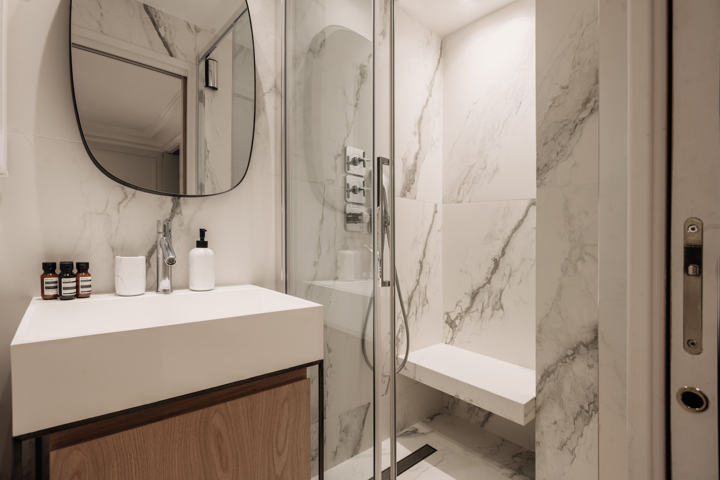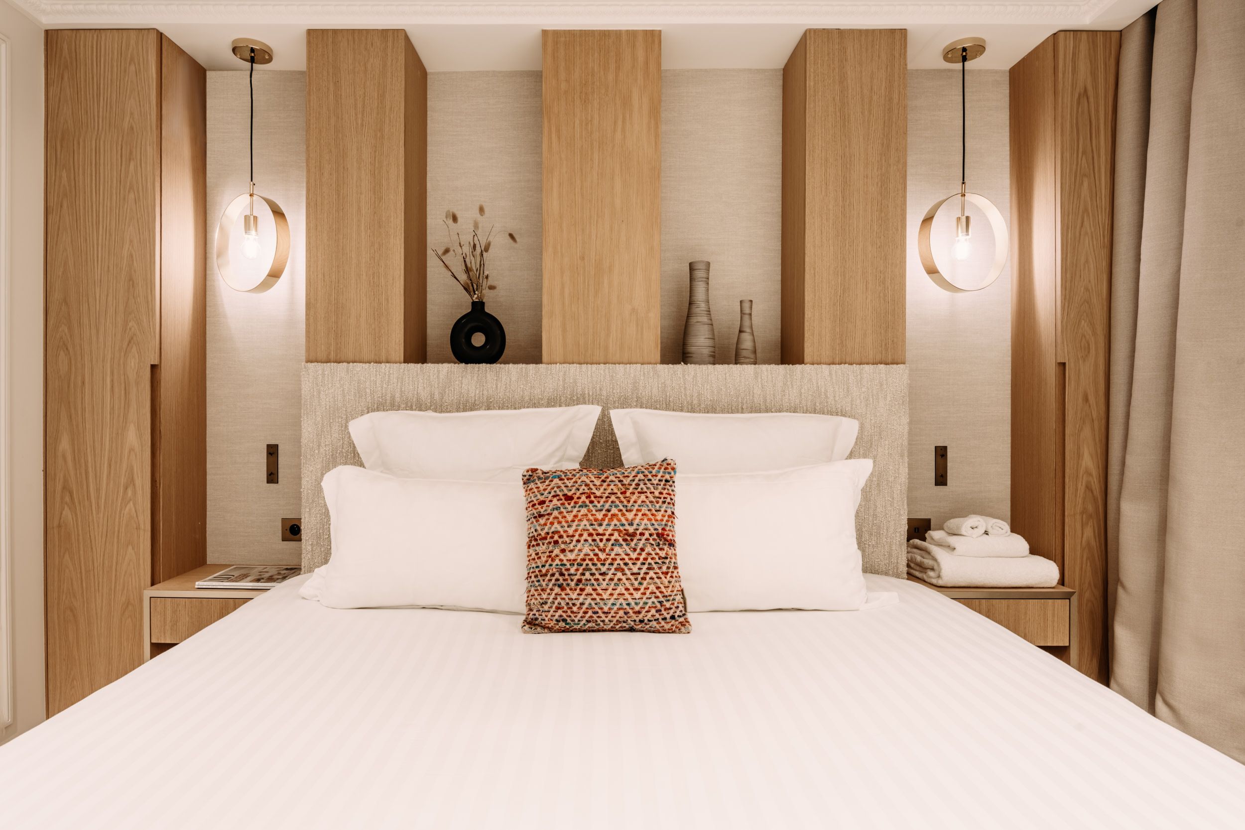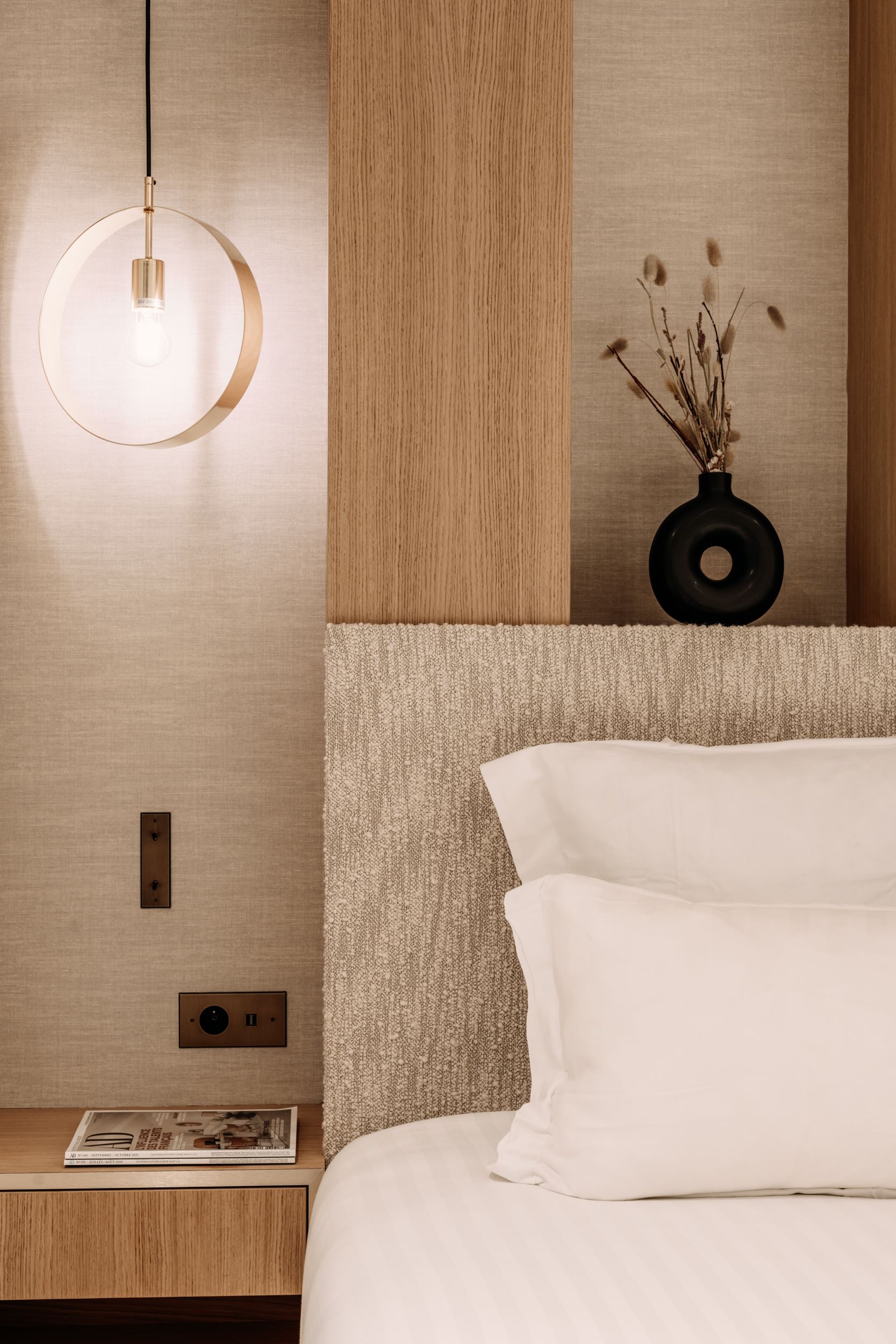 Natural light bounces off the sublime parquet wooden flooring (heated to keep things toasty in winter). Décor wizardry ramps up the luxe factor – we love the soft bronze details and wood panelling. And the soundproof windows and bedroom facing into a quiet internal courtyard keep everything subdued when it's time to bank some sleep.
