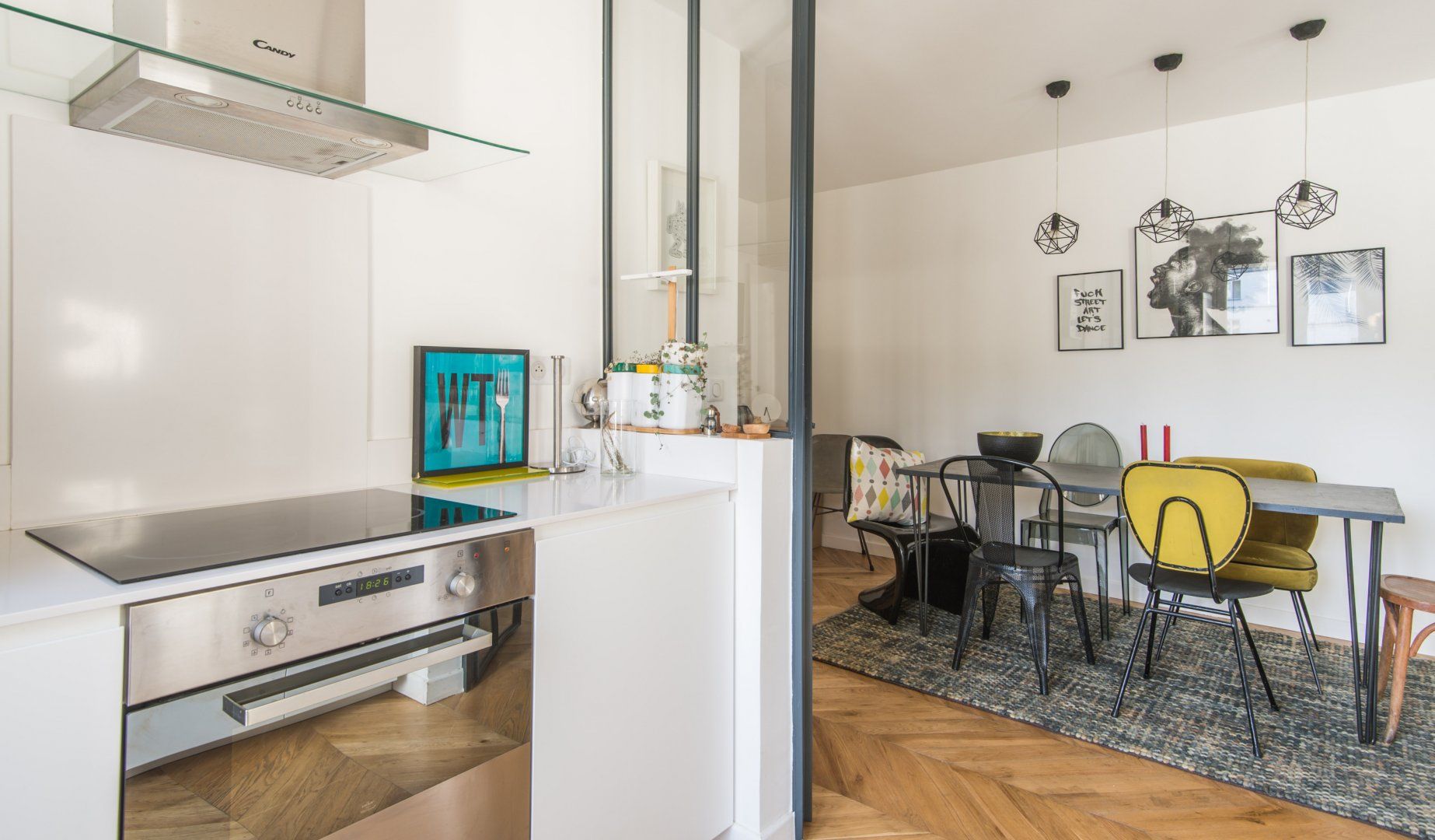 Bright, quirky and wonderfully peaceful, this apartment in Paris’ 10th arrondissement is the ideal base for a couple or solo traveller looking for a central stay away from the crowds. From its parquet floors to its large windows giving way to views over the city’s rooftops from the Juliet balconies, there’s plenty of quintessential Parisian charm here mixed with quirky design elements that give it plenty of character. We love the eclectic dining set that’s all set to host chic soirées over locally-bought wine and cheese. With the bedroom facing the building’s inner courtyard, you’ll have no trouble finding a quiet night’s sleep, so you’ll feel rested and ready for another day of sightseeing – after you’ve had your coffee and croissants in the sunny kitchen, of course. Spend your mornings taking strolls in the beautiful Parc des Buttes-Chaumont (a fifteen-minute walk) and afternoons wandering along the Canal Saint-Martin (a five-minute walk) with its romantic waterside cafés. Bohemian Montmartre is less than thirty minutes away on foot too, while both Gare de l’Est and Gare du Nord are under a ten-minute walk to whisk you away on a day trip to France’s Champagne region or to any other corner of the country.