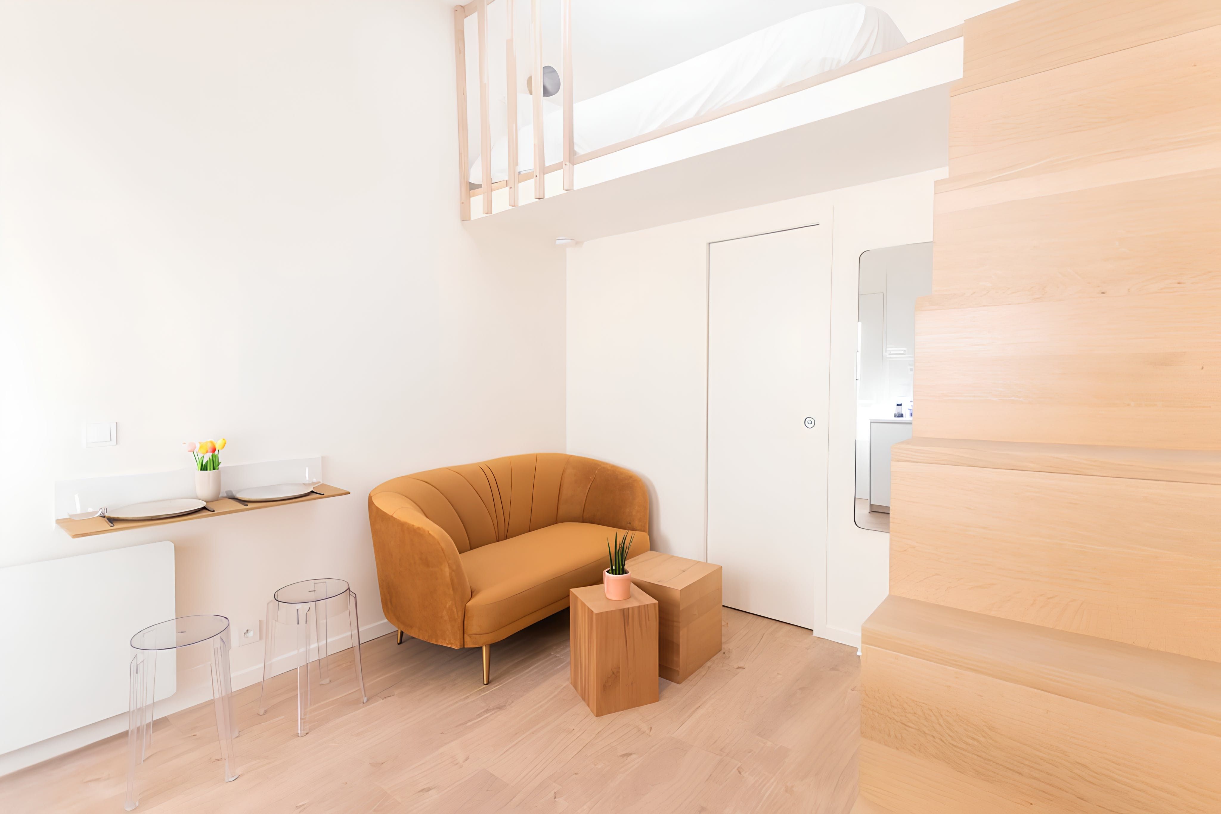 Home truths: *This home has no air conditioning, but there is heating for the cooler months. *The bedroom is on the mezzanine level and semi-open to the space below, so privacy is limited. The ceiling is also on the low side here. Since the photoshoot, the protection of the mezzanine has been extended. *Given the home's central spot, expect to hear some street noise throughout your stay. *You'll have access to the courtyard here. It's shared with the building's other residents. Smoking is not permitted in the courtyard.