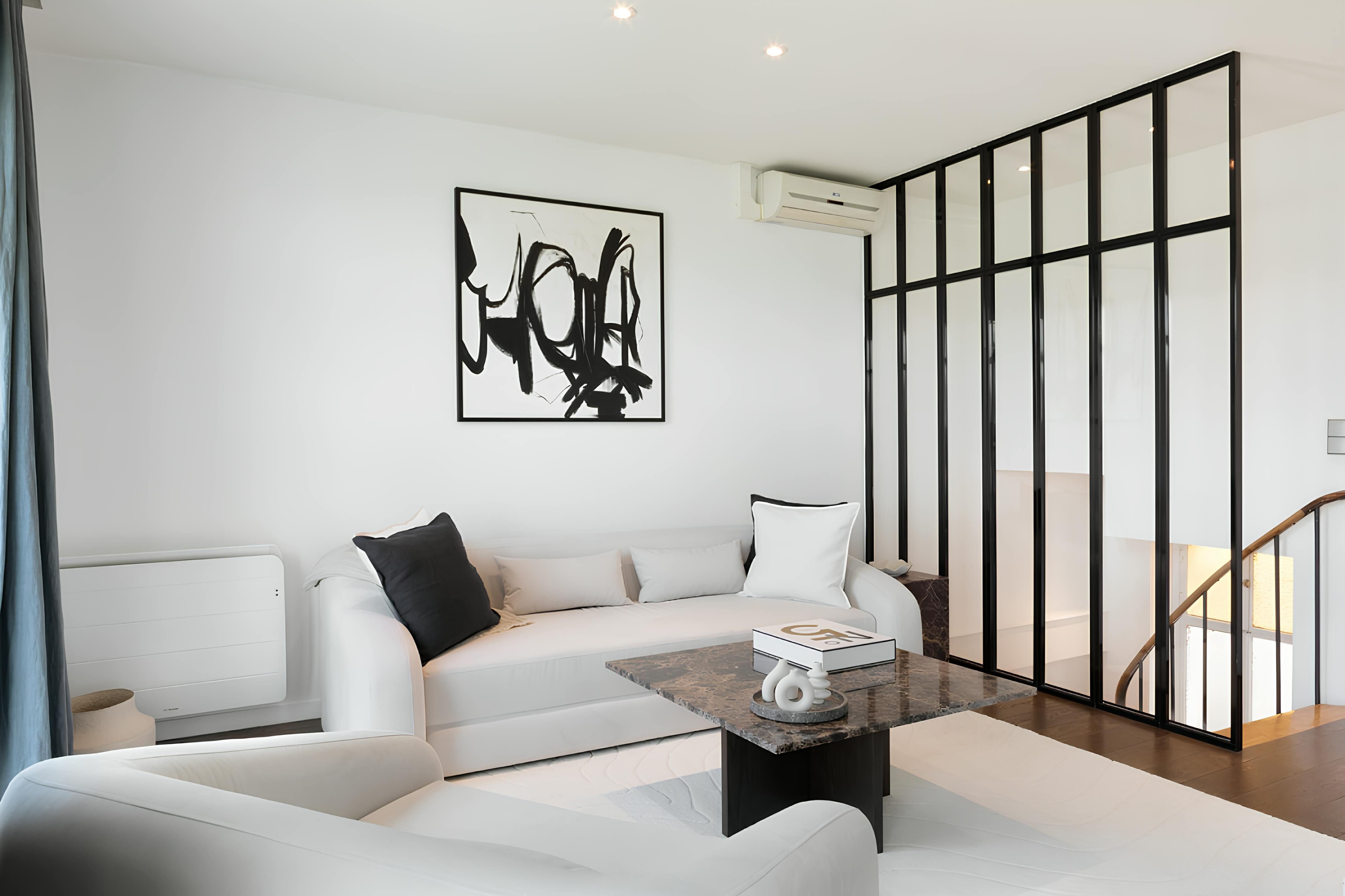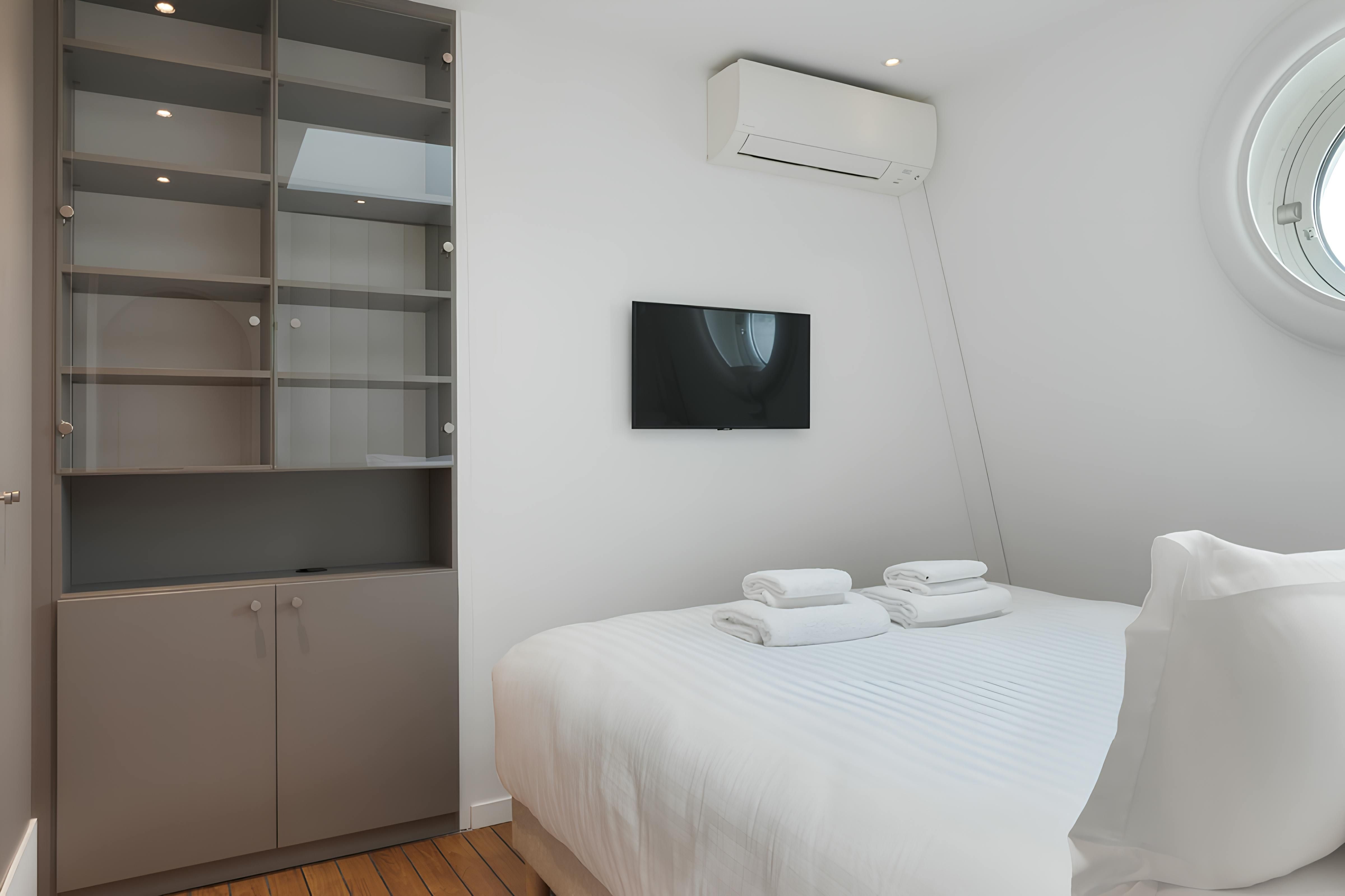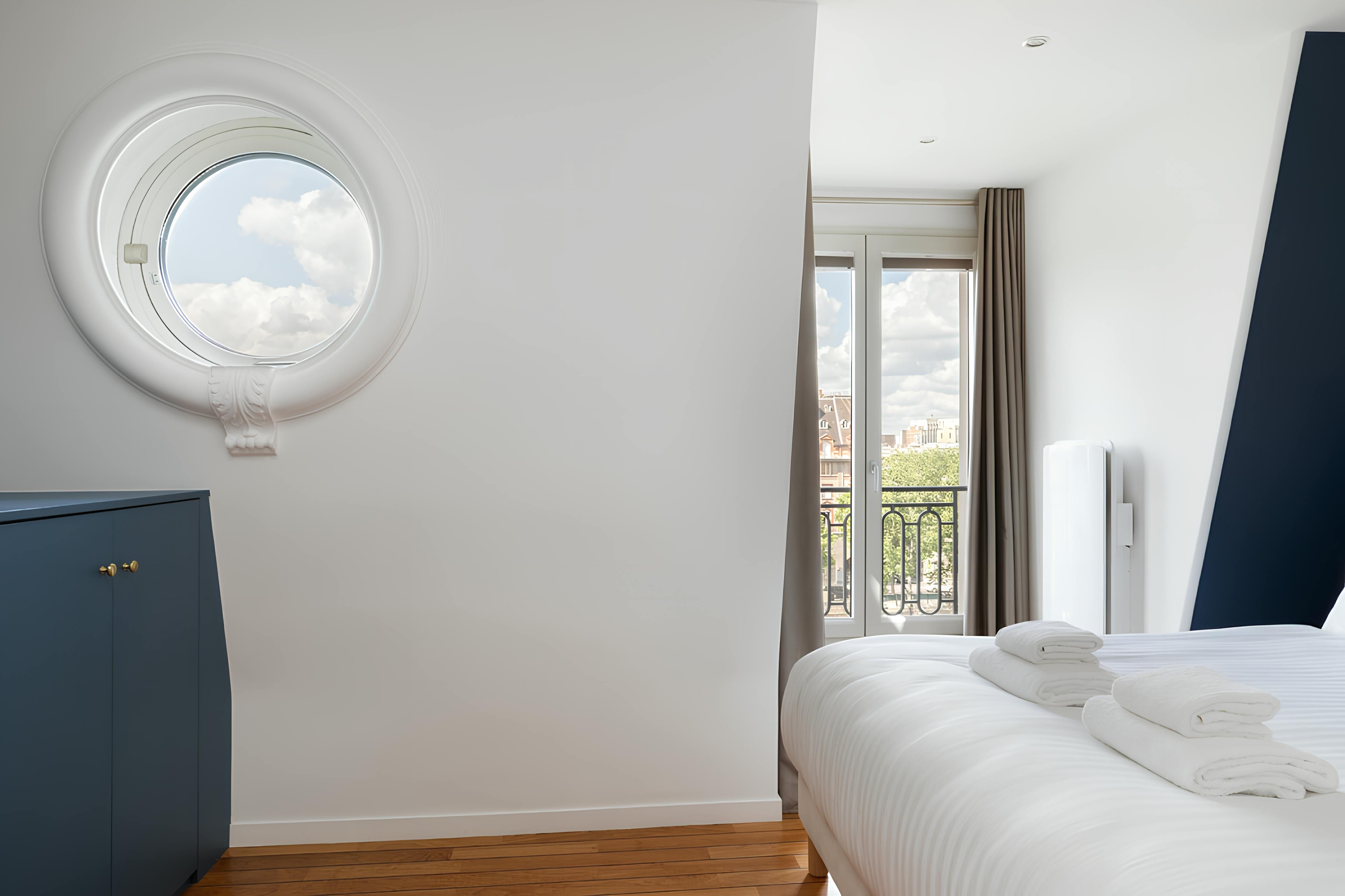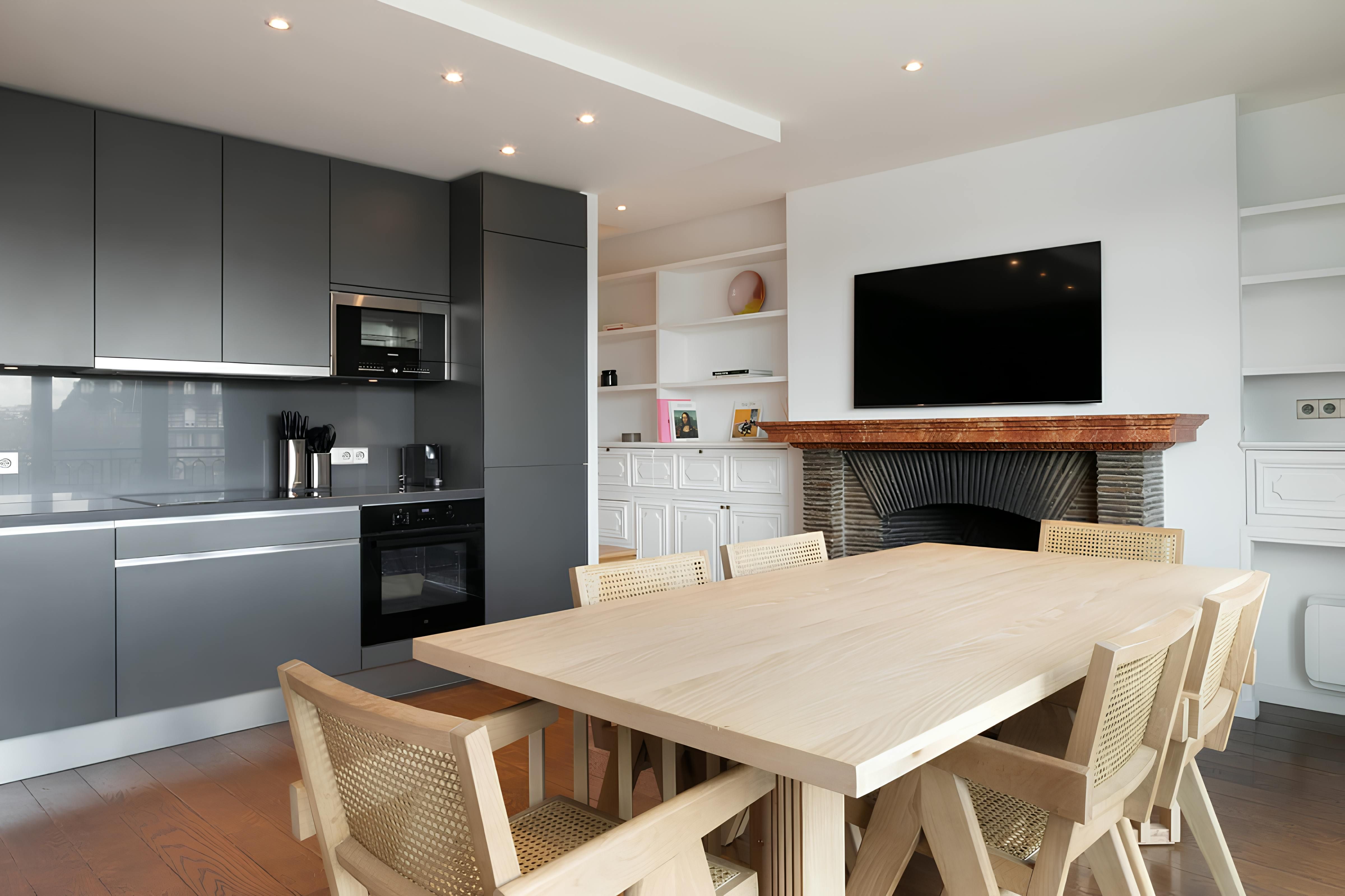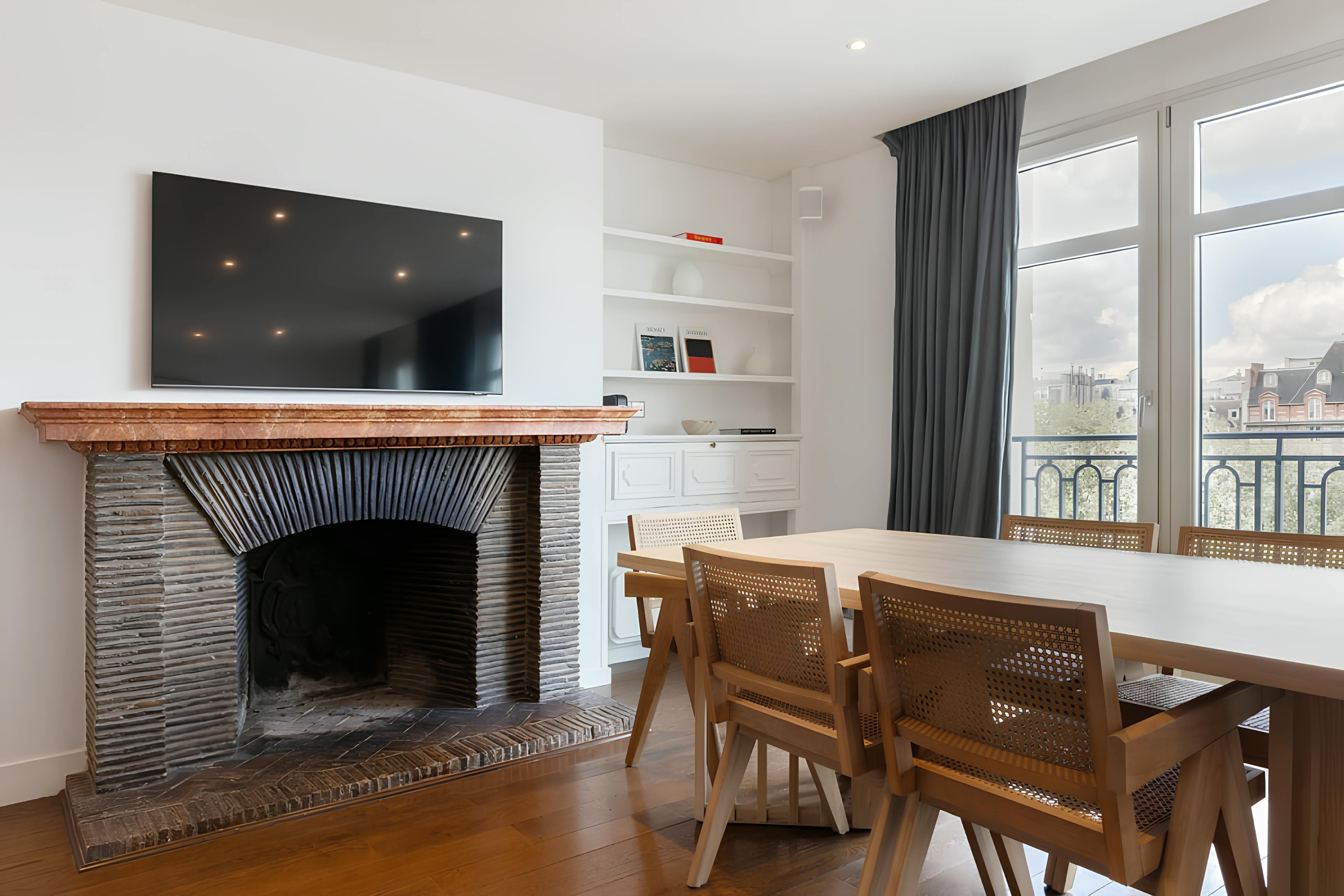 Although the location is great, we’ll start with the apartment itself – you can see why with views like this. The vistas from the balcony over the Eiffel Tower, River Seine and the Quai des Orfèvres are fantastic. The open-plan living room and main bedroom have a wonderful outlook too. Now about the location – the home is situated on the exclusive Île de la Cité, so there are plenty of riverside strolls to be had. The nearby iconic Notre-Dame de Paris is also a short walk away, while across the Pont Neuf, you’ll find the Louvre Museum.