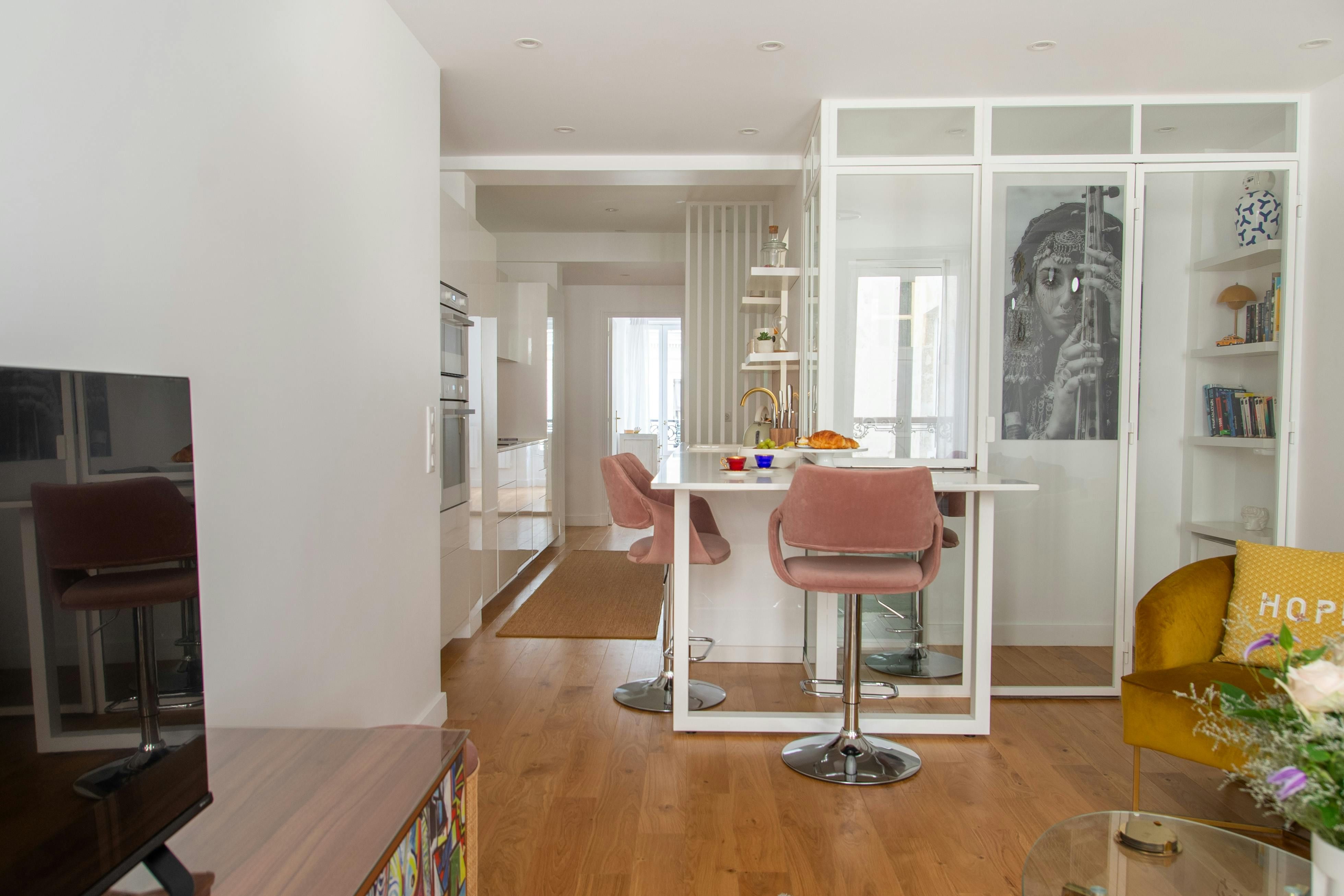 Searching for a Parisian love nest? This apartment in the 7th arrondissement is just what you need. Between the bright lounge and comfortable bedroom, there's plenty of room for two. The finish is sleek yet cosy – we especially like the host's collection of books. Even better is the spot-on location. The Eiffel Tower is just one block away, and you can catch a glimpse of the Iron Lady around every corner. If sightseeing is at the top of your to-do list, this is an ideal place to call home.