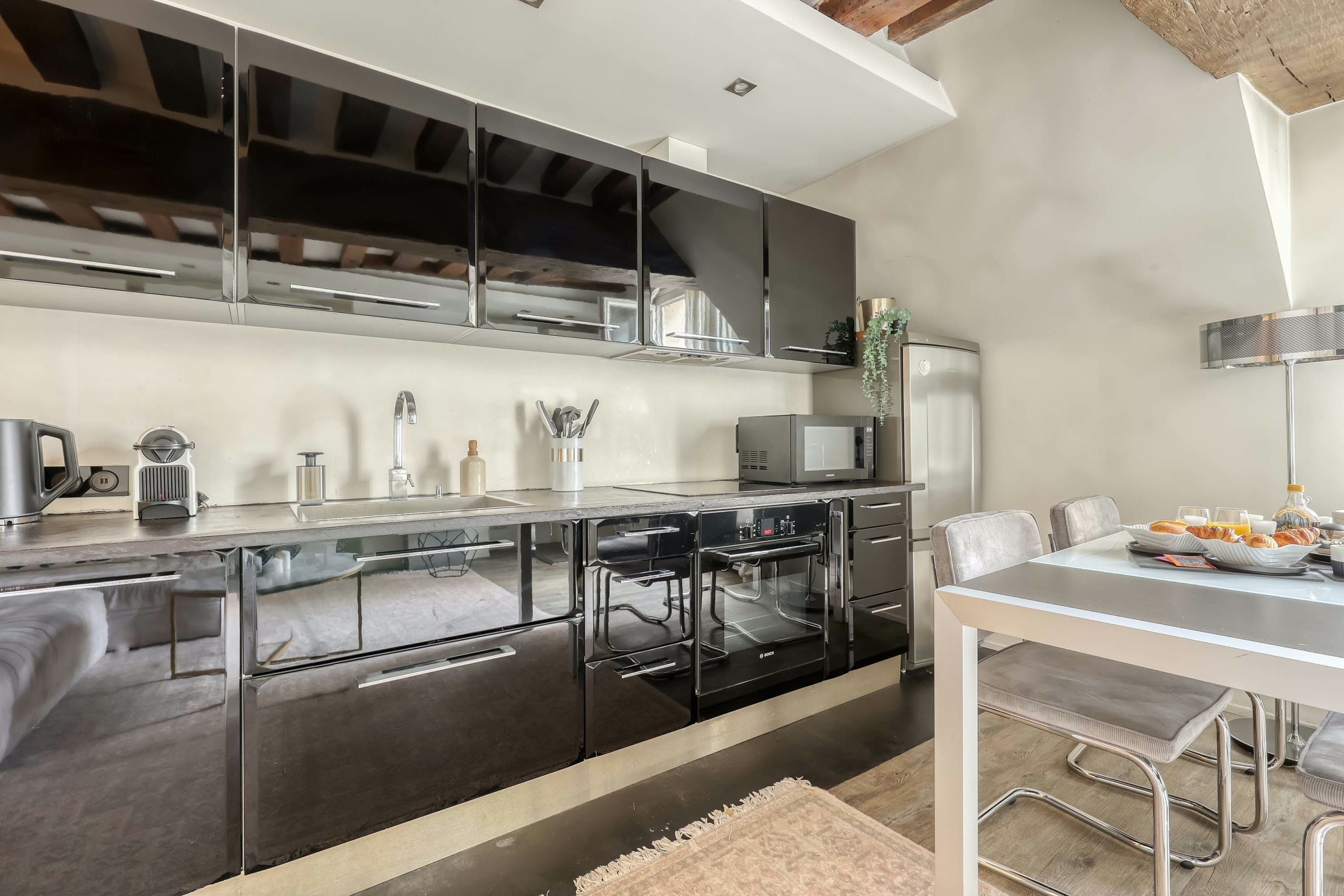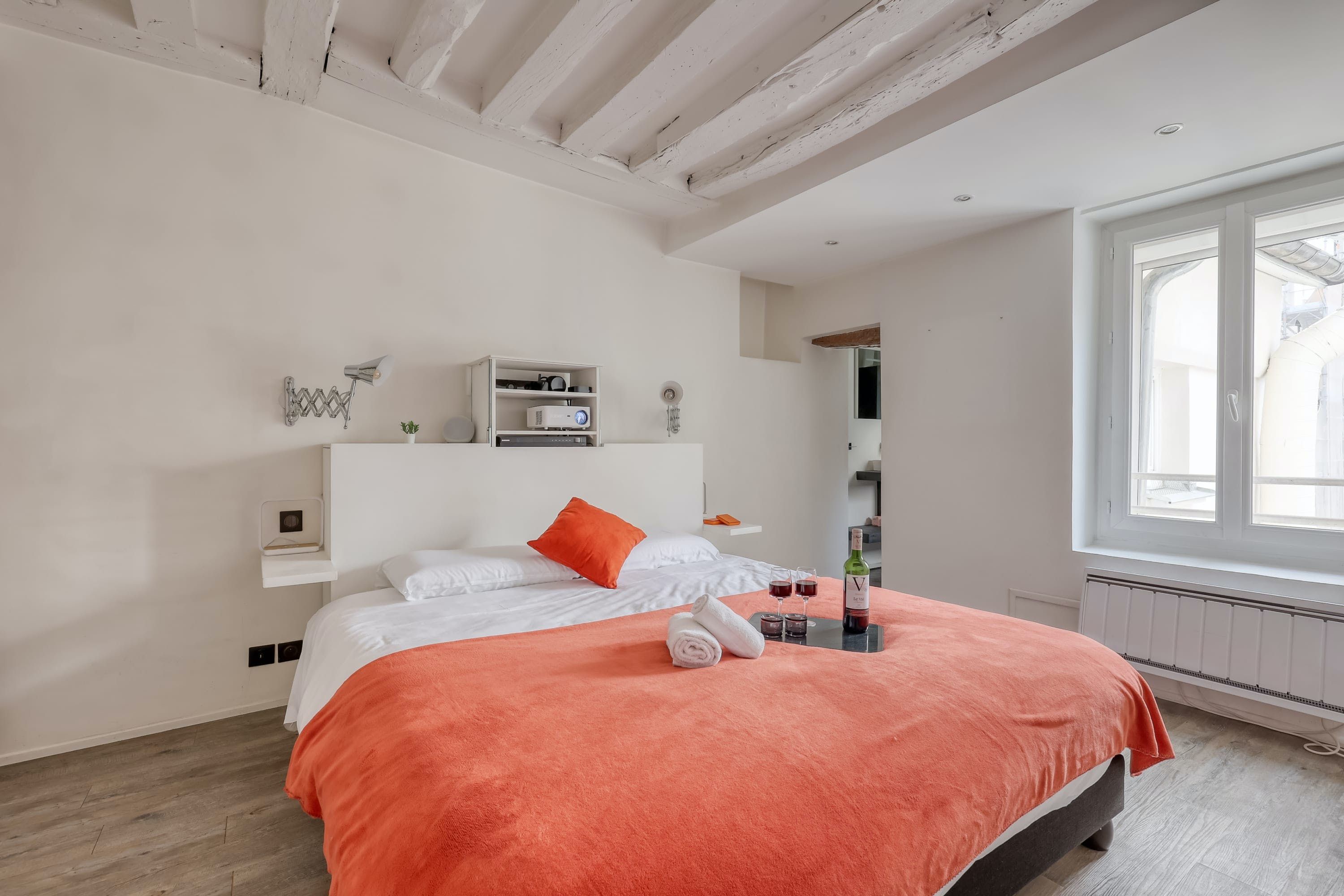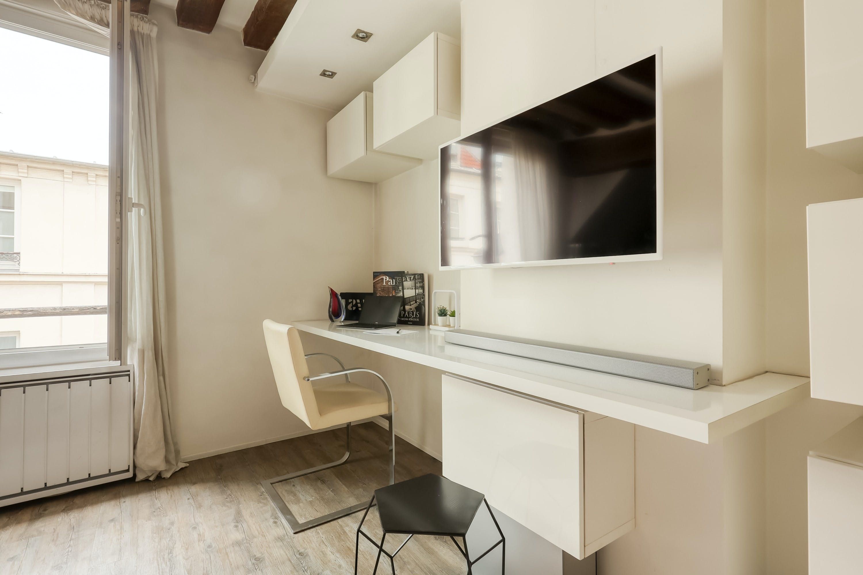 This tasteful home makes for a comfortable and practical base for two in Paris. The Latin Quarter location means that you’re in the thick of things, with Jardin du Luxembourg just 550 metres away and Notre Dame a fifteen-minute stroll. Mabillon metro station is also close by. The apartment itself is tucked down a small street, and has everything you might need. There’s a desk in the living room for remote working, and the projector in the bedroom means you can add cosy movie nights to your itinerary. The only downside to this charming apartment is that it’s on the fourth floor with no lift – it won’t be suitable for everyone.