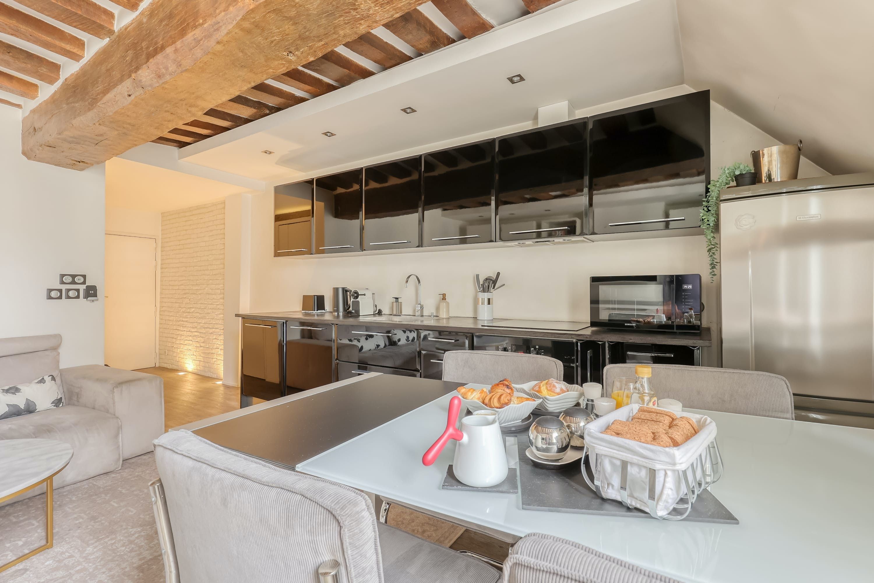 *This home is on the fourth floor of the building with no lift, so you’ll need to be able to climb several flights of stairs to stay here comfortably. *For those needing to work during their stay, there’s a laptop-friendly workspace in the open-plan living and dining space. *Given the home's central spot, expect to hear some street noise throughout your stay. *If you’re travelling with little ones, your host may be able to provide a cot.