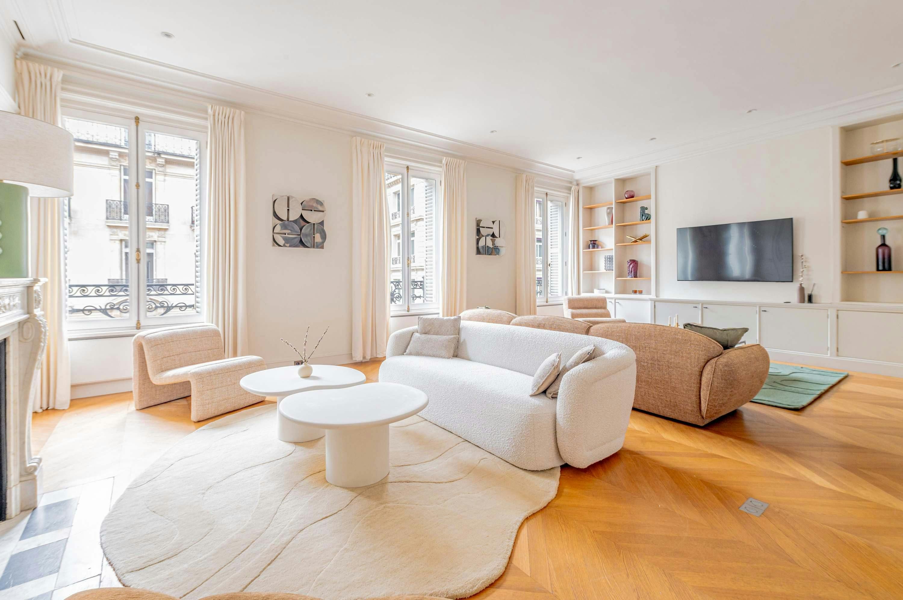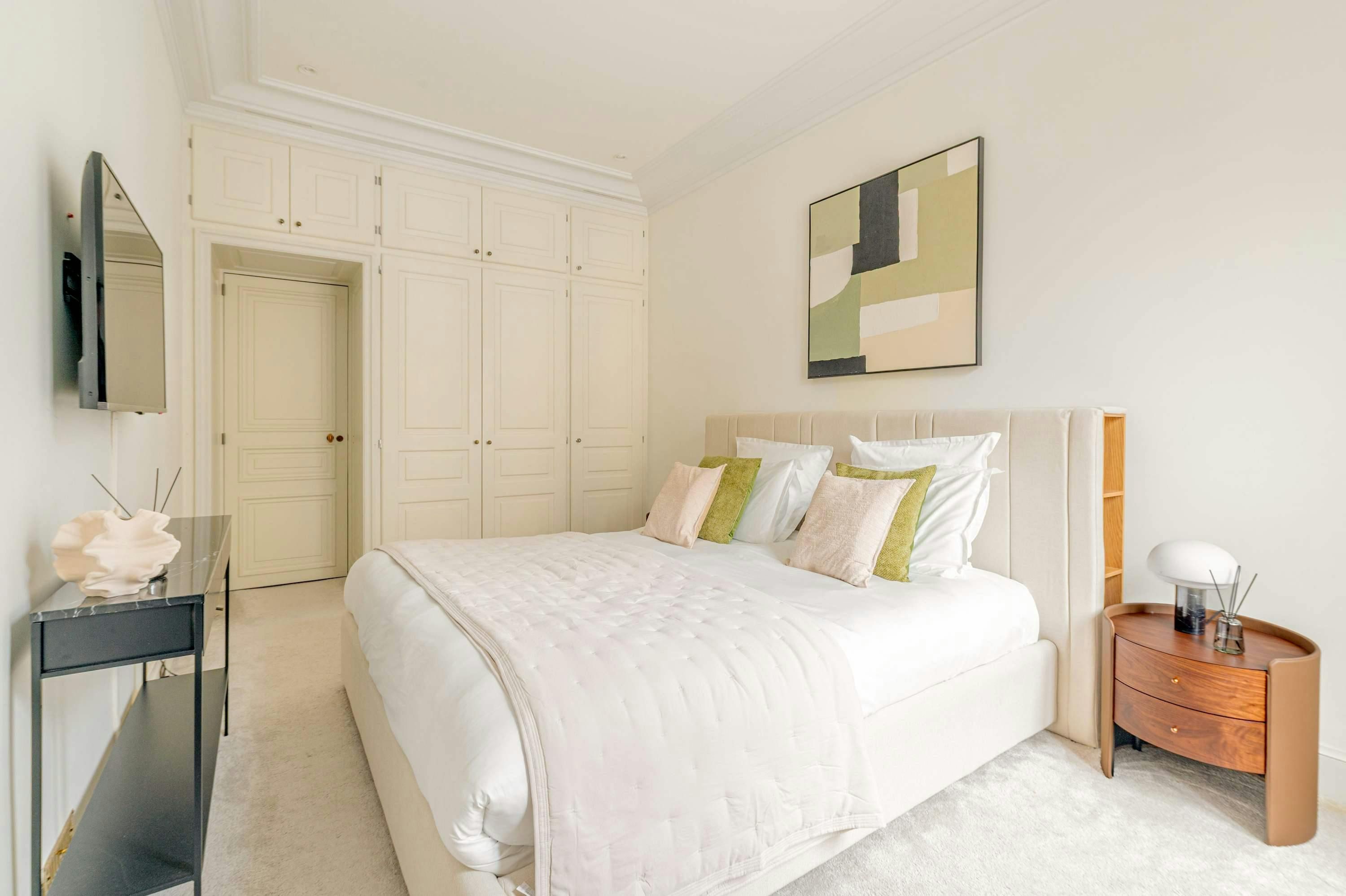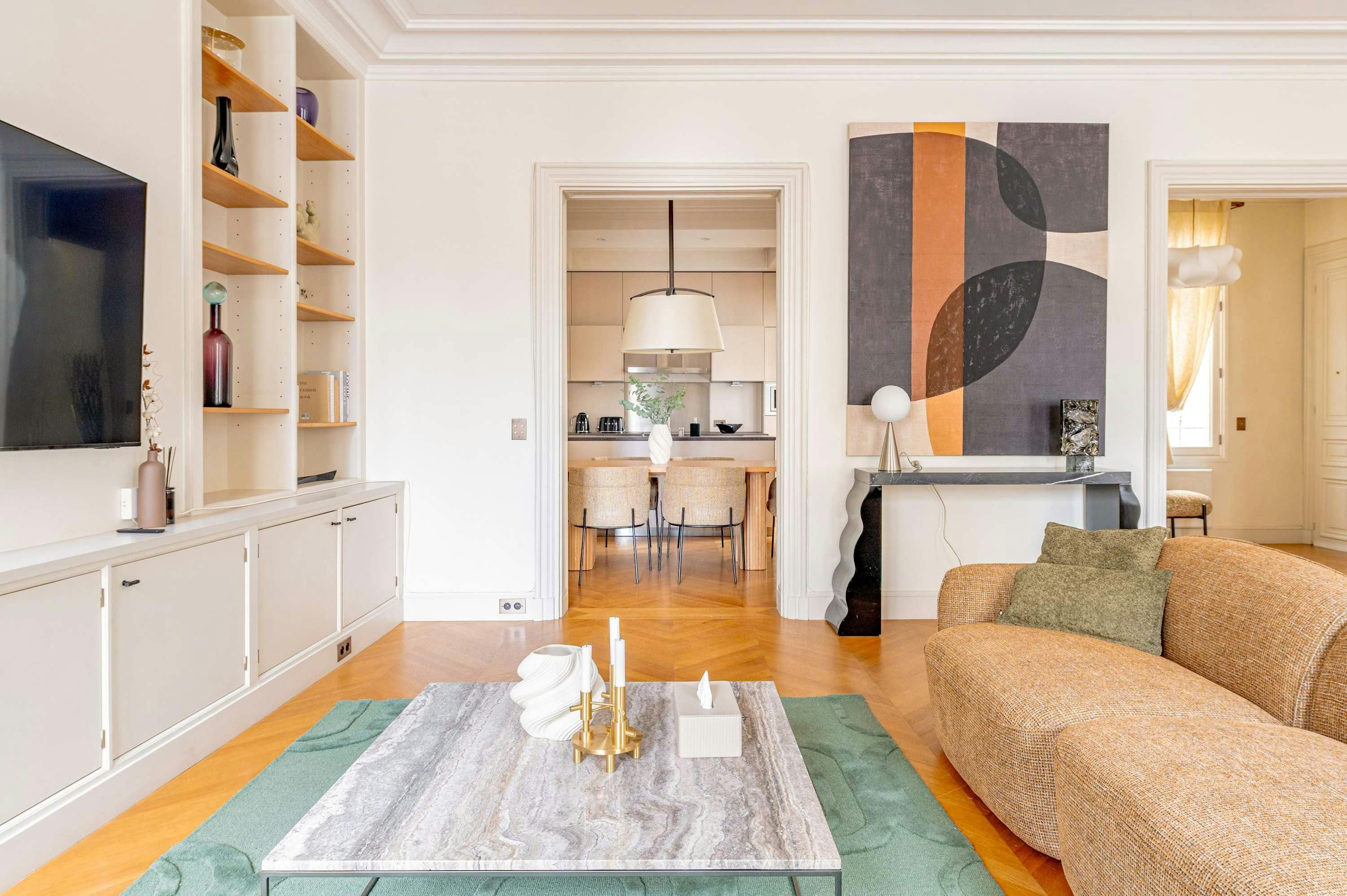 If you love browsing Paris’s luxury boutiques, then you can’t get a much better location than this. The apartment, situated in the 8th arrondissement, is just a short stroll from the Champs Élysées, and for culture lovers, the Grand Palais is also a quick walk. So, the address is a true highlight, but so is this elegant home. There’s a large living room with a view over the street with its beautiful Parisian architecture (this room also has a comfy sofa bed). And there’s a well-appointed kitchen for when you don’t want to dine out at the chic restaurants surrounding this stylish home.
