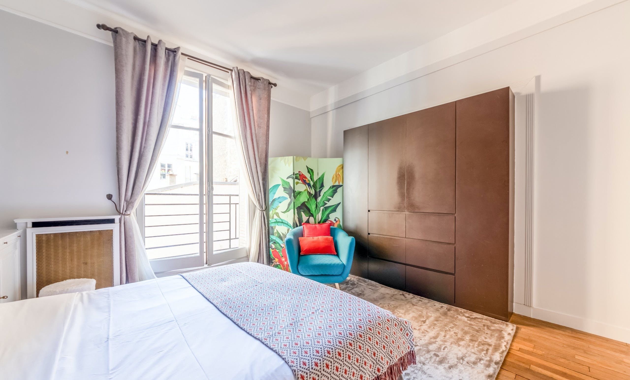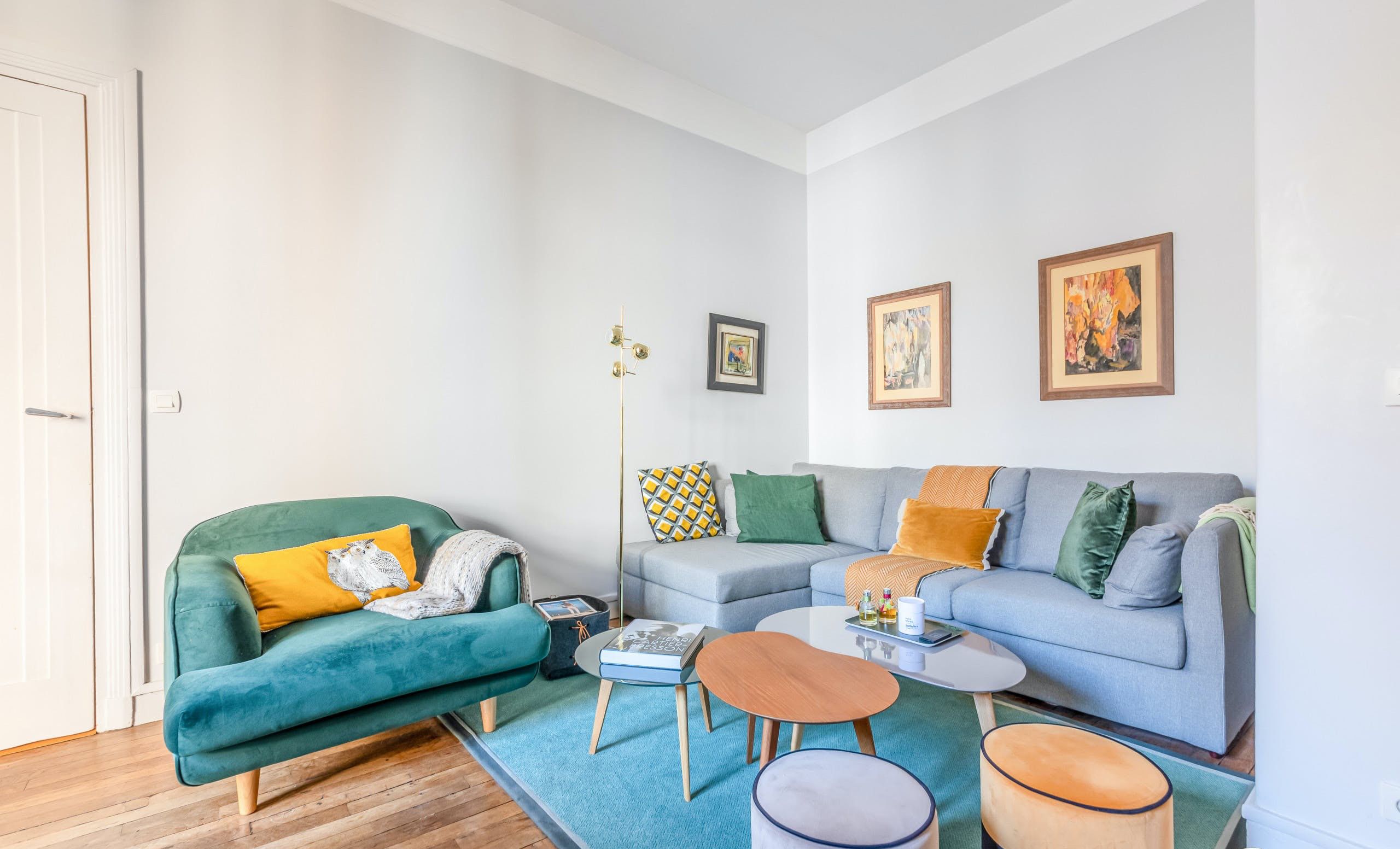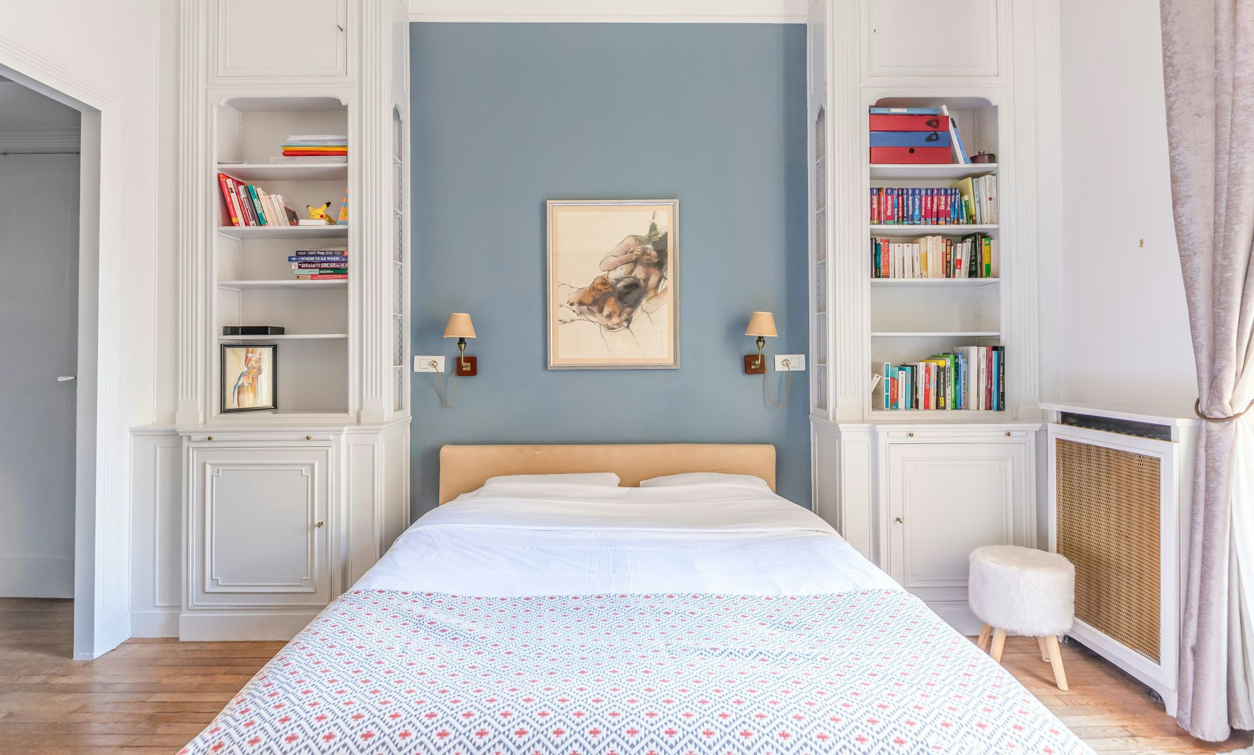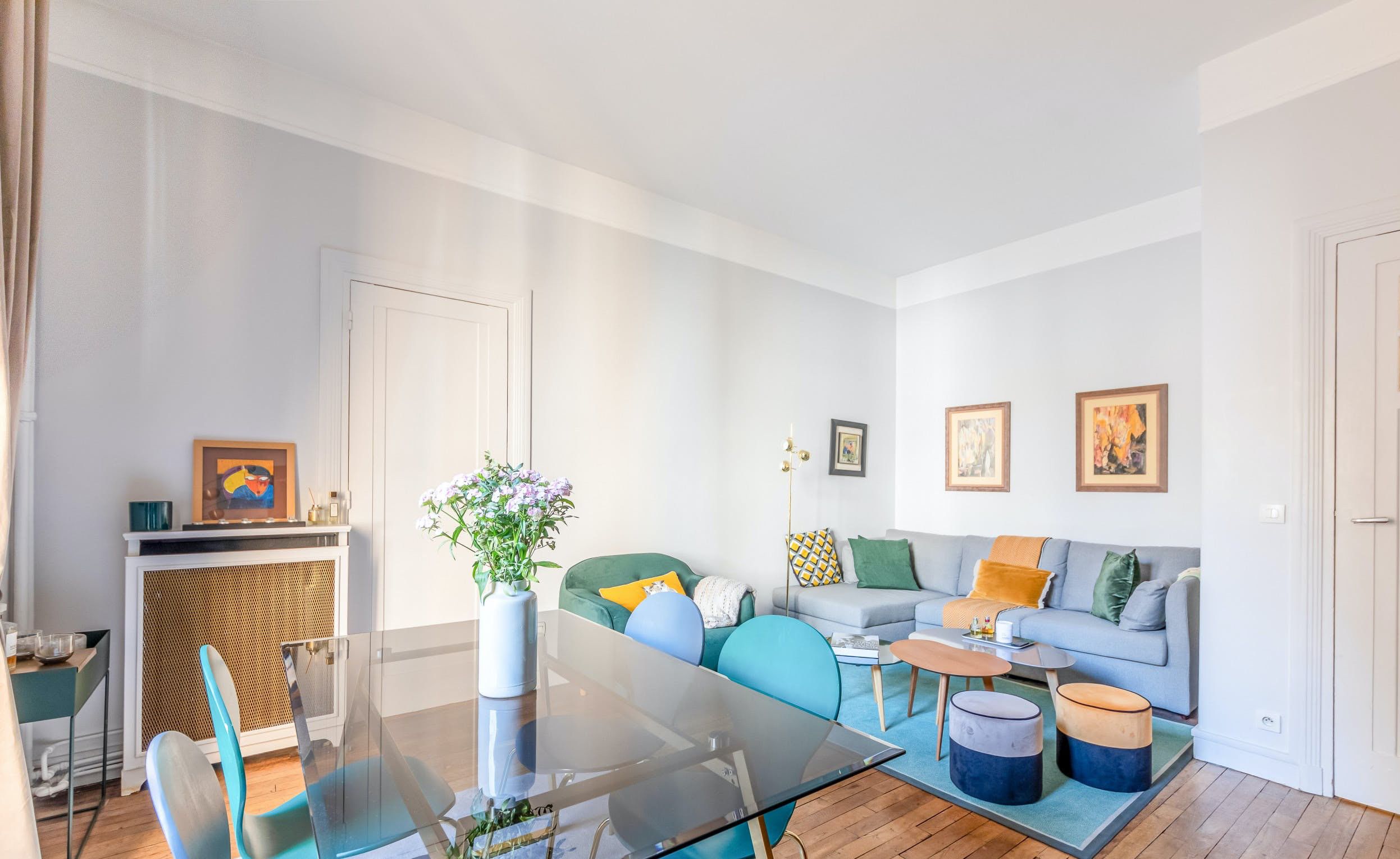 This typically Parisian apartment can be found on a quiet street in Saint Germain des Prés. It’s near the Bon Marché and just a short walk from iconic spots including the Louvre and Notre Dame, yet feels a million miles away from the crowds. It’s on the third floor of an elegant building and features high ceilings, parquet flooring, and original moldings. There’s more than enough space for two in this bright, attractive home. We love the floor-to-ceiling windows and the splashes of colour, and we think you will too.