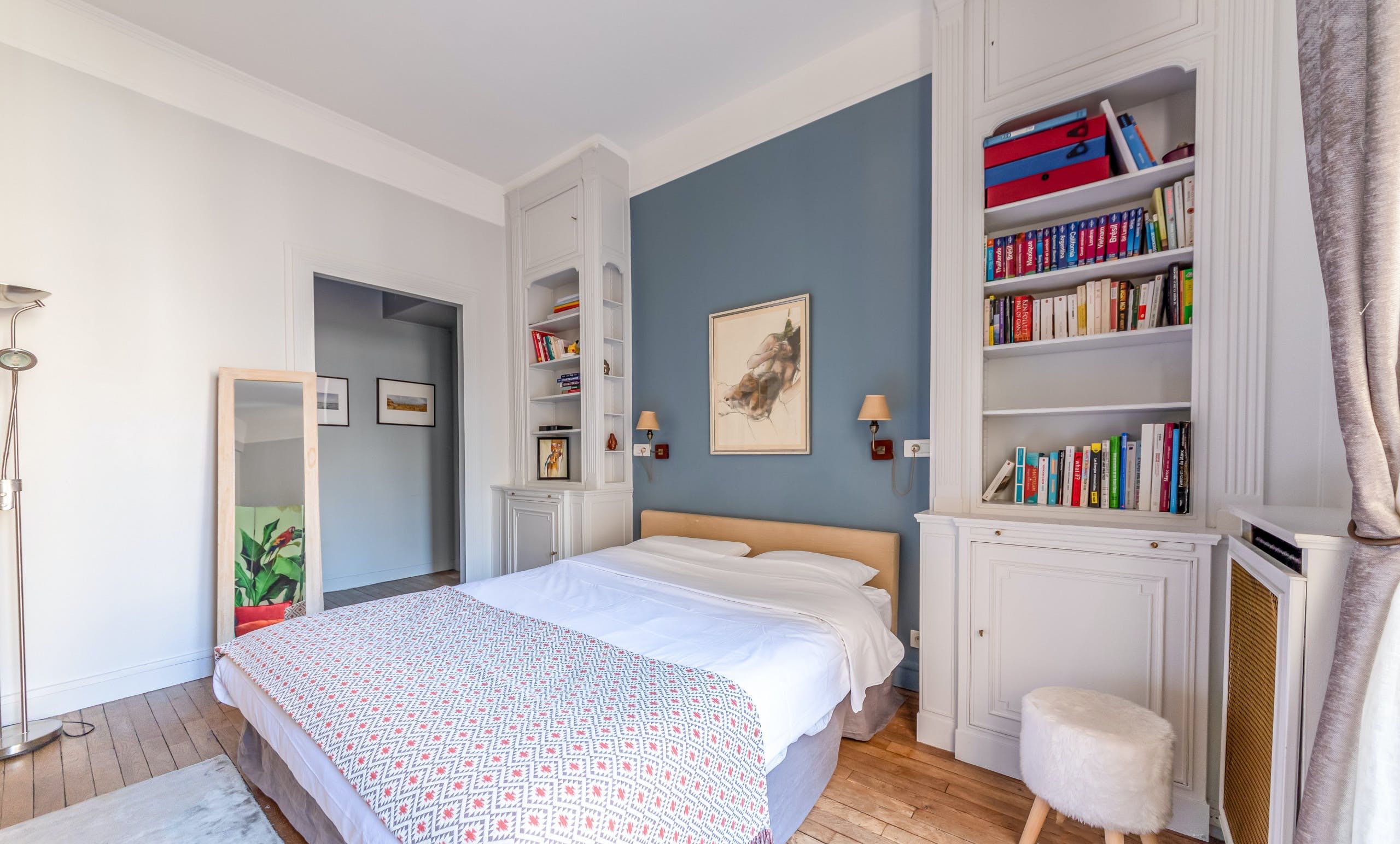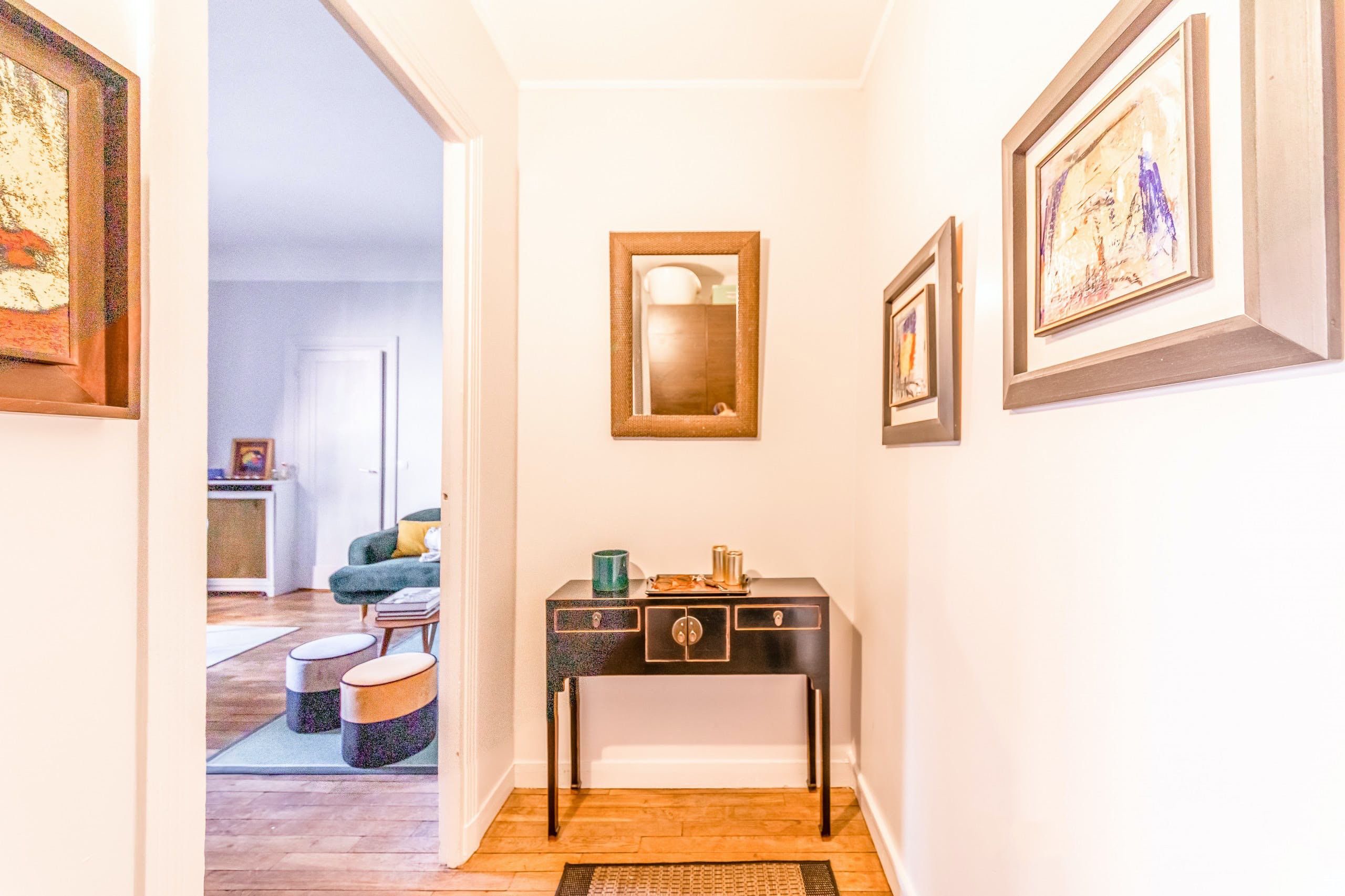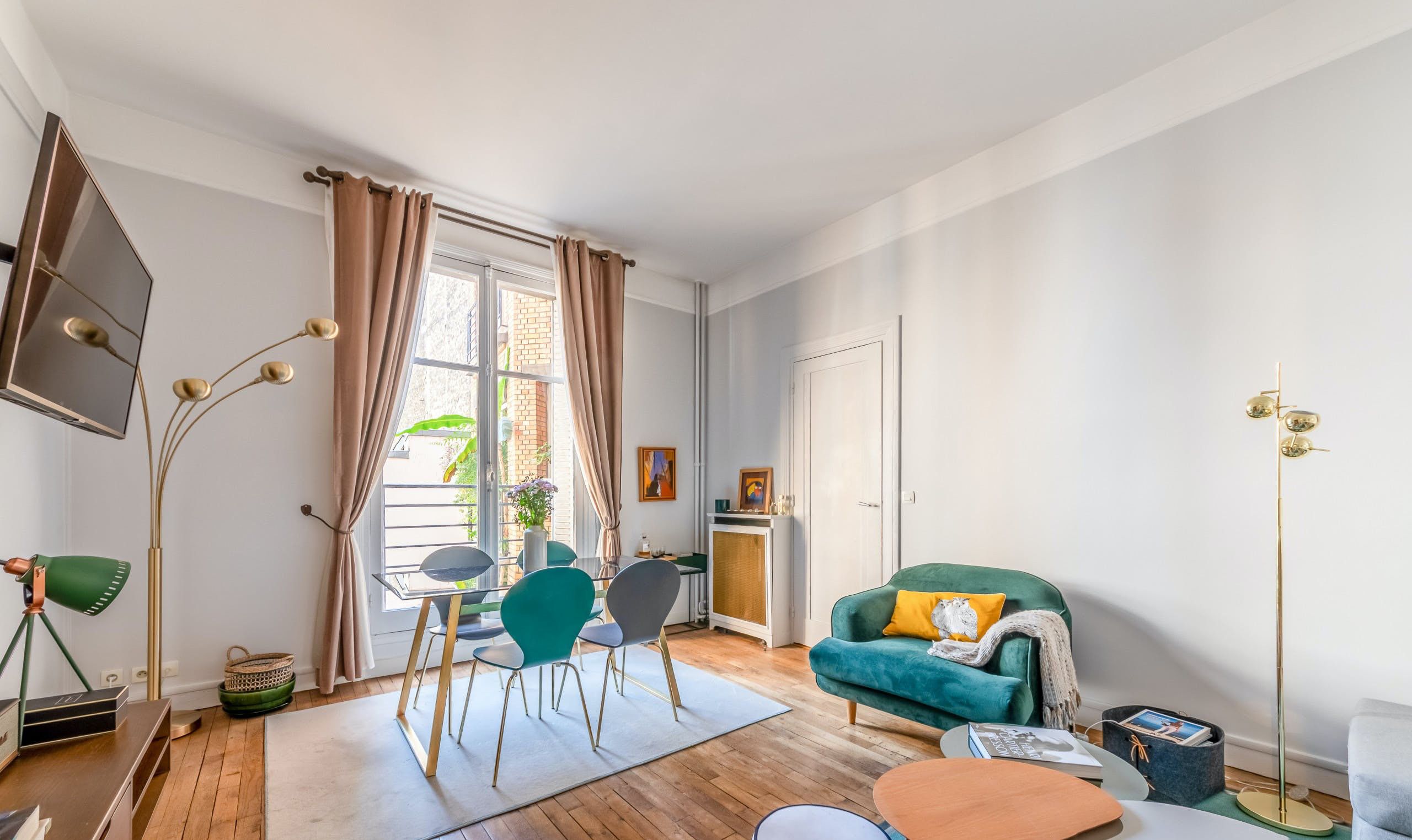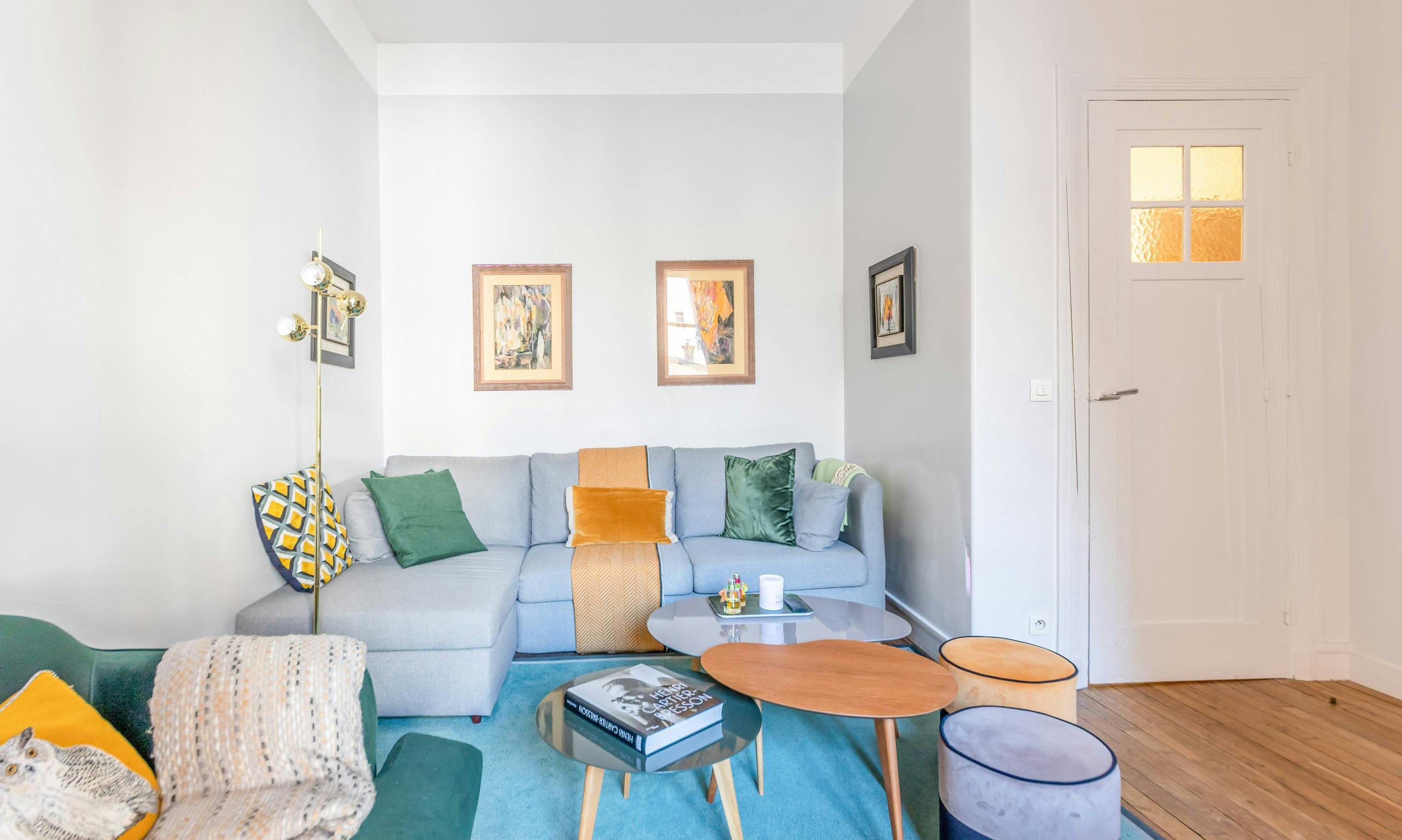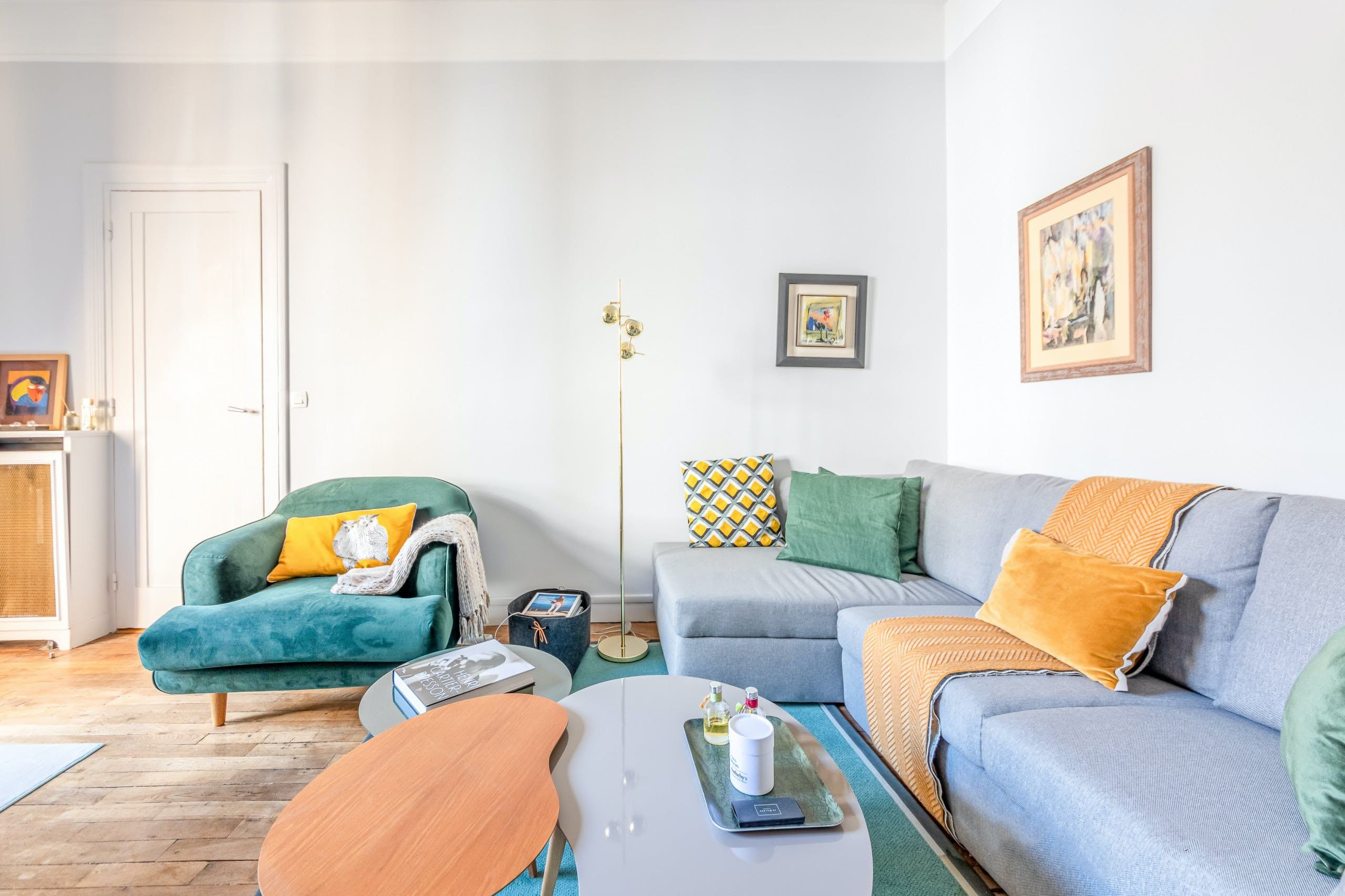 This typically Parisian apartment can be found on a quiet street in Saint Germain des Prés. It’s near the Bon Marché and just a short walk from iconic spots including the Louvre and Notre Dame, yet feels a million miles away from the crowds. It’s on the third floor of an elegant building and features high ceilings, parquet flooring, and original moldings. There’s more than enough space for two in this bright, attractive home. We love the floor-to-ceiling windows and the splashes of colour, and we think you will too.