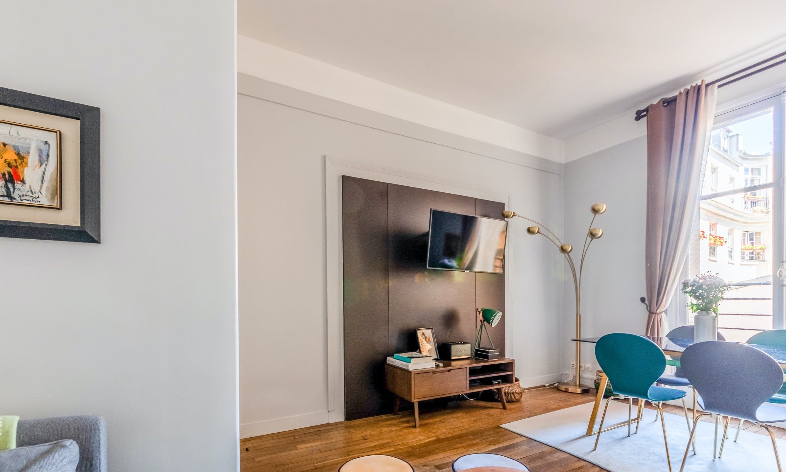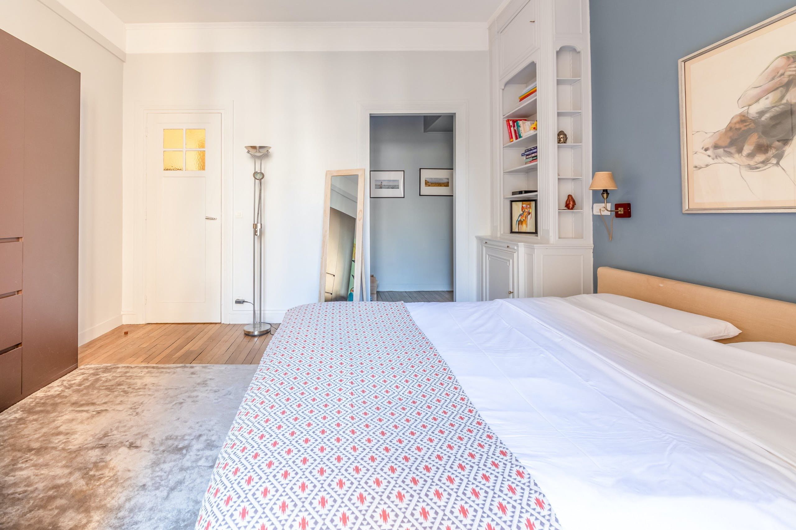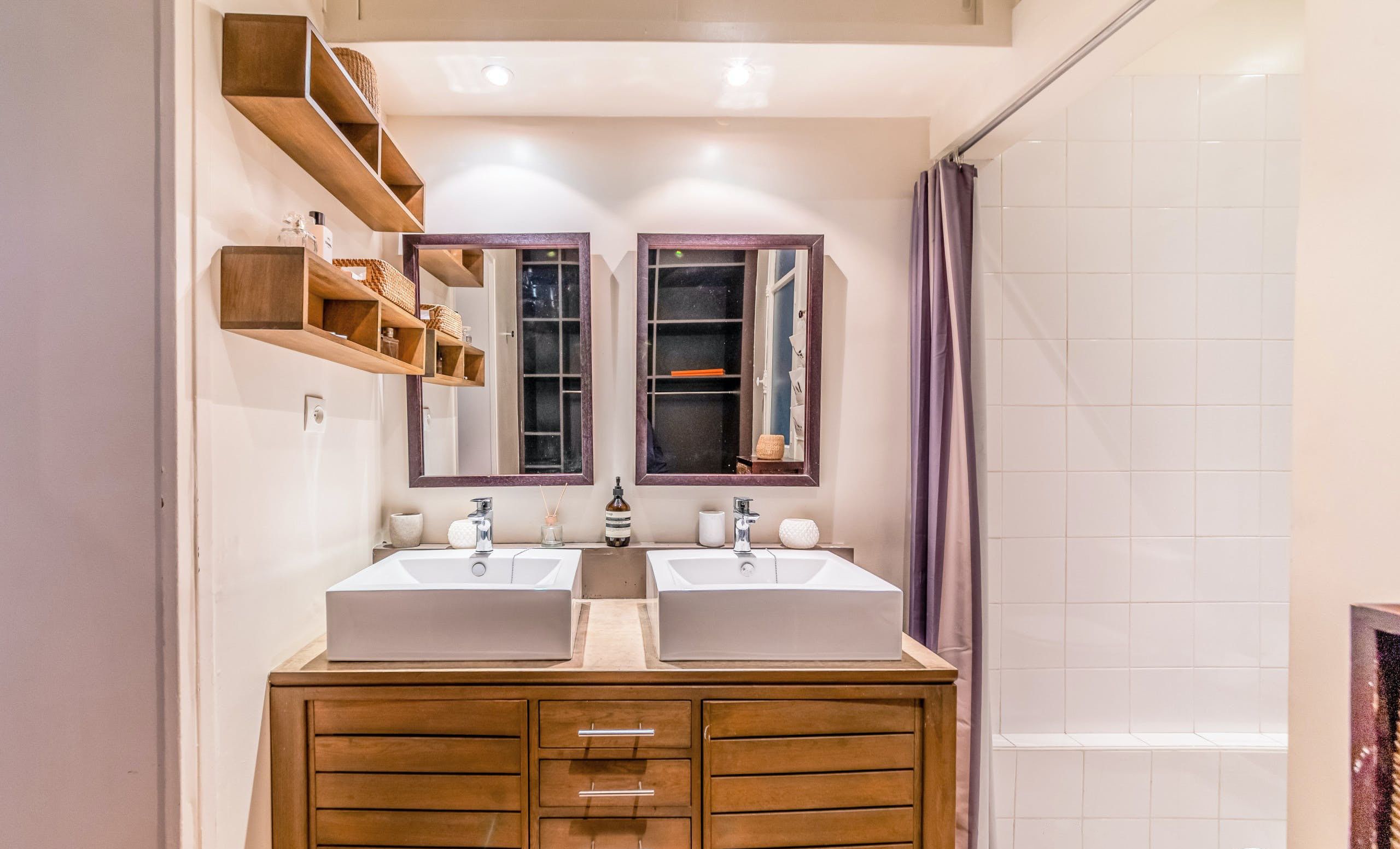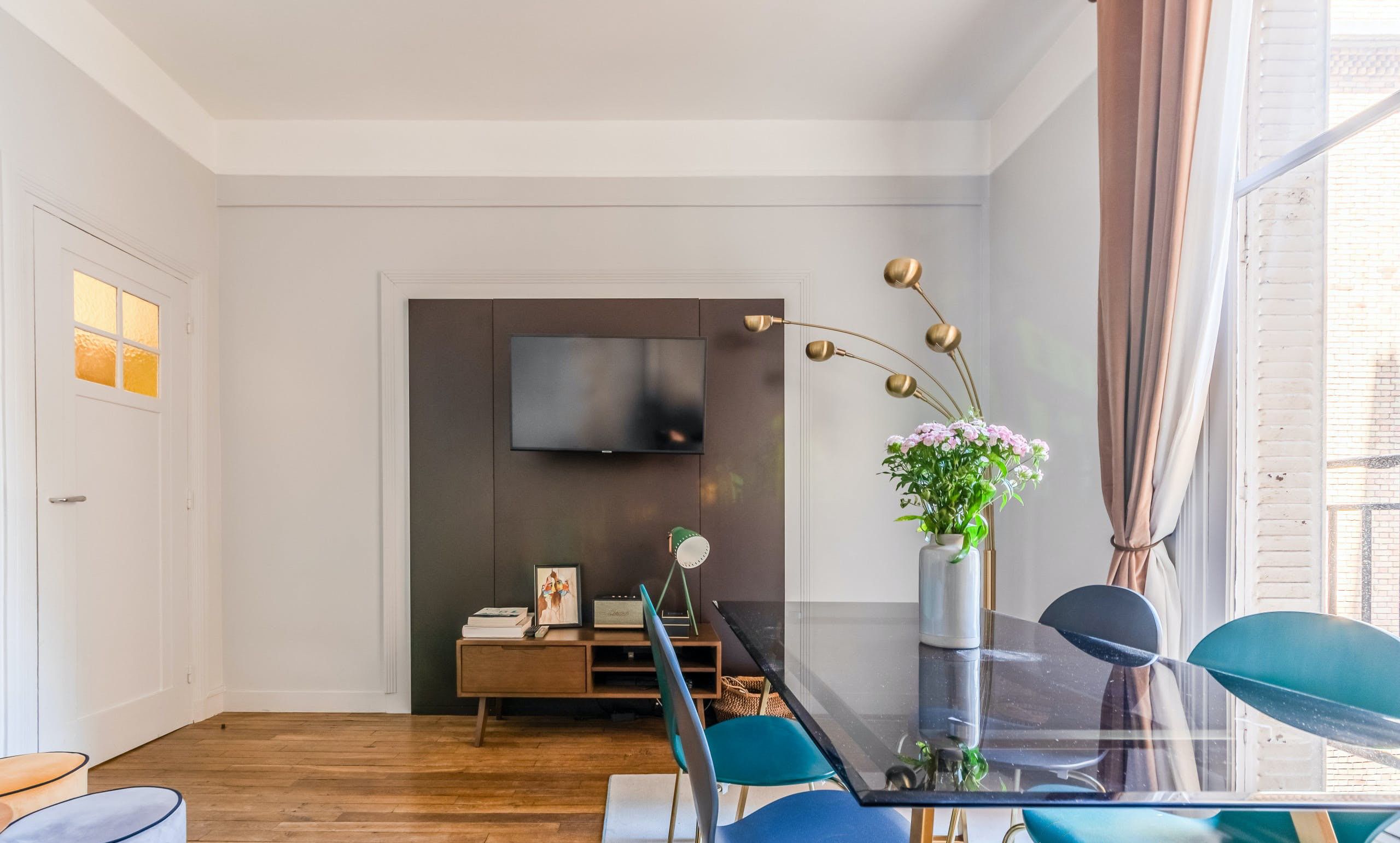 This typically Parisian apartment can be found on a quiet street in Saint Germain des Prés. It’s near the Bon Marché and just a short walk from iconic spots including the Louvre and Notre Dame, yet feels a million miles away from the crowds. It’s on the third floor of an elegant building and features high ceilings, parquet flooring, and original moldings. There’s more than enough space for two in this bright, attractive home. We love the floor-to-ceiling windows and the splashes of colour, and we think you will too.