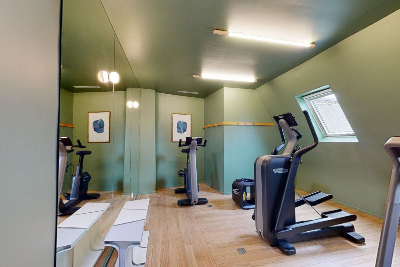 *You'll have access to the on-site gym, courtyard, launderette, and coworking space here. They're shared with the building's other residents and guests.