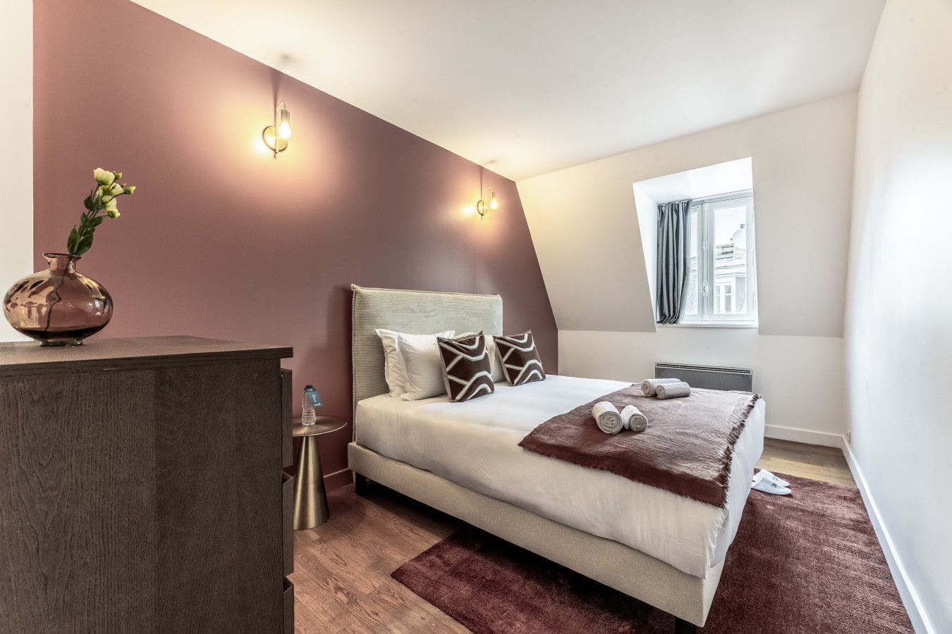 Experience the magic of Paris from this elegant apartment, tucked just a stone’s throw from the iconic Champs-Elysées. Blending sleek design with comfortable furnishings, it’s an ideal spot to connect, share meals, and unwind. The sloped ceilings add character and a sense of intimacy, while the generous layout ensures everyone has space to stretch out. Nestled in the vibrant 8th arrondissement, you're within easy reach of celebrated landmarks and lively streets. There's a lift to the fifth floor, and then it's just one flight of stairs to climb – totally worth it for the charm that awaits.