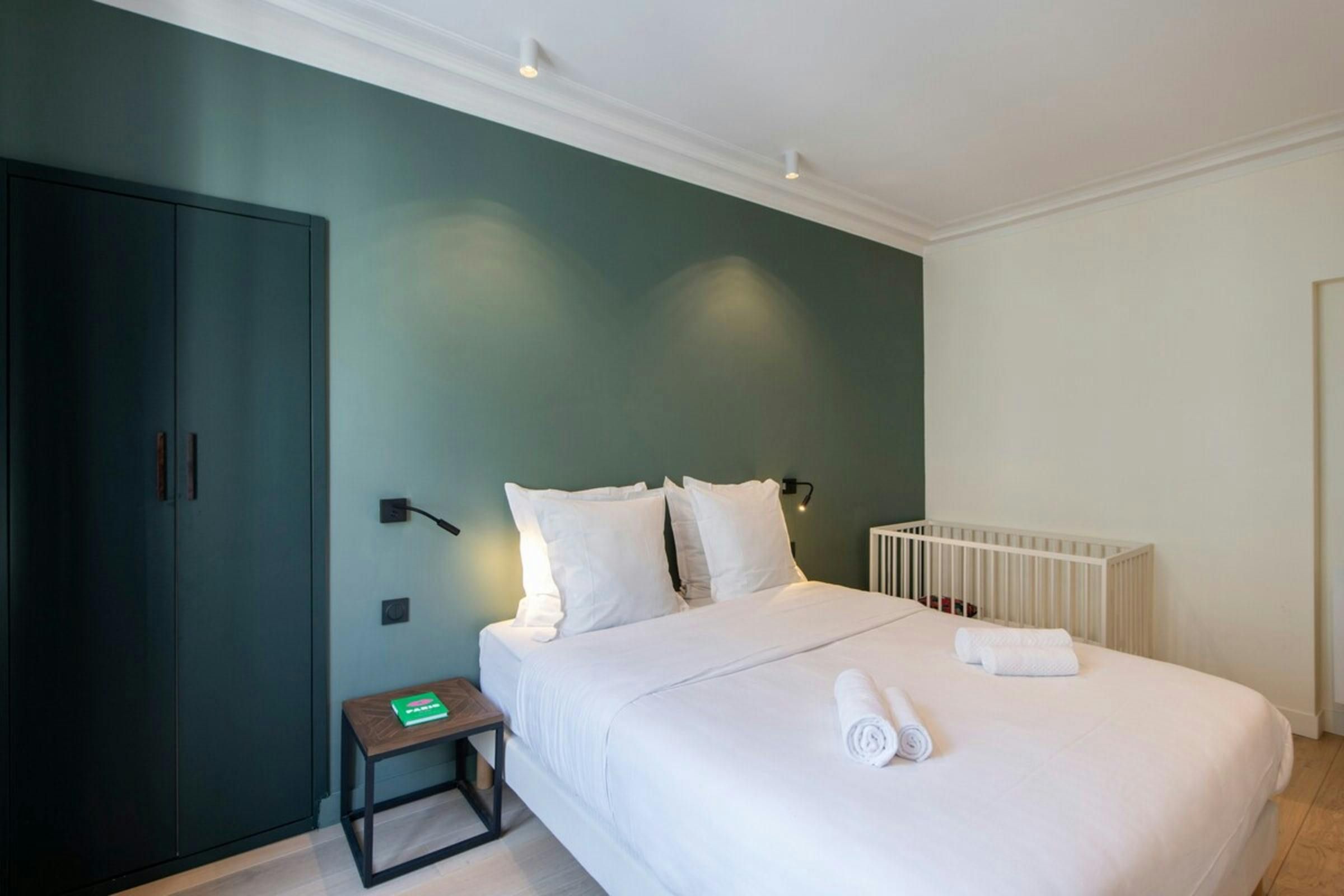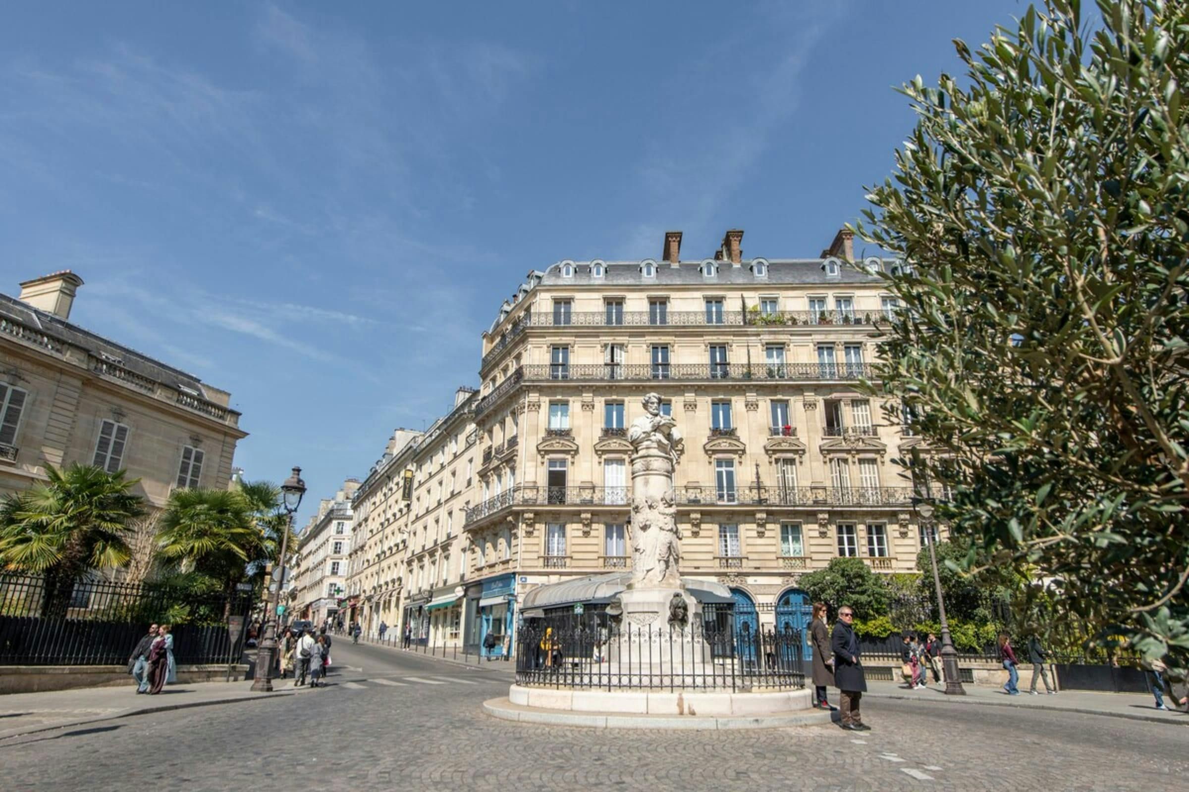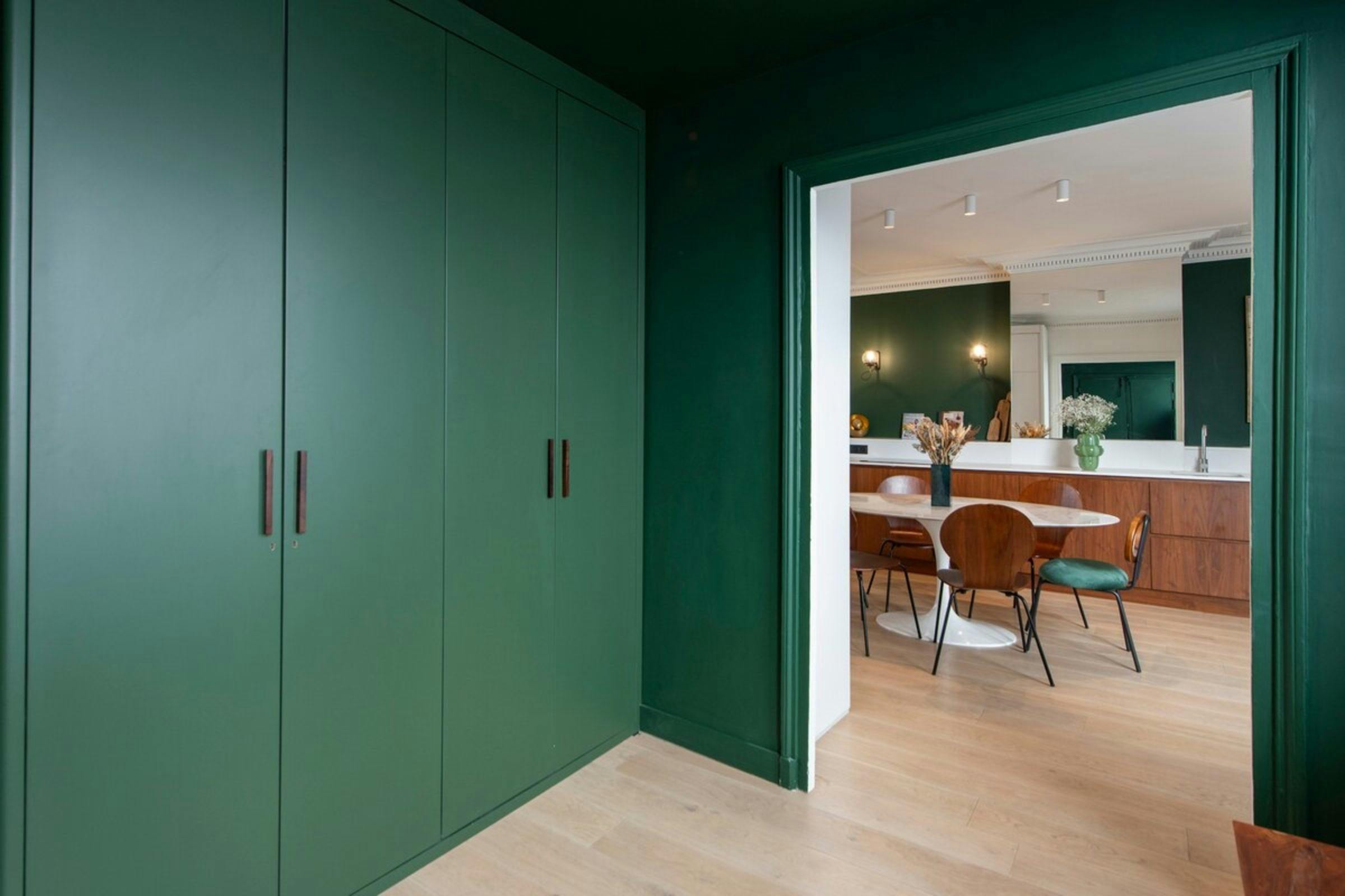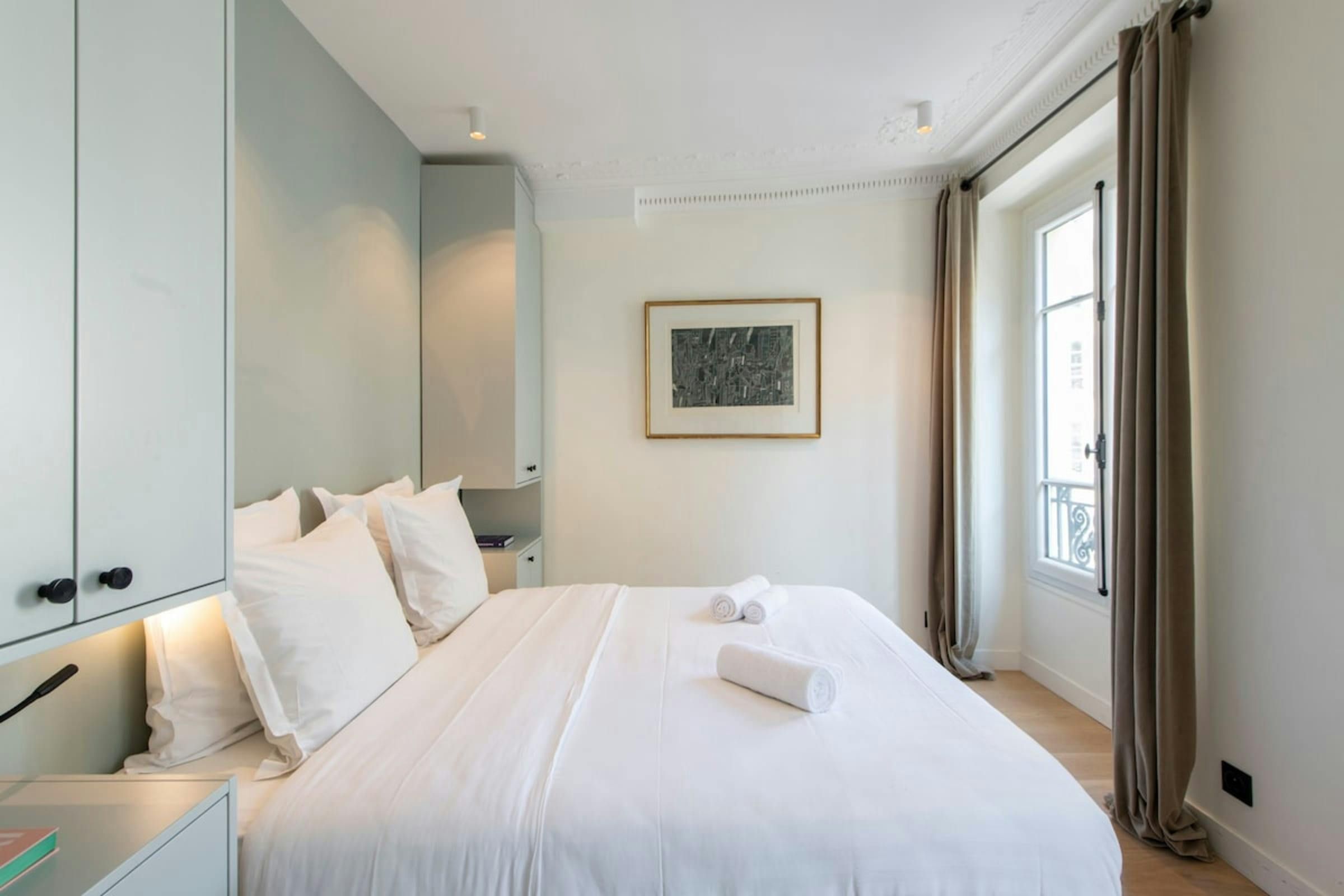 This deluxe apartment on the edge of New Athens marries beautiful furnishings with a coveted Paris location. The home was decorated by a professional in the traditional Haussmann style, creating a comfortable and sophisticated option for friend groups and families. The open plan living area flows into the kitchen and dining area, which are effectively one and the same – the dining table stands between the worktop and the oven, meaning chefs will need to be cautious ferrying hot dishes. The three bedrooms are distinct and characterful, though only one has an en-suite bathroom. Beyond the building, you'll be a twenty minute walk from both Montmartre and the Opera, and one minute from Notre-Dame-de-Lorette and the north-south 12 metro line.