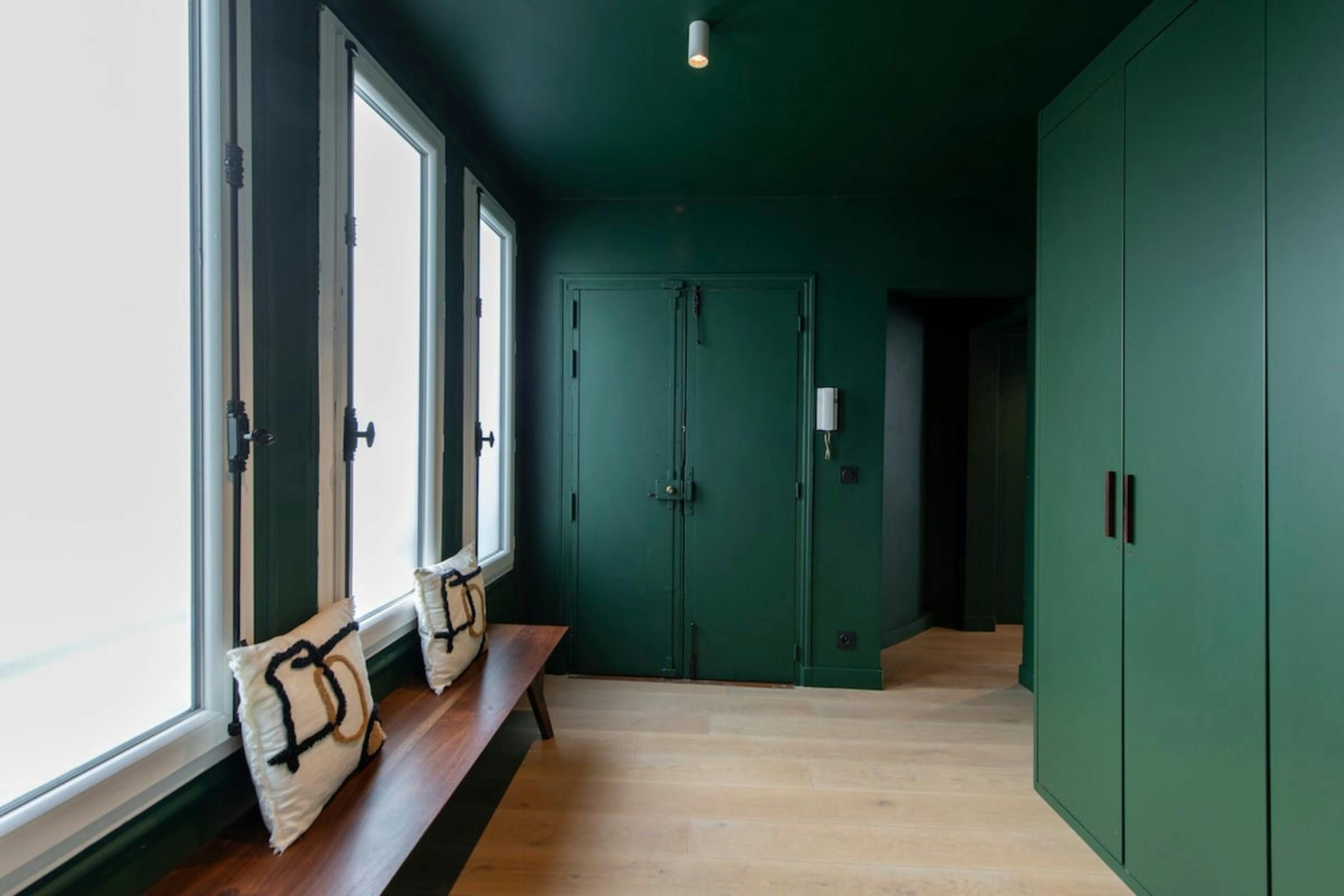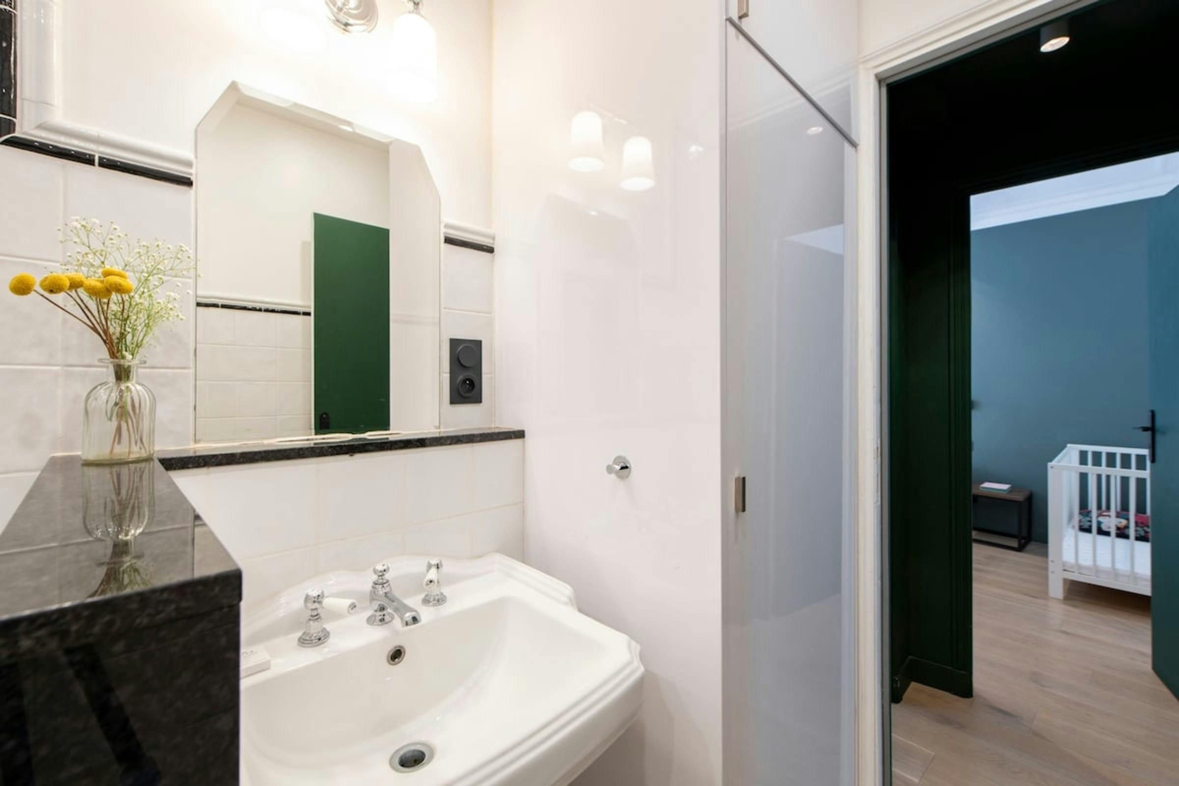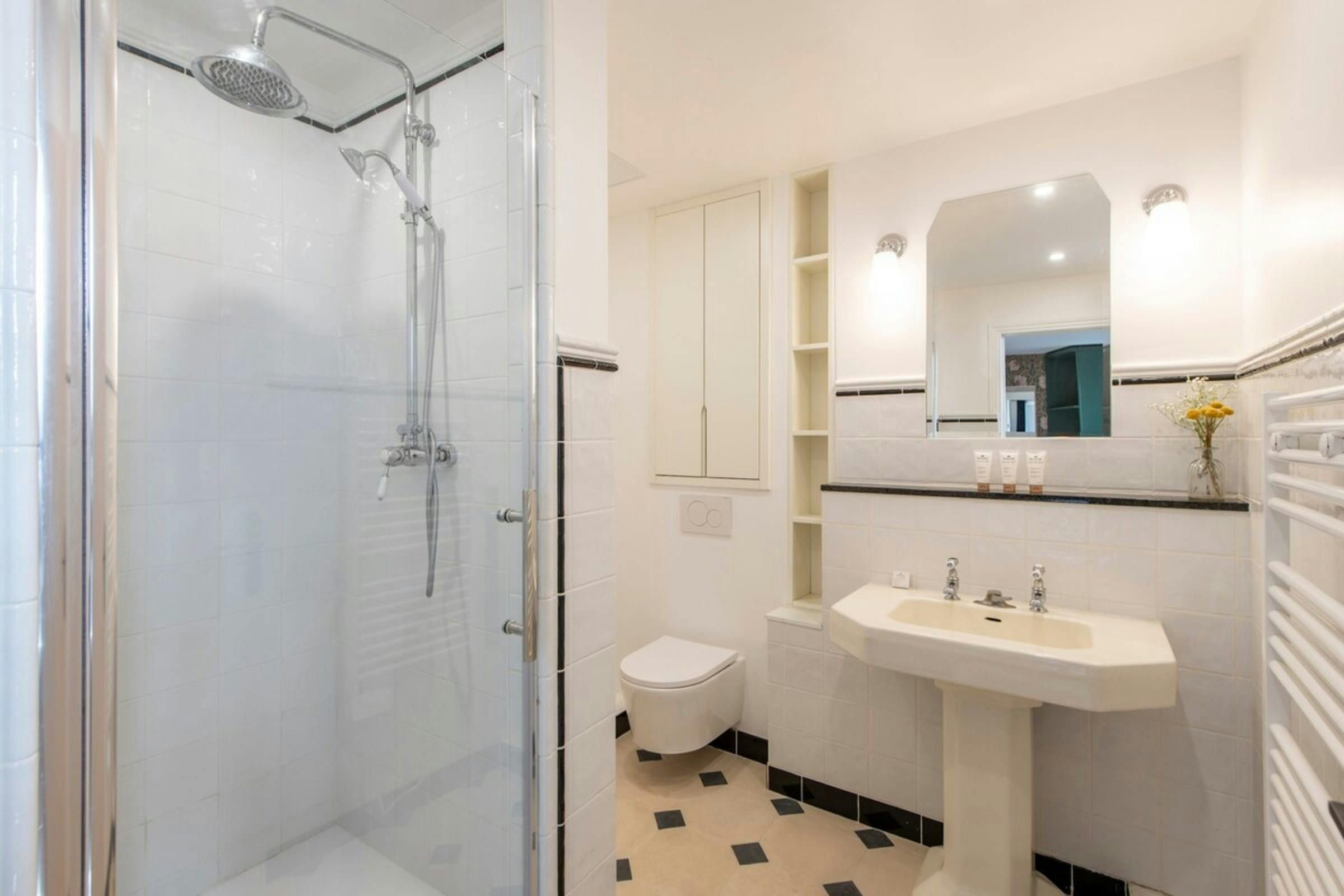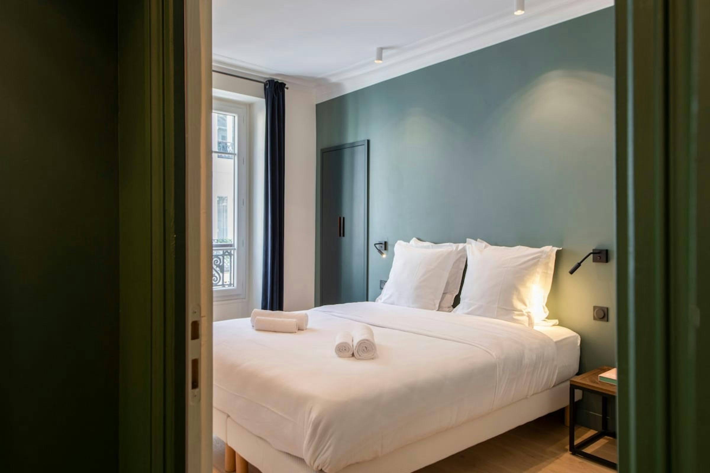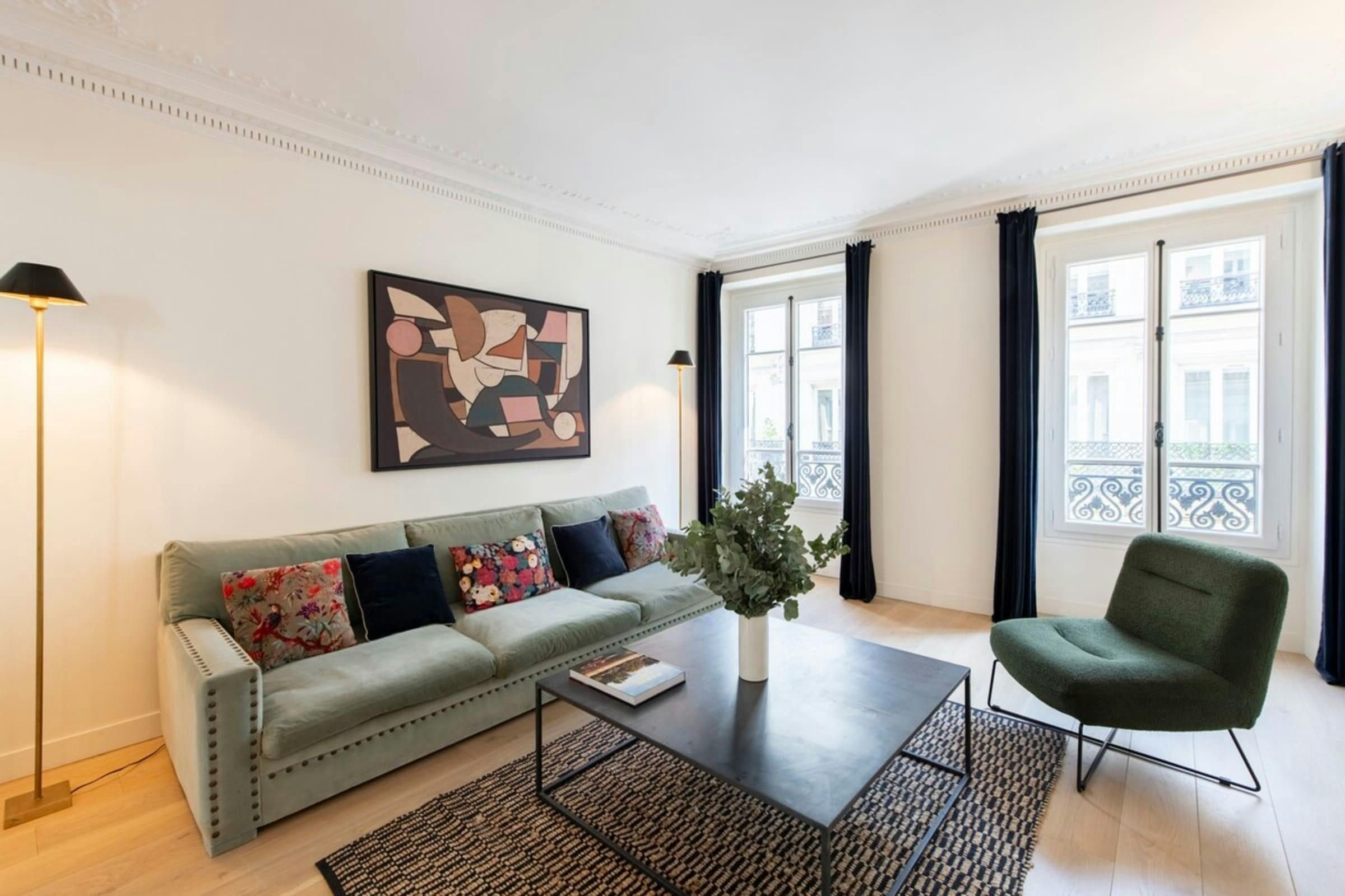 This deluxe apartment on the edge of New Athens marries beautiful furnishings with a coveted Paris location. The home was decorated by a professional in the traditional Haussmann style, creating a comfortable and sophisticated option for friend groups and families. The open plan living area flows into the kitchen and dining area, which are effectively one and the same – the dining table stands between the worktop and the oven, meaning chefs will need to be cautious ferrying hot dishes. The three bedrooms are distinct and characterful, though only one has an en-suite bathroom. Beyond the building, you'll be a twenty minute walk from both Montmartre and the Opera, and one minute from Notre-Dame-de-Lorette and the north-south 12 metro line.