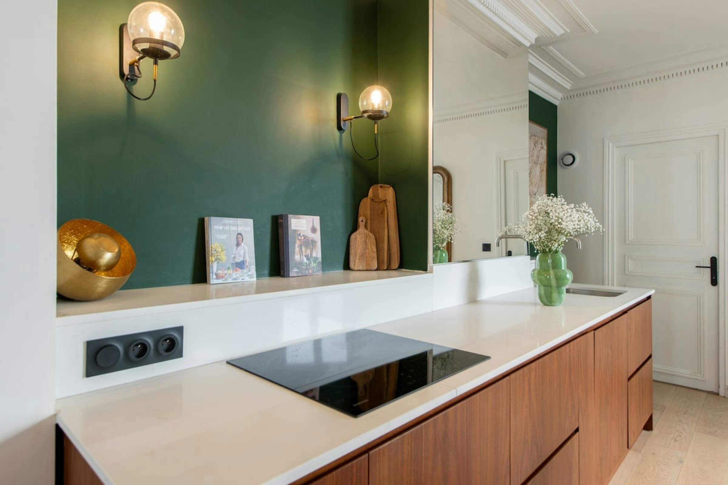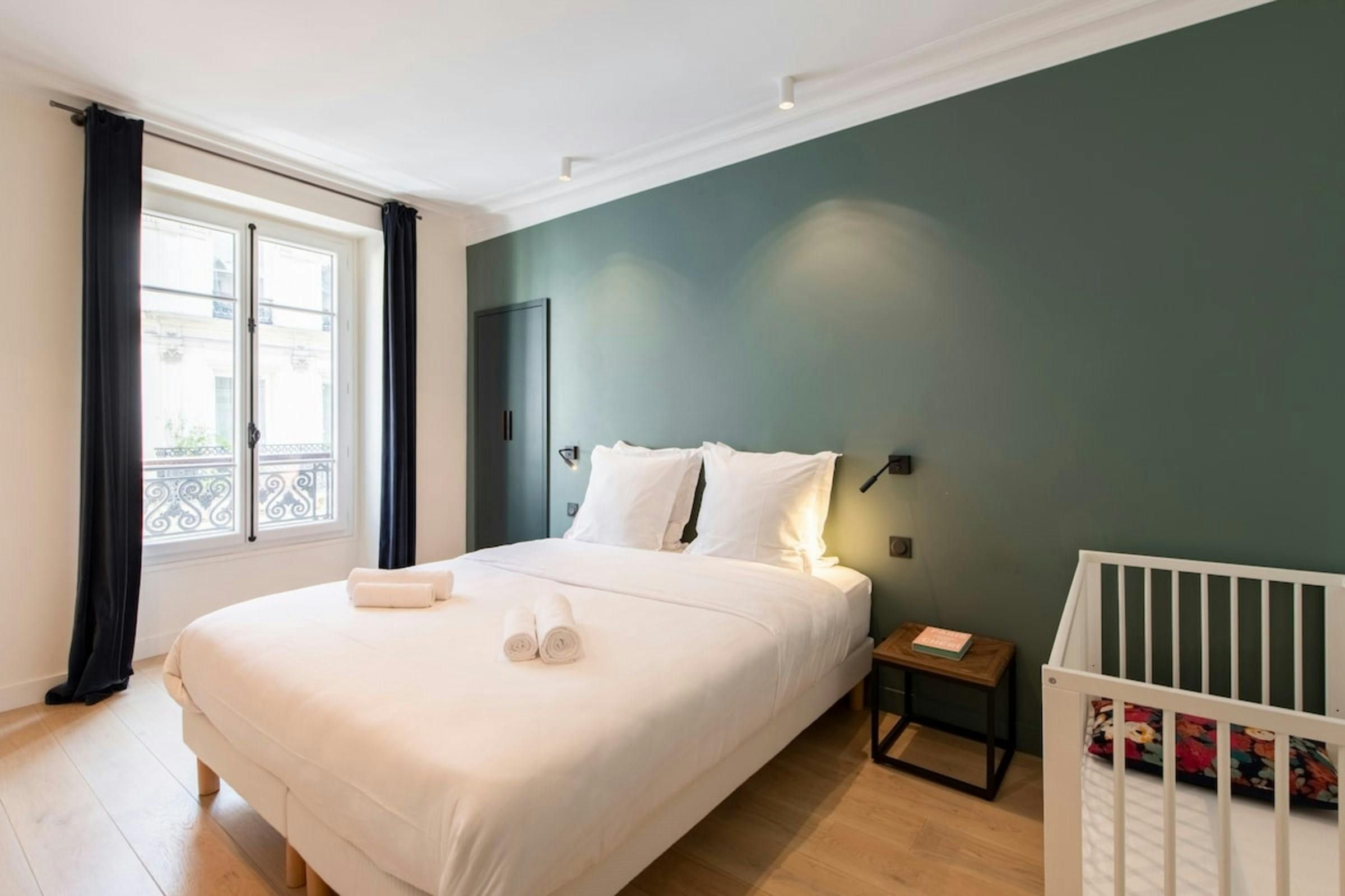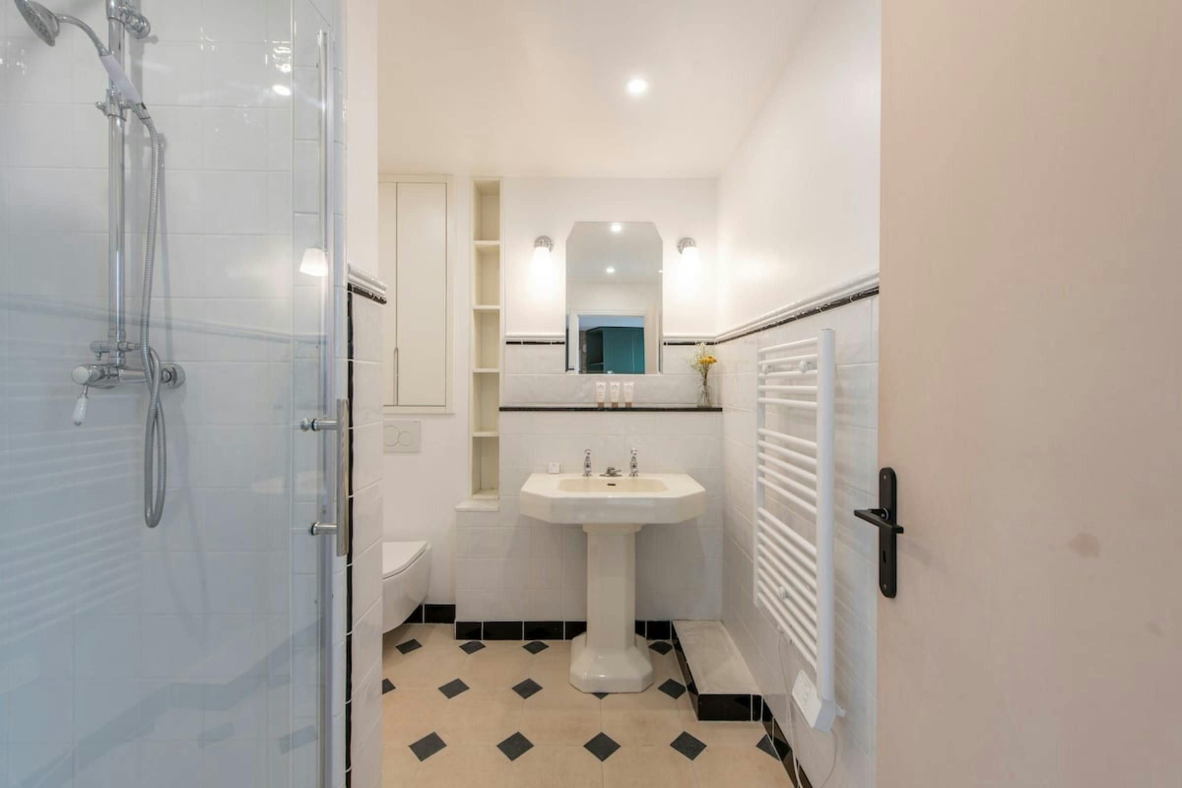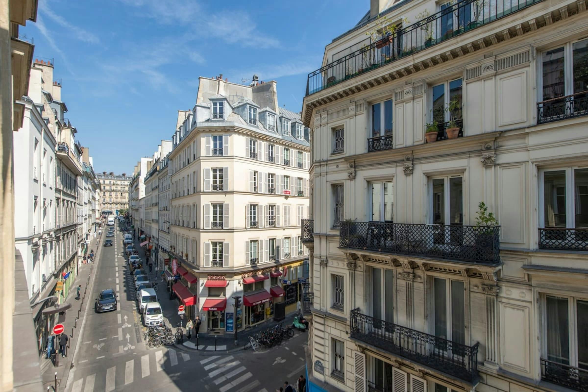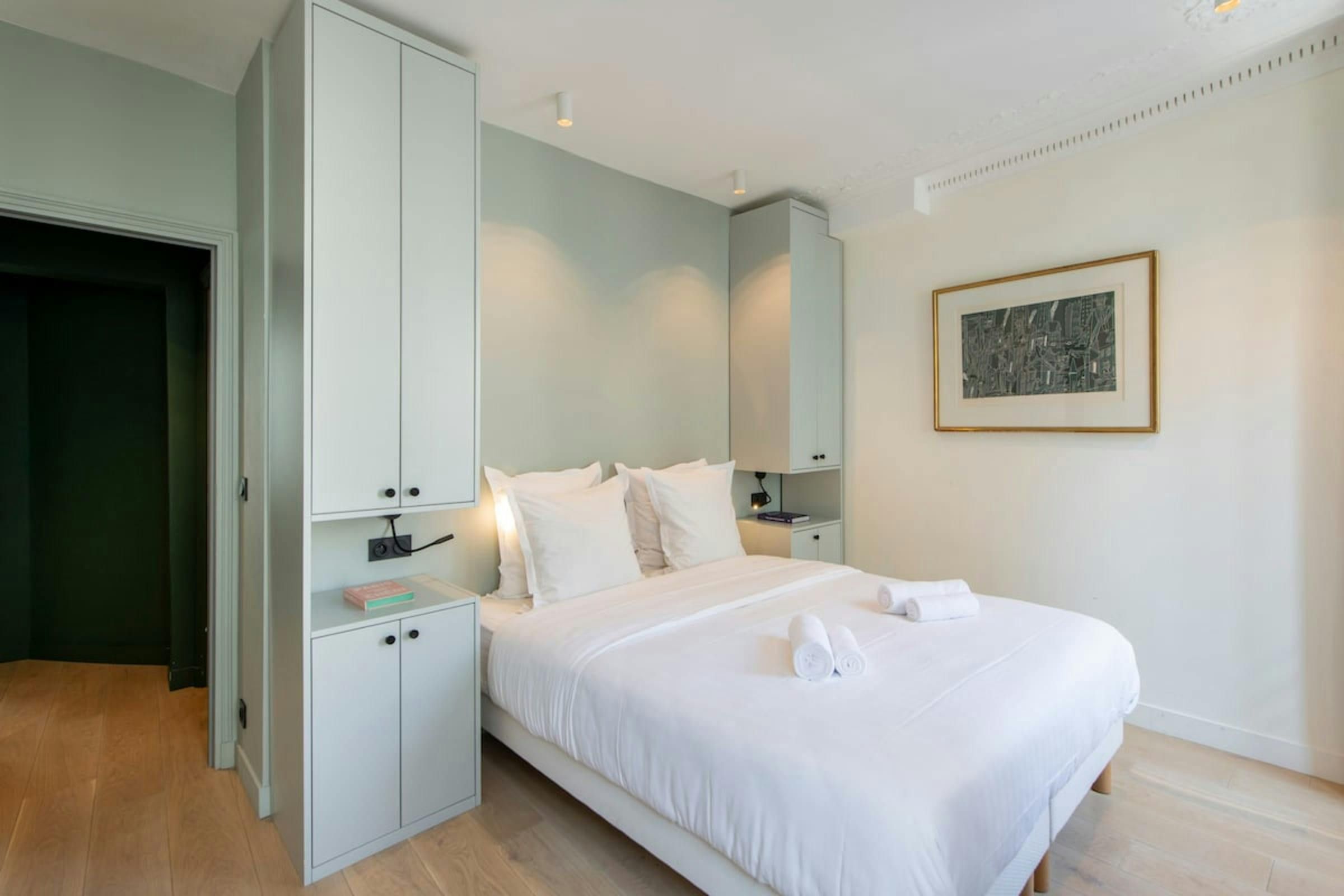 This deluxe apartment on the edge of New Athens marries beautiful furnishings with a coveted Paris location. The home was decorated by a professional in the traditional Haussmann style, creating a comfortable and sophisticated option for friend groups and families. The open plan living area flows into the kitchen and dining area, which are effectively one and the same – the dining table stands between the worktop and the oven, meaning chefs will need to be cautious ferrying hot dishes. The three bedrooms are distinct and characterful, though only one has an en-suite bathroom. Beyond the building, you'll be a twenty minute walk from both Montmartre and the Opera, and one minute from Notre-Dame-de-Lorette and the north-south 12 metro line.