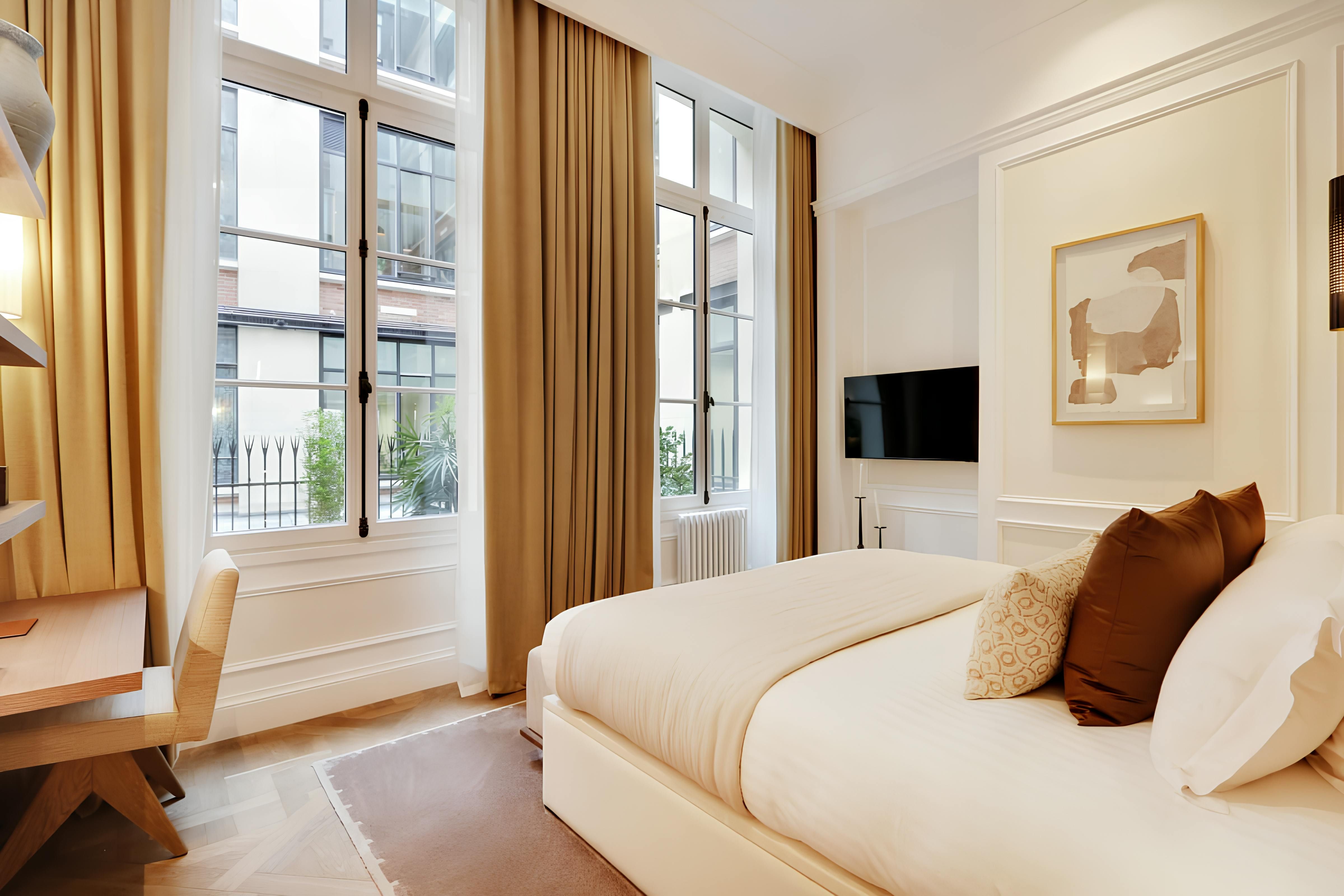 This Parisian pad is an ideal base for a family or group of friends on a stay in the French capital. We love the open plan living, kitchen and dining area – filled with contemporary comforts, you’ll find everything needed for a relaxing stay in the city. Location-wise, this home hits the perfect spot. Mere minutes away from the iconic Louvre Museum, you’re in the right place if you love a bit of culture – just try not to get too distracted by the French eateries lining the streets en route.