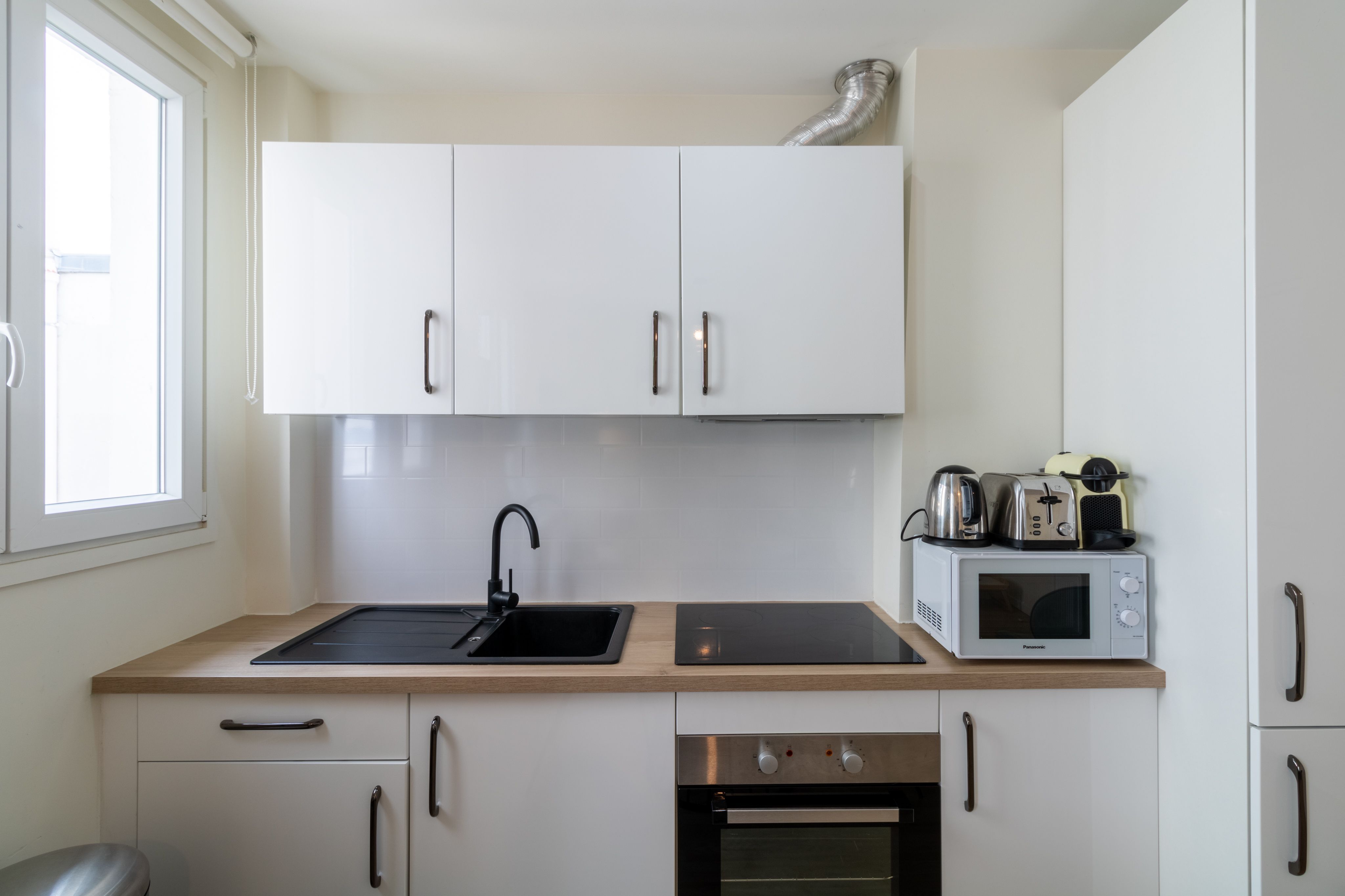 This home may be on the small side, but it makes up for it with location – just a short walk from the iconic luxury stores on the Champs-Élysées. You probably won't spend much time at home (not with such easy access to the city's metro), but if you need to put your feet up, you'll find a comfortable haven here. The kitchen isn't made for extravagant meals, but you'll find everything you need to make a quick breakfast or dinner before heading back out. Plus, the building is quintessentially Paris, with French doors flanked by elegant iron balustrades.