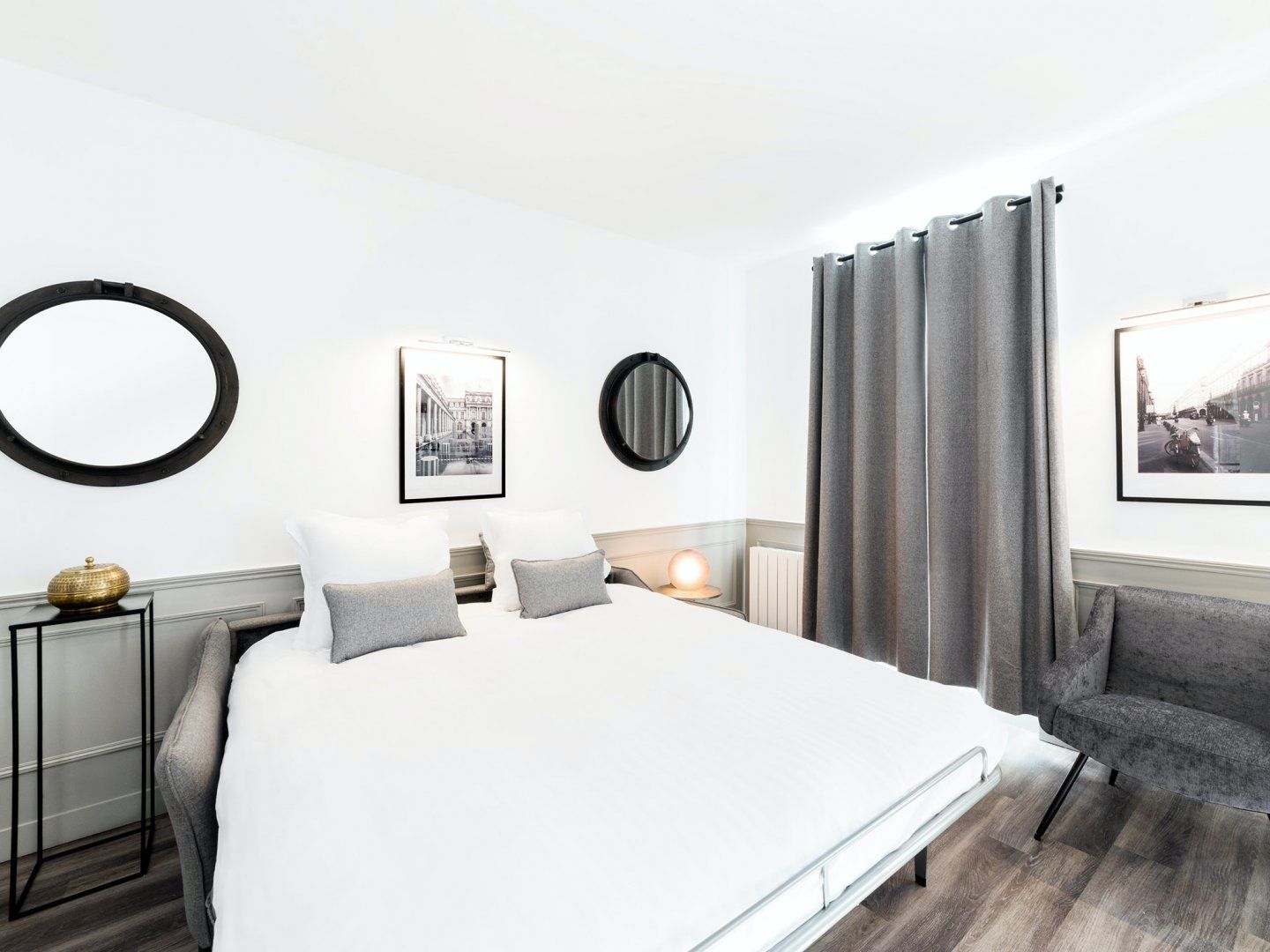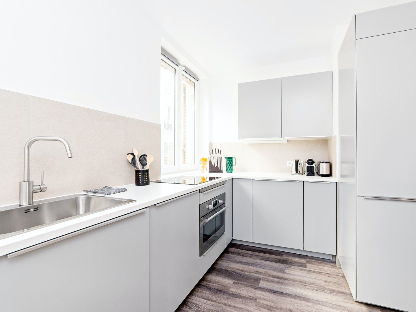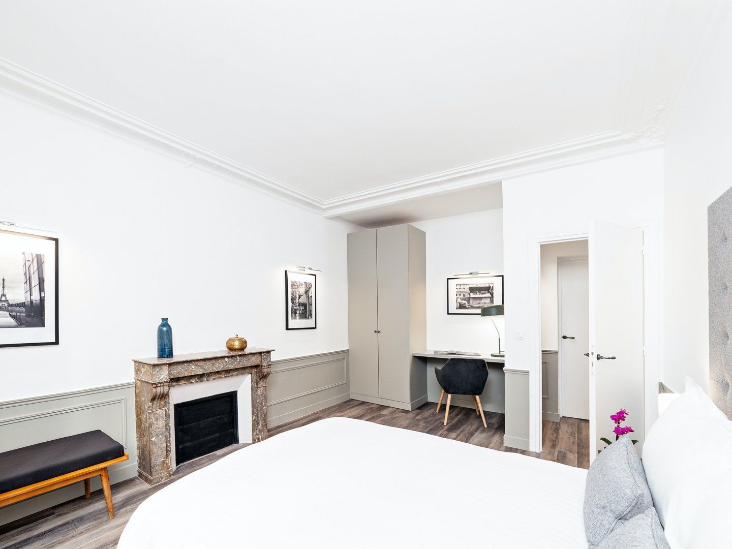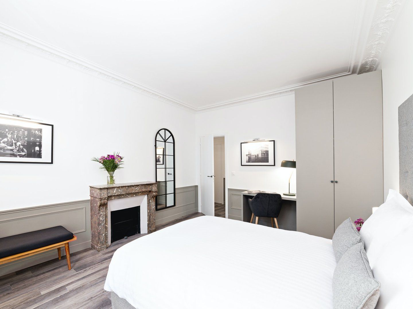 With the bustling transport hub of the Gare du Nord just a two-minute walk from this sumptuous apartment, it’s hard to believe that you could find peace and serenity in such close proximity. But this gorgeous flat offers a tranquil stay in the 10th arrondissement, with tasteful and soothing interiors to match. Spacious, bright, and airy, the open-plan living space oozes sophistication, with wooden floors, mid-century furnishings, and a sleek white kitchen. And of course, it wouldn’t be a Parisian apartment without a decorative, wrought-iron balconette – or six. You've got two in the lounge, and another four in total from the bedrooms, so wherever you want to peer down to the streets below with a glass of pinot noir in hand, this home has got you covered. While the decor overall is modern and understated, traditional touches continue with marble fireplaces in the bedrooms, and a vintage-style copper lampshade in the dining space. Pour another wine and nibble cheese with a fresh baguette under its rosy glow – bienvenue à Paris.