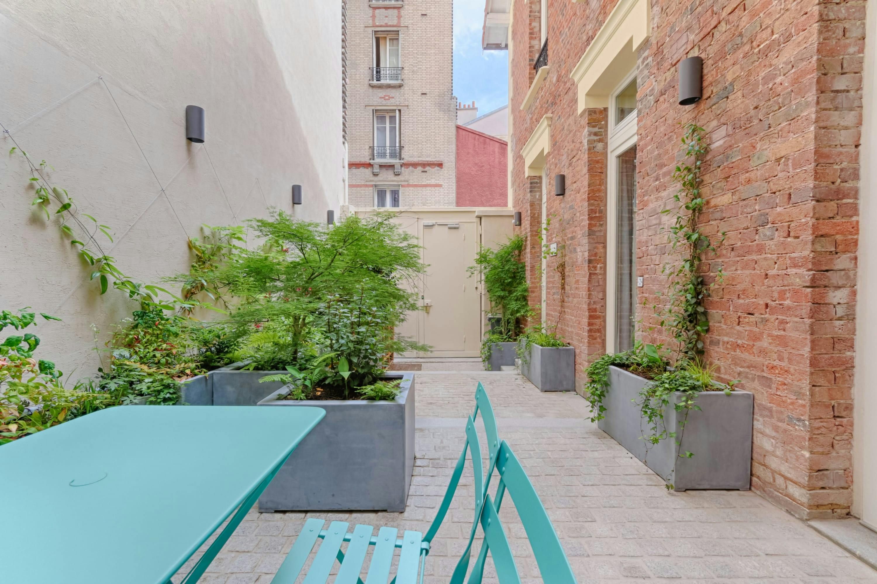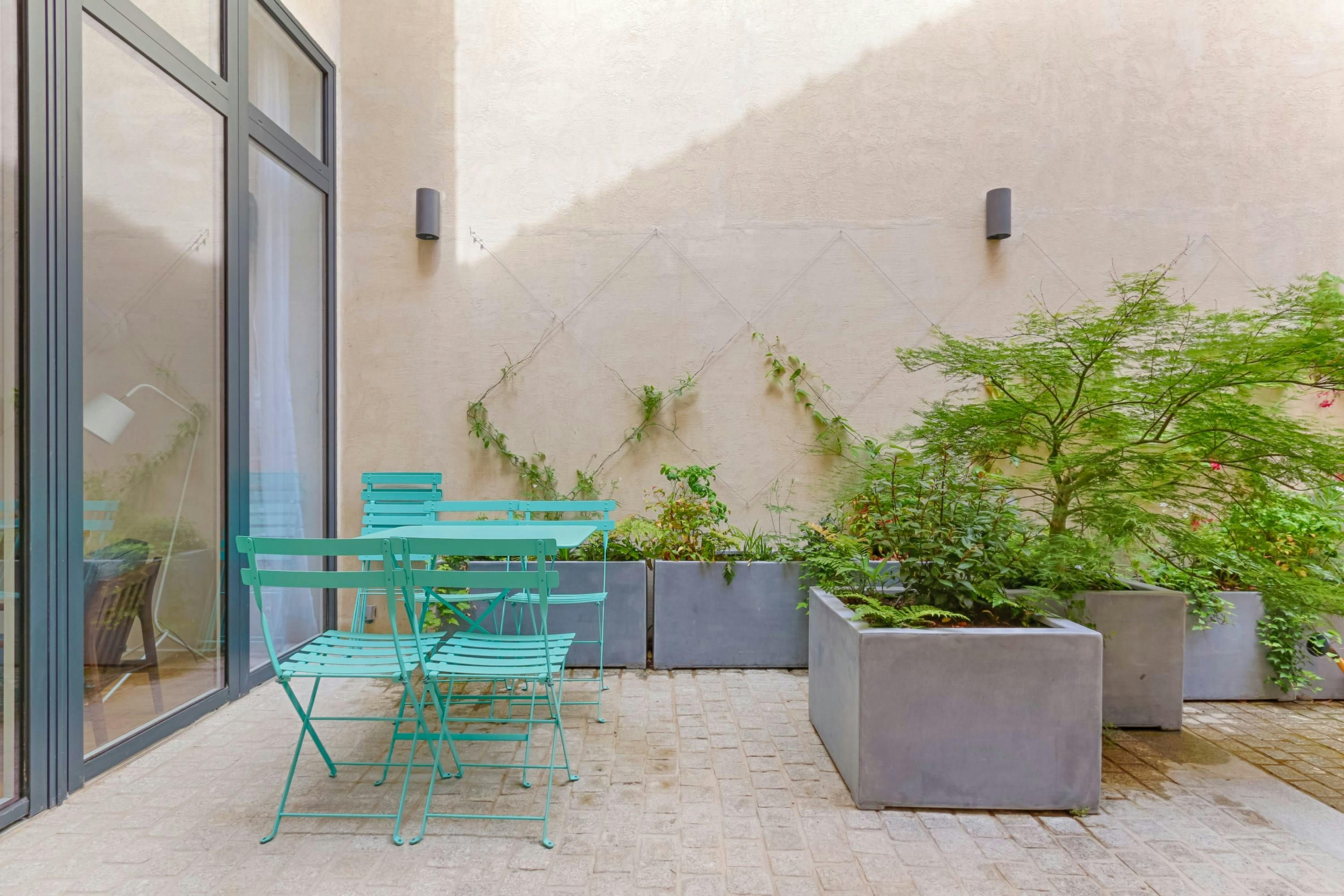 *You'll have access to an outdoor dining table and courtyard here, shared with the building's other residents.