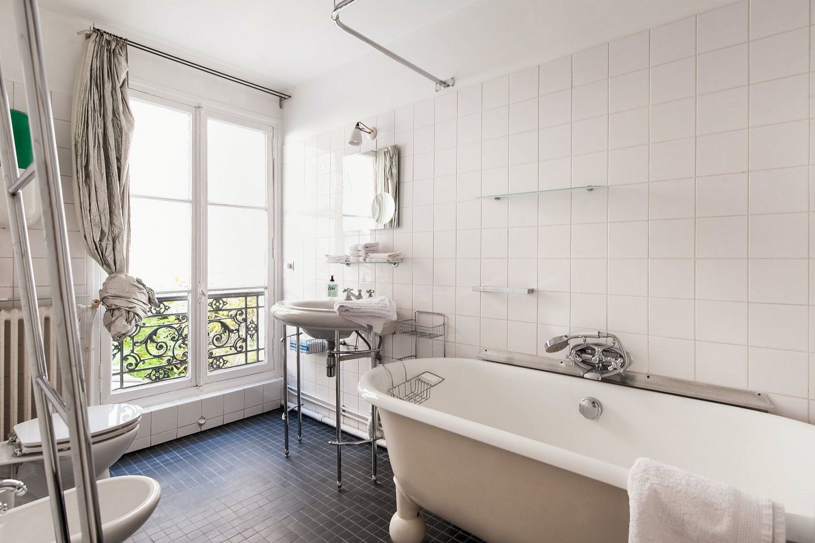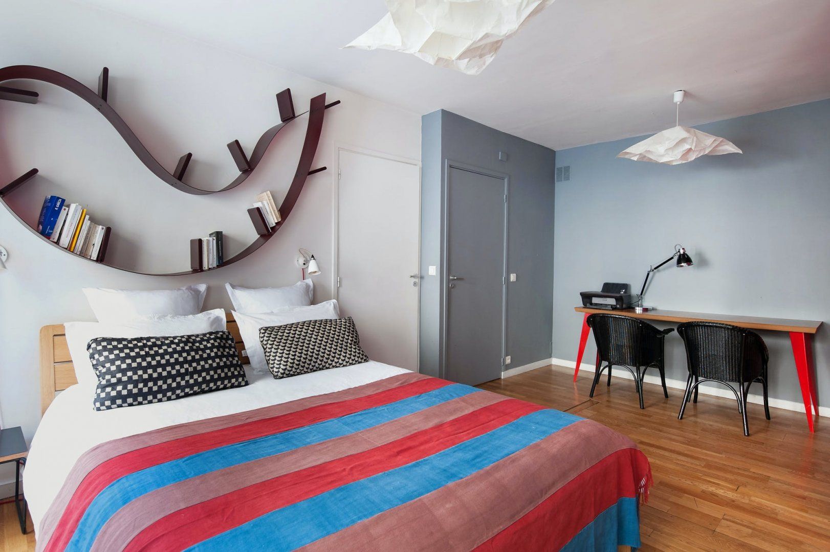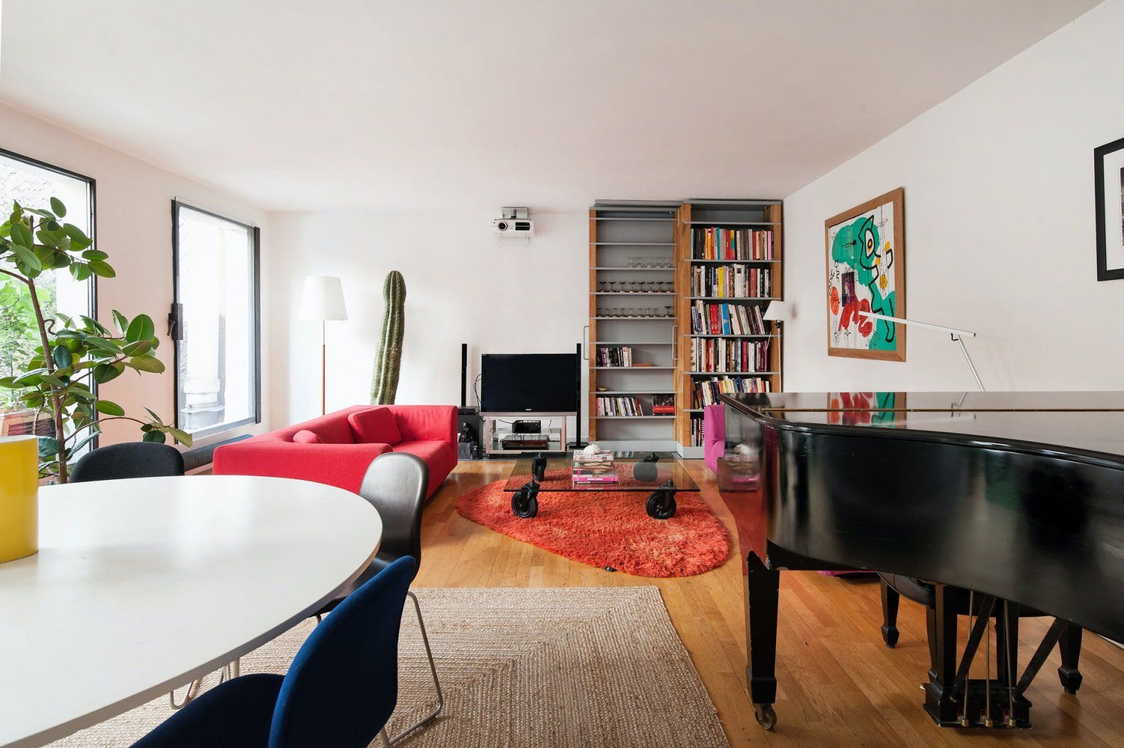 This grand apartment is in a fantastic location at the heart of the Marais. It’s tucked away in a quiet courtyard in the 4th arrondissement, so you’ll be able to enjoy peace and quiet while still being close to the city’s sights. You’re within walking distance of the Seine, Louvre and Notre Dame. We love the rooftop garden, which is a great spot for taking in the view – though it’s not set up for sitting outside. Instead, you’ll be able to unwind in the bright and stylish living space, which has a piano for musically-inclined guests. Two guests will be sleeping on a sofa bed in the living space.